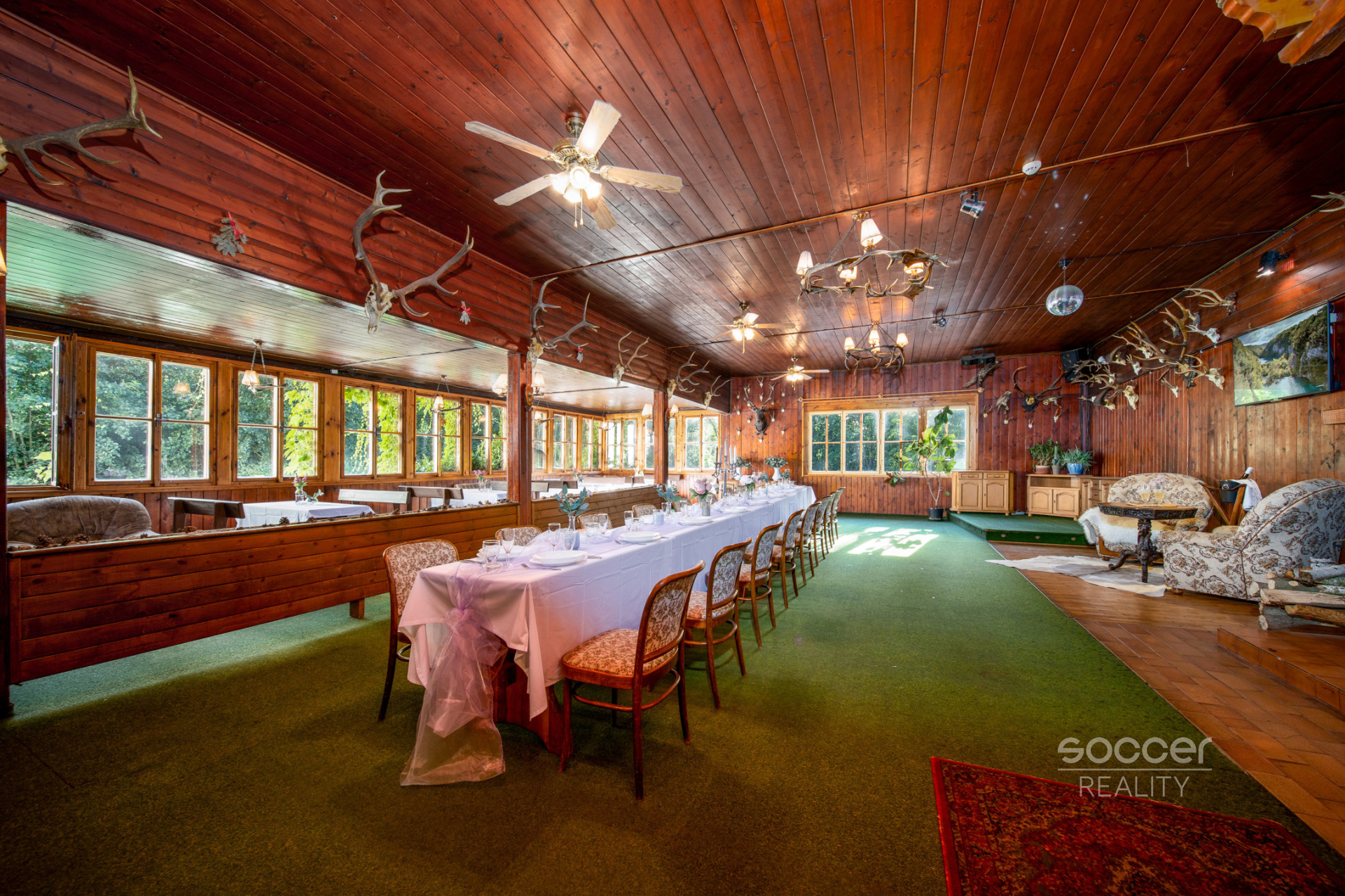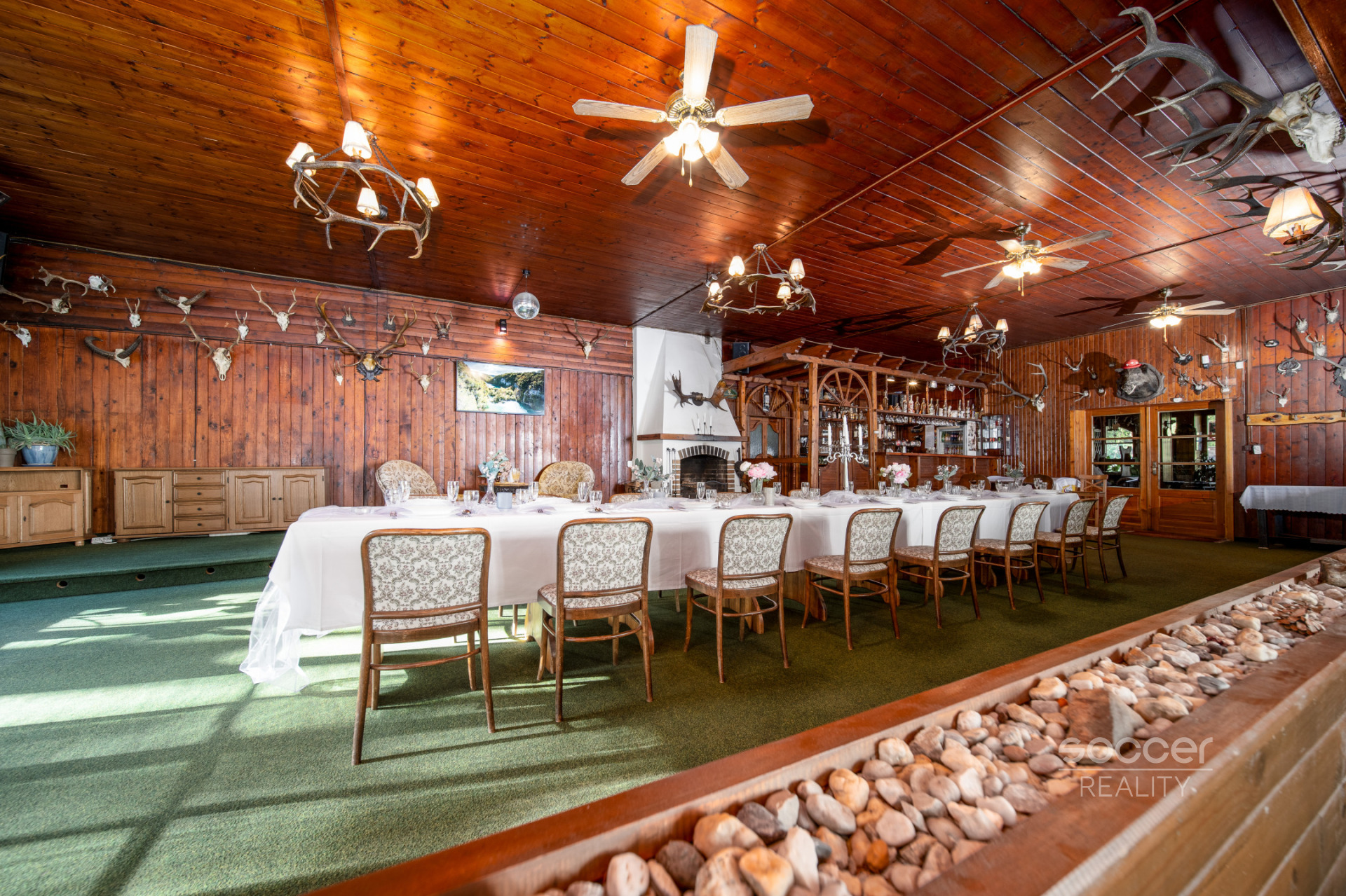 V ceně nemovitosti může být i veškeré vybavení restaurace, letní terasy, kuchyně a pokojů. Vše je v dobovém loveckém stylu (židle, lavice a stoly z masivní borovice), lovecké trofeje a jiné stylové zařízení (komody, lustry, bar, atd.)