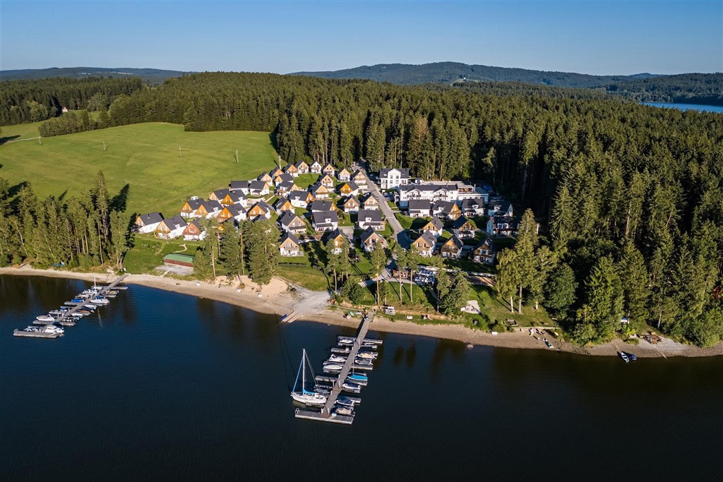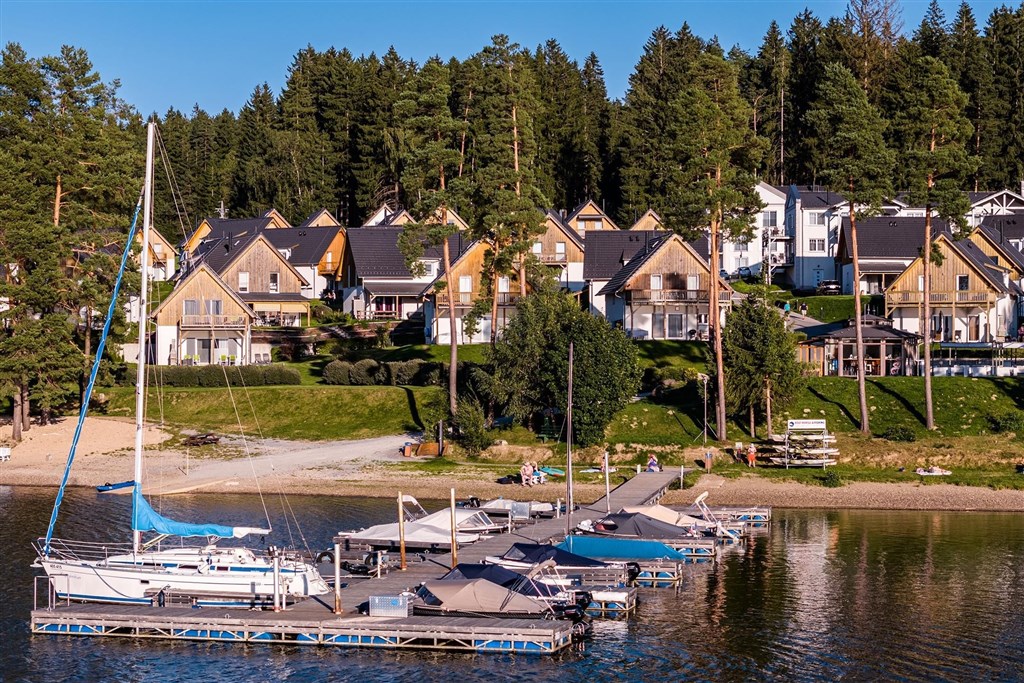 Tento rekreační dům je součástí nového luxusního resortu Lakeside Village, přímo u břehu Lipna.