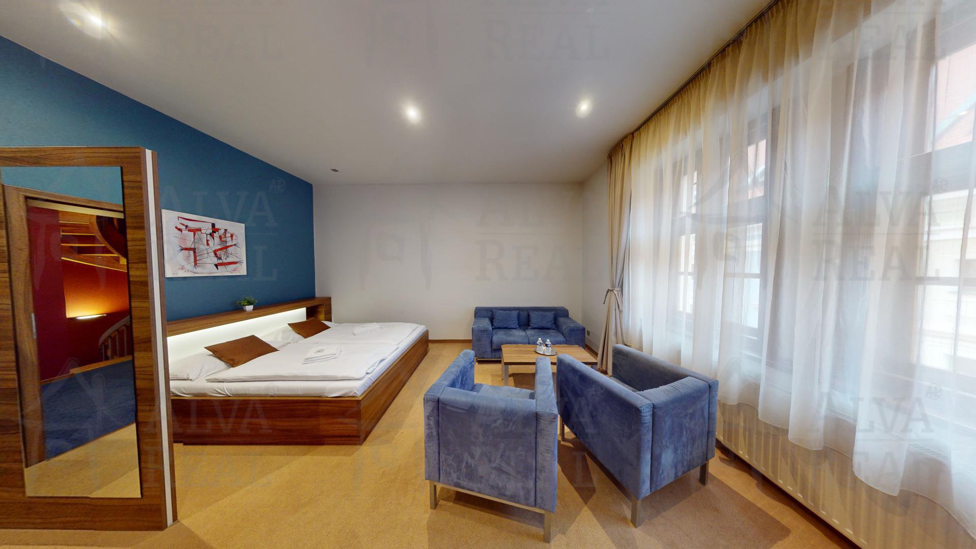 Nabízíme k prodeji čtyřhvězdičkový hotel v centru města Kroměříž v těsné blízkosti Velkého náměstí. Hotel se nabízí plně vybavený a zařízený, k dispozici výtah (1.NP - 3.NP). Celkem 8 pokojů, z toho 5x dvoulůžkový + 2x čtyřlůžkový + 1x čtyřlůžkový apartmán. Dispozice hotelu: 1.PP: wellness: pivní lázně, sauna s relaxační zónou. 1.NP: vstupní chodba, recepce hotelu, masérna, místnost pro aromaterapii, šatny pro wellness, WC, sprchy, sklad, zázemí pro personál, kuchyně pro přípravu snídaní pro hosty, jídelna. 2.NP a 3.NP: hotelové pokoje a apartmán, v 2.NP úklidová místnost a sklad prádla. Prostorný půdní prostor, kotelna. Celková užitná plocha 651,6 m2 včetně wellness bez půdních prostor. Informace o pokojích: Pokoje jsou vybaveny kvalitním nábytkem zhotoveným na míru, v každém z nich se nachází televize, dostatek úložných prostor (skříně, komody). Moderně zařízené koupelny, v každé sprchový kout, ve třech i vana. Velká zrcadla, dostatečné osvětlení. Kroměříž je krásné historické město, které každoročně navštíví mnoho českých i zahraničních turistů, kteří vyhledávají mimo jiné nejvýznamnější kulturní památky na Moravě z období baroka jako Arcibiskupský zámek, Květnou a Podzámeckou zahradu, které jsou zapsány na Seznam světového kulturního a přírodního dědictví UNESCO. Hotel je v provozu přibližně od roku 2009 a je provozován nájemcem. Před rokem 2009 proběhla rozsáhlá a nákladná rekonstrukce budovy, exteriér dle podmínek památkářů (dvojitá dřevěná okna, fasáda, vstupní dveře, střecha). Způsob ochrany nemovitosti: menší chráněné území, pam. rezervace - budova, pozemek v památkové rezervaci. Budova s číslem popisným - stavba ubytovacího zařízení. Energetickou třídu uvádíme G, vzhledem k umístění hotelu v pam. rezervaci se na objekt nevztahuje povinnost vyhotovit PENB. Prosím a zároveň doporučuji, abyste si pustili 3D virtuální prohlídku a prošli se nemovitostí. Pro více informací kontaktujte makléře. Jedná se o prodej 100% podílu na společnosti včetně movitého a nemovitého majetku společnosti.