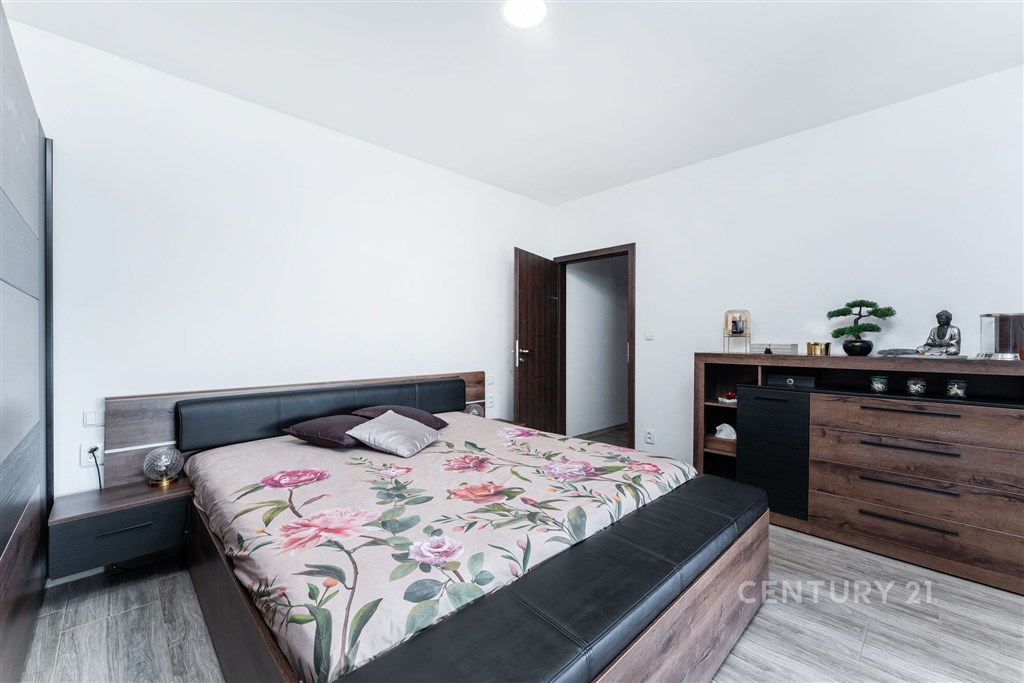 Těšit se z dechberoucího výhledu do okolních svahů zeleně, nechat se nabíjet klidem venkovské atmosféry a přitom být nadosah nejen Praze, ale i veškeré občanské vybavenosti? Toto a mnohem víc nabízí moderní dům, který se nachází na okraji malebné obce Olbramovice ve vyhledávaném benešovském kraji. S celkovou plochou pozemku 987 m2 a obytnou plochou 135 m2 nabízí dostatek prostoru pro velmi komfortní bydlení pro náročné. Udržovaná zahrada poskytuje dostatek prostoru jak pro nadšence do produktivních zahrádek, sadaření, tak i pro sportovní vyžití a případně i bazén. Přidanou hodnotou je retenční nádrž, ze které lze zajistit závlahu zahrady. Prostorný dům disponuje třemi útulnými pokoji. Designová kuchyň s vestavěnými spotřebiči je spojena se vzdušným obývacím pokojem. Na ten navazuje velkorysá krytá terasa (47 m2) poskytující dokonalé zázemí pro trávení společného času s rodinou, přáteli či o samotě při relaxu s výhledem do půvabné krajiny. Dům je plně vybaven vkusným nábytkem, což usnadní novým majitelům přechod do nového domova. Nemusíte se bát ani o parkování, jelikož k domu náleží rozlehlá garáž pro 2 auta + 2 motorky. A stále poskytne dostatek prostoru i pro dílenský kout. Objemný podkrovní prostor pak obsáhne vše, co běžně není potřeba mít po ruce. Neváhejte a přijeďte se pokochat jedinečnou nemovitostí a okolní krajinou, navnímat jak komfortní domov se Vám tady nabízí.