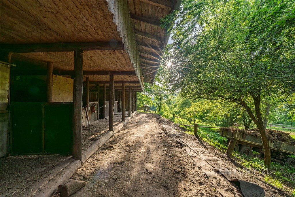 Ve výhradním zastoupení pro Vás nabízíme zavedený ranč Tiché údolí nedaleko obce Mutěnice u Hodonína. Ranč je zasazený v nádherné, turisticky vyhlášené vinařské lokalitě poblíž Čejkovic, Čejče a Hovoran. Ranč se rozkládá na pozemku 29.241m2 a je umístěný v malebném údolí obklopeném lesy, polemi a vinhrady. V okolí ranče není žádná obytná zástavba ani vedle něj nevede žádná rušná komunikace. Na ranči je absolutní ticho. Jen koně a zvuky přírody. Ranč tak svým obyvatelům poskytuje absolutní soukromí a ničím a nerušený klid. Zároveň je ale od obce Mutěnice vzdálen pouhých 2,5km. Po odbočení z hlavní cesty vede na ranč snadno sjízdná cesta, která je ve vlastnictví obce a přístup k ranči tak není nijak omezen. K ubytování slouží dřevěný srub se spaním v podkroví pro 6 osob. Srub je vybavený pro celoroční provoz a má pec schopnou spalovat i velké polena. Na pozemku je dále ještě jeden rozestavěný přízemní srub. Pro koně jsou k dispozici stáje pro 14 koní v jejichž podkroví se dají pohodlně naskladnit balíky sena (90ks). Samozřejmostí je pak sedlovna a kruhovka s přilehlou hrací plochou pro děti i dospělé. Jako zázemí pro traktory a další techniku slouží prostorná garáž. Elektřina je v případě potřeby zajištěna pomocí elektrocentrály. Tento ranč byl na tomto jedinečném místě s láskou zbudován současným majitelem před více než dvaceti lety. V současné době slouží pro ustájení koní a k ubytování formou krátkodobého pronájmu. Srub je pravidelně celoročně pronajímán a udržované travnaté plochy slouží v letních měsících jako oblíbený autocamping. Tento ranč bude svému majiteli sloužit jako ideální místo poblíž civilizace poskytující absolutní soukromí s fantastickými vyjížďkami na koních po malebném okolí. V bezprostředním okolí není v tomto oblíbeném vinařském regionu žádné místo, jiné které by v toto dokázalo nabídnout. Nepromeškejte tuto jedinečnou příležitost, která se již nebude opakovat a domluvte si prohlídku na tel.: +420 777 341 082