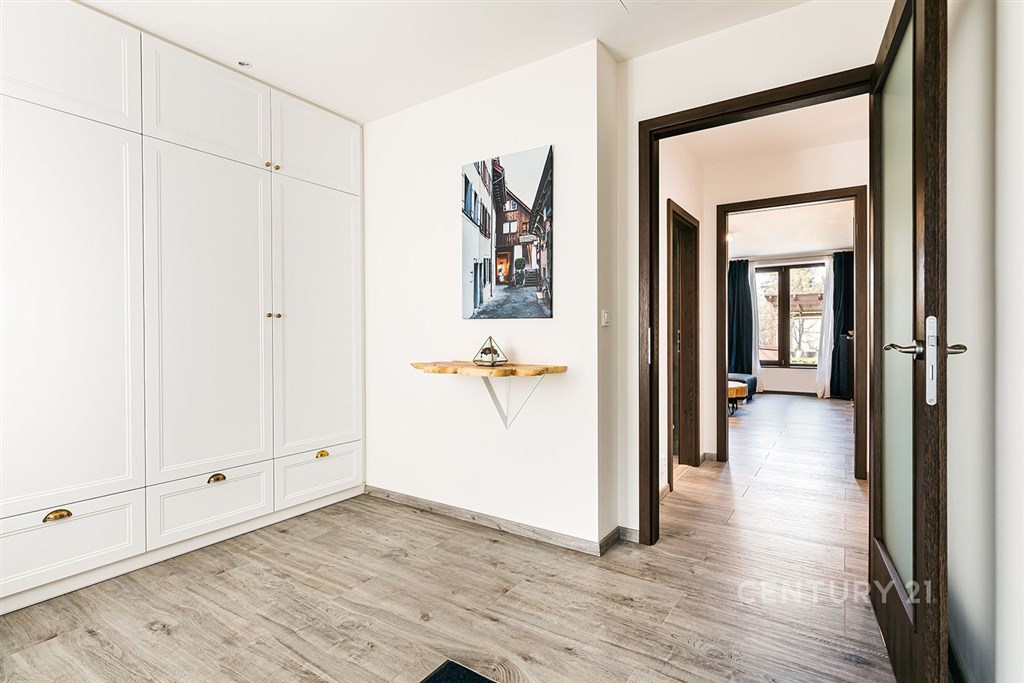 Jedinečný rodinný dům po kompletní rekonstrukci, situovaný v městské části Brno - jih, v Přízřenicích. Tato nemovitost zaujme na první pohled: jak svým promyšleným dispozičním řešením, tak nadstandardní kvalitou použitých materiálů okna s izolačními trojskly, kompletní zateplovací systém, schodiště z masivu, zabezpečovací systém, nábytek na míru atd. Dům je napojený na všechny inženýrské sítě, ale má i vlastní studnu, na niž je napojena automatická závlaha trávníku. Vytápění objektu zajišťuje plynový kotel, v přízemí a v horní koupelně je podlahové topení a v obývacím pokoji funkční krb. Užitná plocha domu činí cca 218 m2, a kromě obytných místností nabízí také prostornou dílnu, prádelnu, pochozí půdu. Interiéry byly realizovány pod dohledem bytové designérky, každá místnost působí harmonicky a stylově navazuje na ty ostatní. V přízemí domu je předsíň s vestavěnými skříněmi, pracovna, koupelna se sprchovým koutem, samostatná toaleta, a dále obývací pokoj a kuchyně orientované do zahrady. Na kuchyni navazuje prosklená zimní zahrada sloužící jako jídelna i relaxační zóna. V podkroví naleznete pracovnu, ložnici se šatnou, pokoj pro hosty, velkou koupelnu se zabudovanou saunou a vstup na půdu. Půdorys stavby vytváří klidnou relaxační zónu a zajišťuje naprosté soukromí. Zahrada je okrasná, najdete zde zapuštěné posezení pod pergolou, trávník s automatickou závlahou, okrasné keře i nenápadný dřevník, kam uložíte vše potřebné např. pro zahradní párty. Lokalita je příjemná, s výbornou dostupností do centra Brna i na dálnici D1 a D2. V blízkosti se nachází OC Olympia, Avion Shopping Park, škola, školka, obchod s potravinami i kavárna. Pro sportovní a volnočasové aktivity můžete využít nedalekou cyklostezku Brno - Vídeň, sportovní areál Kšírovka či koupaliště biotop Brno - jih. Zastávka MHD je pár kroků a zastavuje zde i noční autobus N94. Tento dům je ideální volbou pro náročného klienta, který hledá komfortní, bezúdržbové a reprezentativní bydlení, které má styl a zároveň plně slouží praktickým potřebám každodenního života. Neváhejte mě kontaktovat pro více informací nebo domluvení osobní prohlídky - tento dům stojí za to vidět!