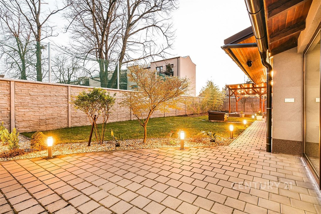 Jedinečný rodinný dům po kompletní rekonstrukci, situovaný v městské části Brno - jih, v Přízřenicích. Tato nemovitost zaujme na první pohled: jak svým promyšleným dispozičním řešením, tak nadstandardní kvalitou použitých materiálů okna s izolačními trojskly, kompletní zateplovací systém, schodiště z masivu, zabezpečovací systém, nábytek na míru atd. Dům je napojený na všechny inženýrské sítě, ale má i vlastní studnu, na niž je napojena automatická závlaha trávníku. Vytápění objektu zajišťuje plynový kotel, v přízemí a v horní koupelně je podlahové topení a v obývacím pokoji funkční krb. Užitná plocha domu činí cca 218 m2, a kromě obytných místností nabízí také prostornou dílnu, prádelnu, pochozí půdu. Interiéry byly realizovány pod dohledem bytové designérky, každá místnost působí harmonicky a stylově navazuje na ty ostatní. V přízemí domu je předsíň s vestavěnými skříněmi, pracovna, koupelna se sprchovým koutem, samostatná toaleta, a dále obývací pokoj a kuchyně orientované do zahrady. Na kuchyni navazuje prosklená zimní zahrada sloužící jako jídelna i relaxační zóna. V podkroví naleznete pracovnu, ložnici se šatnou, pokoj pro hosty, velkou koupelnu se zabudovanou saunou a vstup na půdu. Půdorys stavby vytváří klidnou relaxační zónu a zajišťuje naprosté soukromí. Zahrada je okrasná, najdete zde zapuštěné posezení pod pergolou, trávník s automatickou závlahou, okrasné keře i nenápadný dřevník, kam uložíte vše potřebné např. pro zahradní párty. Uvolnění domu je možné ihned po přepisu na nového majitele. Lokalita je příjemná, s výbornou dostupností do centra Brna i na dálnici D1 a D2. V blízkosti se nachází OC Olympia, Avion Shopping Park, škola, školka, obchod s potravinami i kavárna. Pro sportovní a volnočasové aktivity můžete využít nedalekou cyklostezku Brno - Vídeň, sportovní areál Kšírovka či koupaliště biotop Brno - jih. Zastávka MHD je pár kroků a zastavuje zde i noční autobus N94. Tento dům je ideální volbou pro náročného klienta, který hledá komfortní, bezúdržbové a reprezentativní bydlení, které má styl a zároveň plně slouží praktickým potřebám každodenního života. Neváhejte mě kontaktovat pro více informací nebo domluvení osobní prohlídky - tento dům stojí za to vidět!
