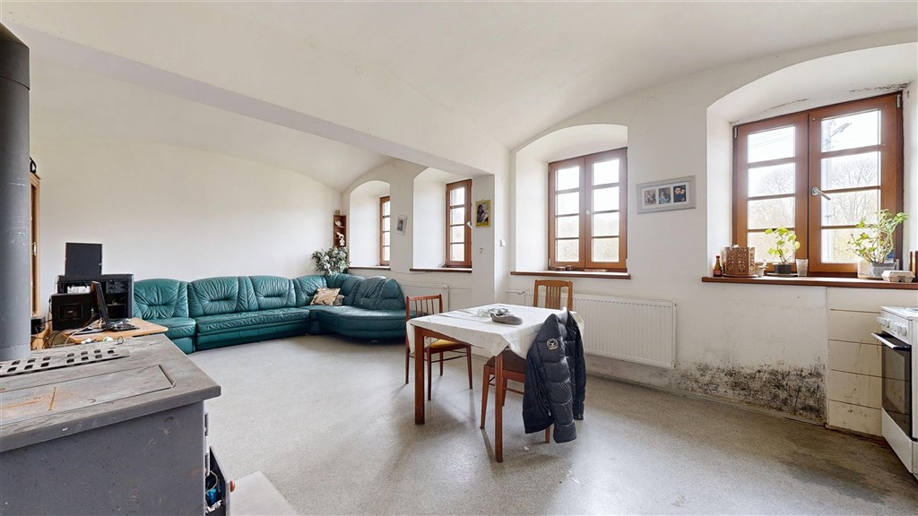 Nabízíme k prodeji objekt bývalé továrny, který tvoří bytový dům s pěti bytovými jednotkami o podlahové ploše celkem 538 m2, a k němu náležející vedlejší stavby a pozemky o celkové rozloze 8519 m2. Hlavní budova, tzv. Röslerův zámeček, byla postavena v letech 1817 až 1818 místním podnikatelem nožířem Ignazem Röslerem, přístavba pochází cca z roku 1920. Dále se v areálu nachází vedlejší budova dříve výroba a sklady, a již částečně zbořená budova továrny. Menší domek uvnitř objektu patří jinému majiteli a není součástí prodeje. V budově bývalého zámečku se nachází celkem 5 bytů : * byt 1 podlahová plocha 137 m2, 4 + 1, elektrokotel a zároveň ohřev vody, možnost přepnout na kamna s výměníkem * byt 2 podlahová plocha 116 m2, 4 + 1, elektrokotel a zároveň ohřev vody, možnost přepnout na kamna s výměníkem * byt 3 podlahová plocha je cca 160 m2, 6 + 1, elektrokotel s ohřevem vody * byt 4 podlahová plocha 83 m2, 3 + 1, elektrické přímotopy, jedna kamna bez výměníku, bojler * byt 5 podlahová plocha 42 m2, 1 + 1, kamna bez výměníku, bojler Všechny byty mají nové elektroinstalace a rozvody vody, podlahy i omítky, nicméně některé již vykazují silné opotřebení. Okna v celém bytovém domě jsou kvalitní plastová. Byty jsou všechny obsazené, fotografie jsou některé upravené tím, že jsme odebrali nábytek pro lepší představu. Aktuální výnos z nájmu Vám ráda sdělím telefonicky. Střecha a krovy jsou původní, ale ve velmi dobrém stavu půda je obrovský patrový prostor s možností dalšího využití. Budova je podsklepená, ale sklepy využívány nejsou. Vedlejší navazující budova má patro připravené na přestavbu: jsou osazena plastová okna a připravené odpady, rozvody vody a dole nová elektrická skříň, v současné době je využívána jen občasně. Pozemky jsou průběžně udržovány, ale nevyužívány. Příjezd k objektu vede po obecní zpevněné komunikaci, na kterou se sjíždí z hlavní silnice, procházející obcí. Jedná se o velmi specifickou nabídku, ke které Vás bude zajímat spousta informací, které Vám ráda podám a sjednám i prohlídku nemovitosti. Mikulášovice se nachází v krásné kopcovité krajině příhraniční oblasti, kousek od města Sebnitz a Hřenska, která sama o sobě stojí za návštěvu. Věříme, že celý objekt najde někoho, kdo na základě svého záměru plně rozvine jeho potenciál.