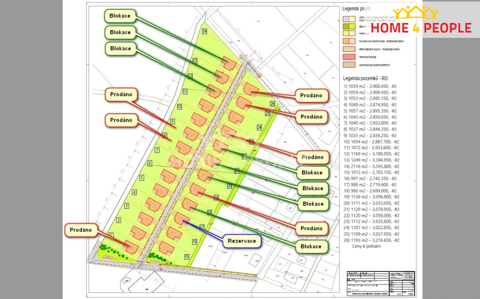 Zprostředkujeme Vám výstavbu domu na klíč typ Fresh 4+kk, 100 m2 na pozemku (č. 16) o velikosti 997 m2 v Bořenovicích okr. Kroměříž. Bungalov Fresh je typ rodinného domu vhodný do rovinatého, ale i mírně svažitého terénu. Součásti uvedené ceny, která již zahrnuje DPH je dům na klíč, inženýrské sítě mimo plynu, příjezdová i obslužná komunikace, veřejné osvětlení, chodník, centrální čistička odpadních vod, pozemek a veškeré projektové práce a stavební povolení. Přípojná místa jsou vyvedena na pozemku. Pozemek (číslo 16) je mírně svažitý na klidném místě obce. Šíře pozemku je 20,5 m. Dle územního plánu je pozemek veden a schválen pro rodinné bydlení a projekt byl schválen zastupitelstvem obce. Zastavěná plocha domu je 100 m2 s užitnou plochou 80 m2. Jedná se o zděnou stavbu a nabízí se ve variantě na klíč. Topení je řešeno nízkonákladovým teplovodním podlahovým topením, tepelné čerpadlo se zásobníkem na teplou vodu 180l. Možnost změnit na jiný typ vytápění s doplatkem dle výběru. Uvedená cena domu obsahuje základovou desku, DPH a stavba bude provedena na klíč a předána po kolaudaci k okamžitému užívání. (Součástí ceny není kuchyňská linka a světla - dokážeme za zvýhodněných podmínek zajistit přes naše dodavatele). Možnost změny stavebního materiálu na dřevostavbu s doplatkem nebo přistavit garáž přímo spojenou s domem. Délka výstavby od vydání stavebního povolení 12-13 měsíců u dřevostavby a 11-12 měsíců. Na lokalitě právě se realizuje již 6 stavba. Obec Bořenovice se nachází v okrese Kroměříž ve Zlínském kraji, zhruba 3,5 km od Holešova, 28 km od Kroměříže a 10 km k dálnici D55. Žije zde cca 210 obyvatel. Základní školu děti navštěvují v sousedním městě Holešov. V obci plné pokrytí signálu LTE, dostupný internet i satelitní vysílání. V obci je obchod se smíšeným zbožím, zajištěna autobusová doprava do Holešova. Omezený počet pozemků pro prodej v tomto roce. Doporučuji prohlídku a to jak samotného pozemku, tak našich rozestavěných domů v okolí. ZTV Bořenovice najdete na webu H4P v sekci developerské projekty. Ev. číslo: 29323. Energetický štítek: A (35 kWh/m2/rok).