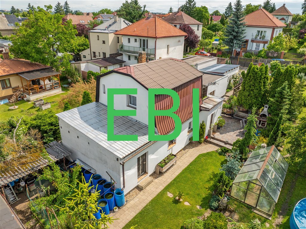 Prodej samostatného zděného rodinného domu ze 70tých let minulého století (přístavba v r. 1990) v rezidenční části Dolních Počernic s velkou zahradou. Dům je dvojpodlažní o dispozici 4+1. Přízemí: byt 2+1(84m2), předsíň, jídelna, velký obývací pokoj 33,6m2, ložnice, šatna, jídelní kout, technická místnost, spíž + vstup do sklepa. 1. patro: 2 pokoje 2x10m2, koupelna s vanou a WC, terasa 16,6m2.Vstup na pozemek je z ulice Pilníkovské. Poslední rekonstrukce nemovitosti je z let 2000 a 2023. Stavebně technický stav dobrý. Sítě - voda obecní a kanalizace, elektro, plyn. Topení ústřední plynové, kondenzační kotel v technické místnosti. Na pozemku se nachází zděná garáž 22 m2, další zděná stavba 5 místností o celkové výměře 40m2 - sklad zahradního vybavení a techniky. Na zahradě jsou vzrostlé ovocné stromy, skleník, bazén. Pozemek má tvar obdélníku s jedním vstupem z ulice, nachází se v původní rezidenční zástavbě Dolních Počernic s dostatkem zeleně v okolí. V obci se nachází veškerá možná občanská vybavenost. Doporučujeme. Centrum Prahy 10 km. Vlak 6 minut chůze, Bus 500m stanice. Velice dobré dopravní napojení na Jižní spojku dálnic D11 a D10. Hypoteční úvěr zajistíme.