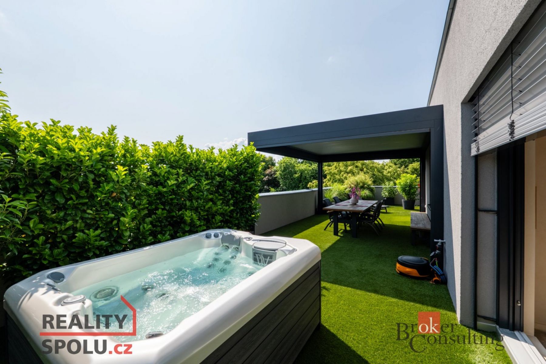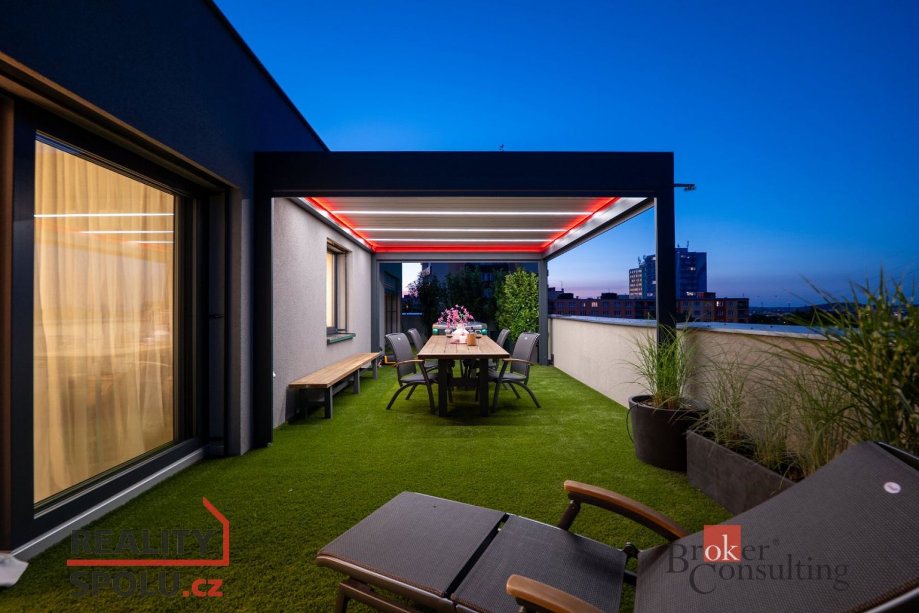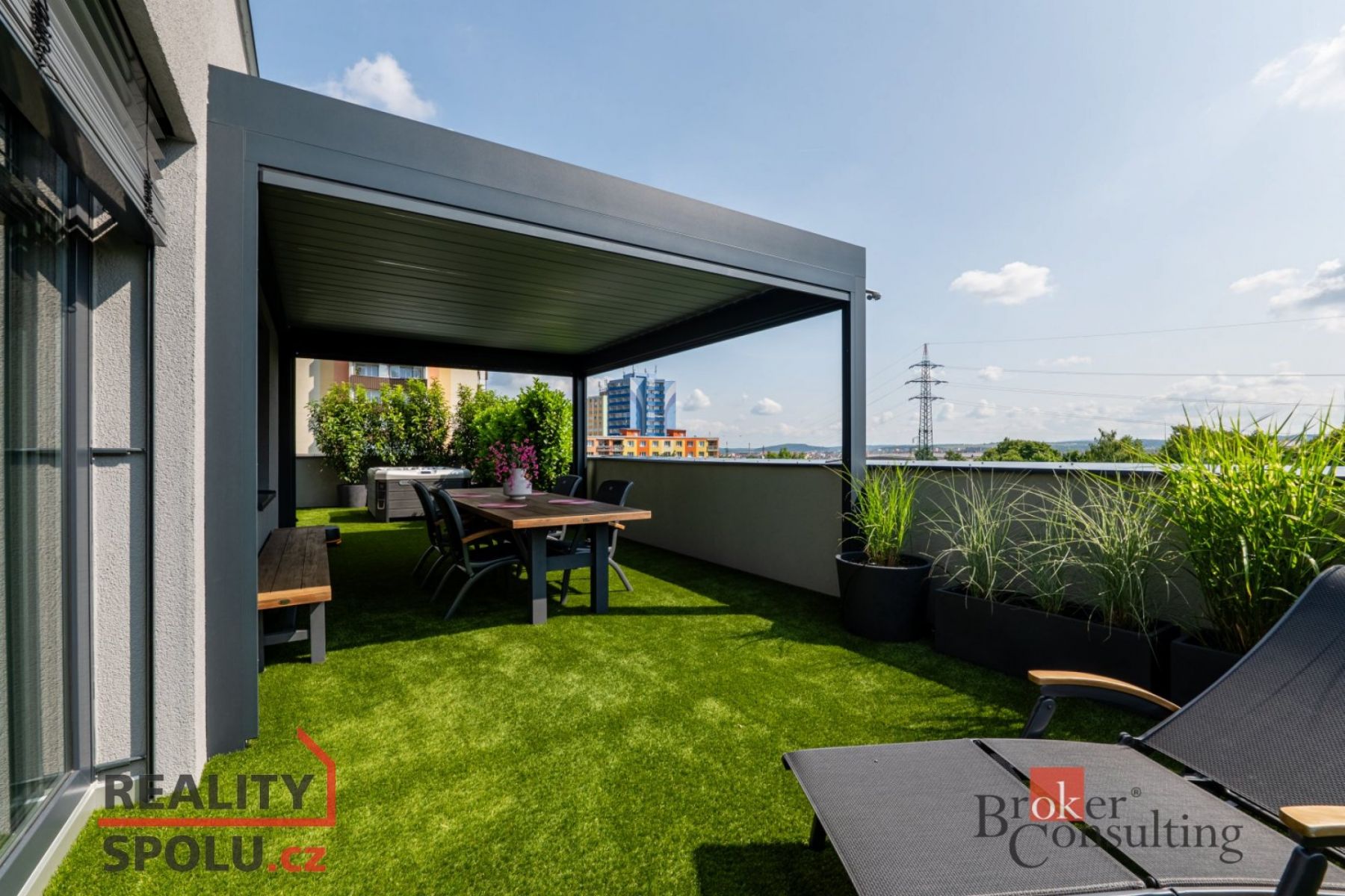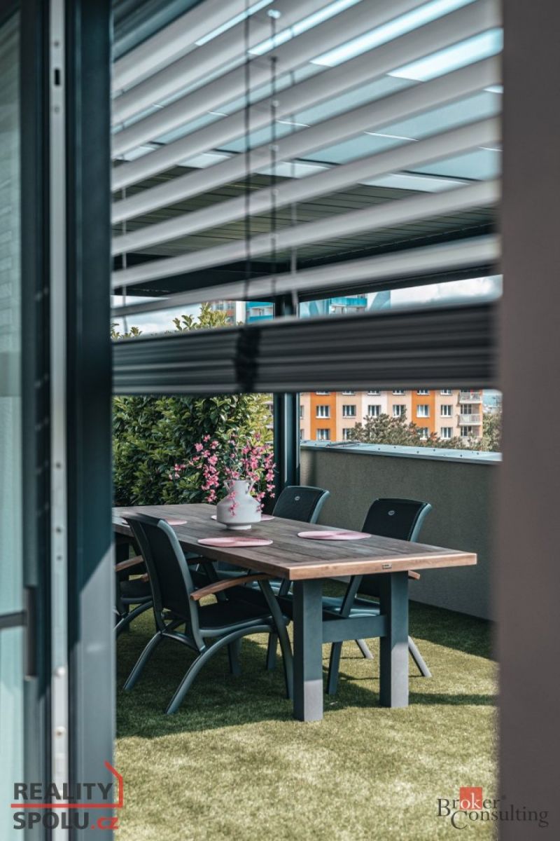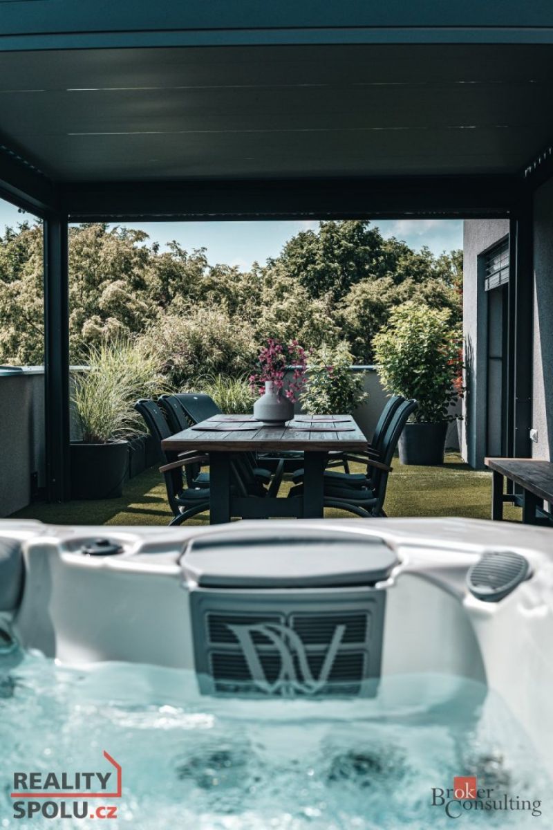 Dámy a pánové, dovolte nám představit jeden z nejluxusnějších a nejstylovějších bytů, které město Plzeň aktuálně nabízí. Tato výjimečná nemovitost se nachází v novém rezidenčním komplexu v ulici Heyrovského, v přímém sousedství Borského parku. Jednotka o dispozici 3+kk ( 78 m ) s prostornou šatnou je situována v posledním, pátém patře moderního domu a nabízí absolutní klid, soukromí a výjimečný standard bydlení. Největší dominantou je terasa o rozloze úchvatných 80 m, která obepíná celý byt a byla navržena jako soukromá relaxační zóna. Naleznete zde bioklimatickou pergolu, vířivku a vzrostlé stromy se samozavlažovacím systémem, které zajišťují maximální soukromí a navozují atmosféru luxusního apartmánu v přírodě. Každý vstup na terasu je tak malým únikem z města do zeleně a ticha přilehlého parku. Byt je nabízen kompletně vybavený stačí přijít s osobními věcmi a můžete začít nový život. Vybavení zahrnuje nábytek na míru z dubového masivu a špičkové spotřebiče značky Miele. O příjemné klima a zároveň záložní vytápění se stará klimatizační systém Siemens. Všechny použité materiály i řešení interiéru byly vybírány s důrazem na estetiku, funkčnost, nadčasovost a především kvalitu. Obklady a dlažby pocházejí od italského výrobce Mirage (série Royal), kuchyňské baterie s dřezem a filtrem na vodu dodala renomovaná značka Hansgrohe, osvětlení je z Itálie Axolight Muse, pracovní kamenná deska Tachmahad a drobné spotřebiče značky Smeg. Zde opravdu není co vytknout. Samozřejmostí jsou tři garážová parkovací stání přímo pod domem, která jsou součástí prodeje a výrazně zvyšují komfort bydlení. Tento byt je ideální volbou pro ty, kteří hledají naprosté soukromí, špičkový standard a výjimečné prostředí s přímým kontaktem s přírodou a to vše v rámci města. Pokud hledáte prémiovou nemovitost, neváhejte nás kontaktovat pro více informací či sjednání osobní prohlídky. Těšíme se na vás. Poznámka k ceně: V ceně bytu nejsou zahrnuty zmíněné tři parkovací garážové stání.