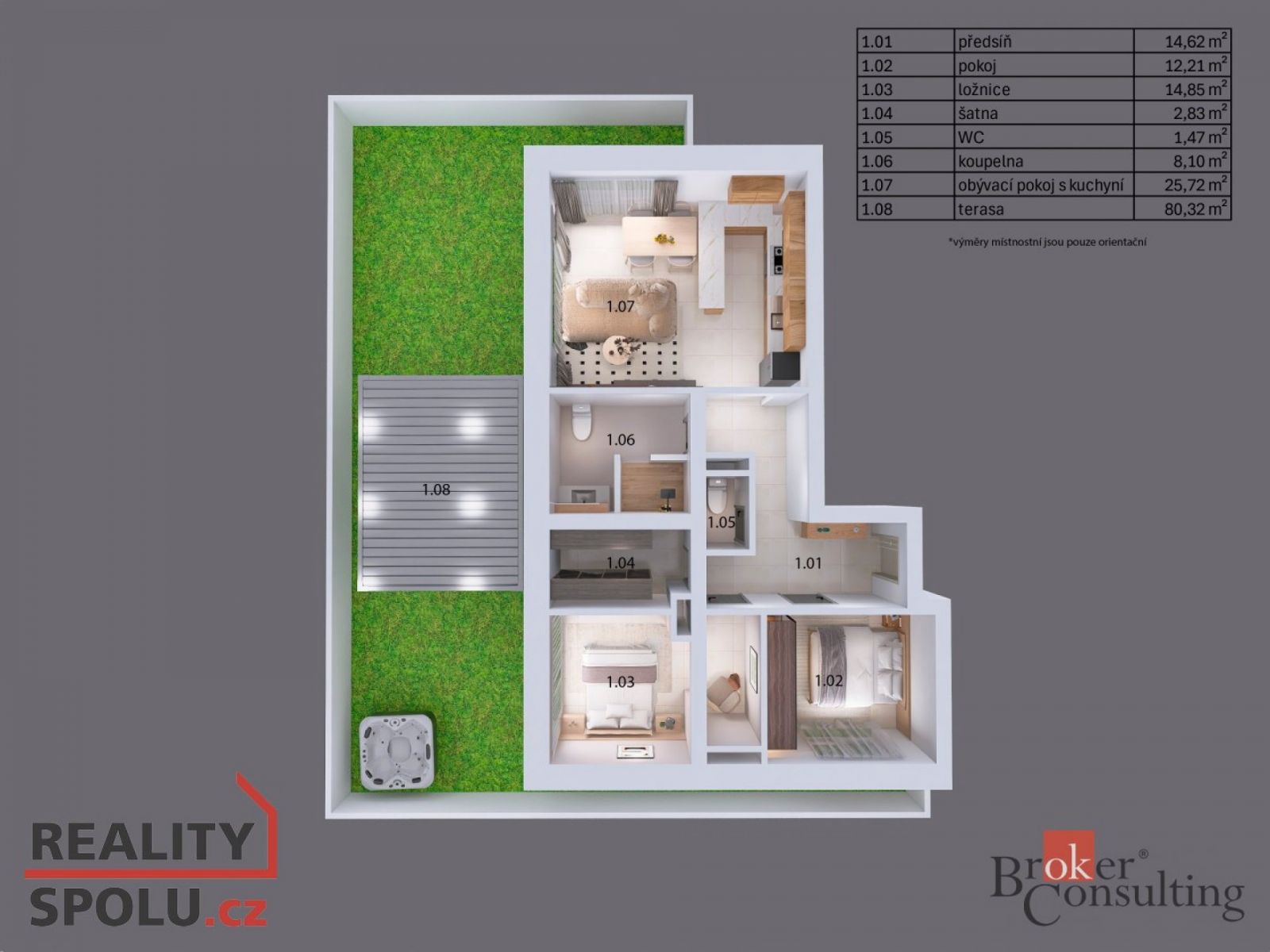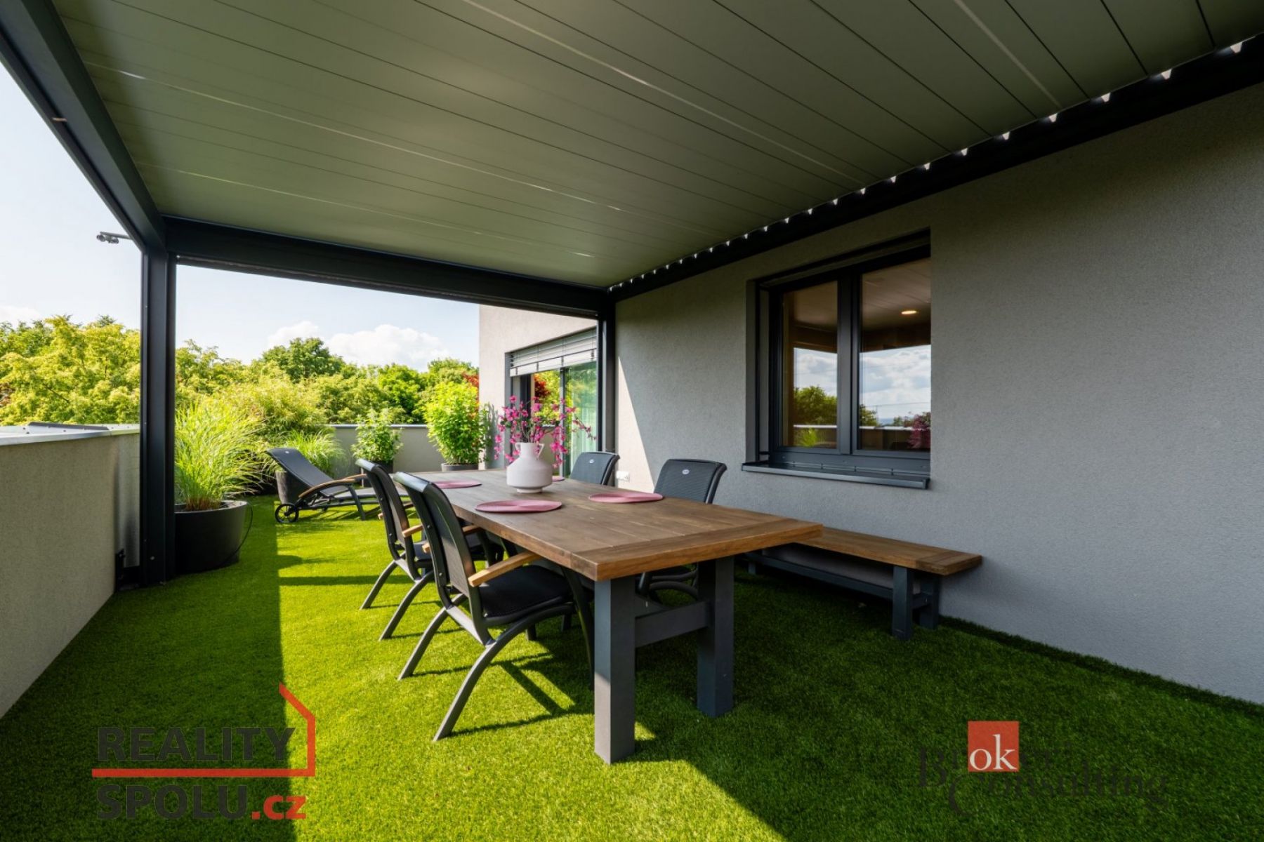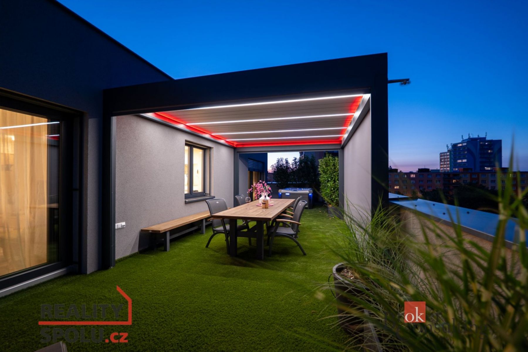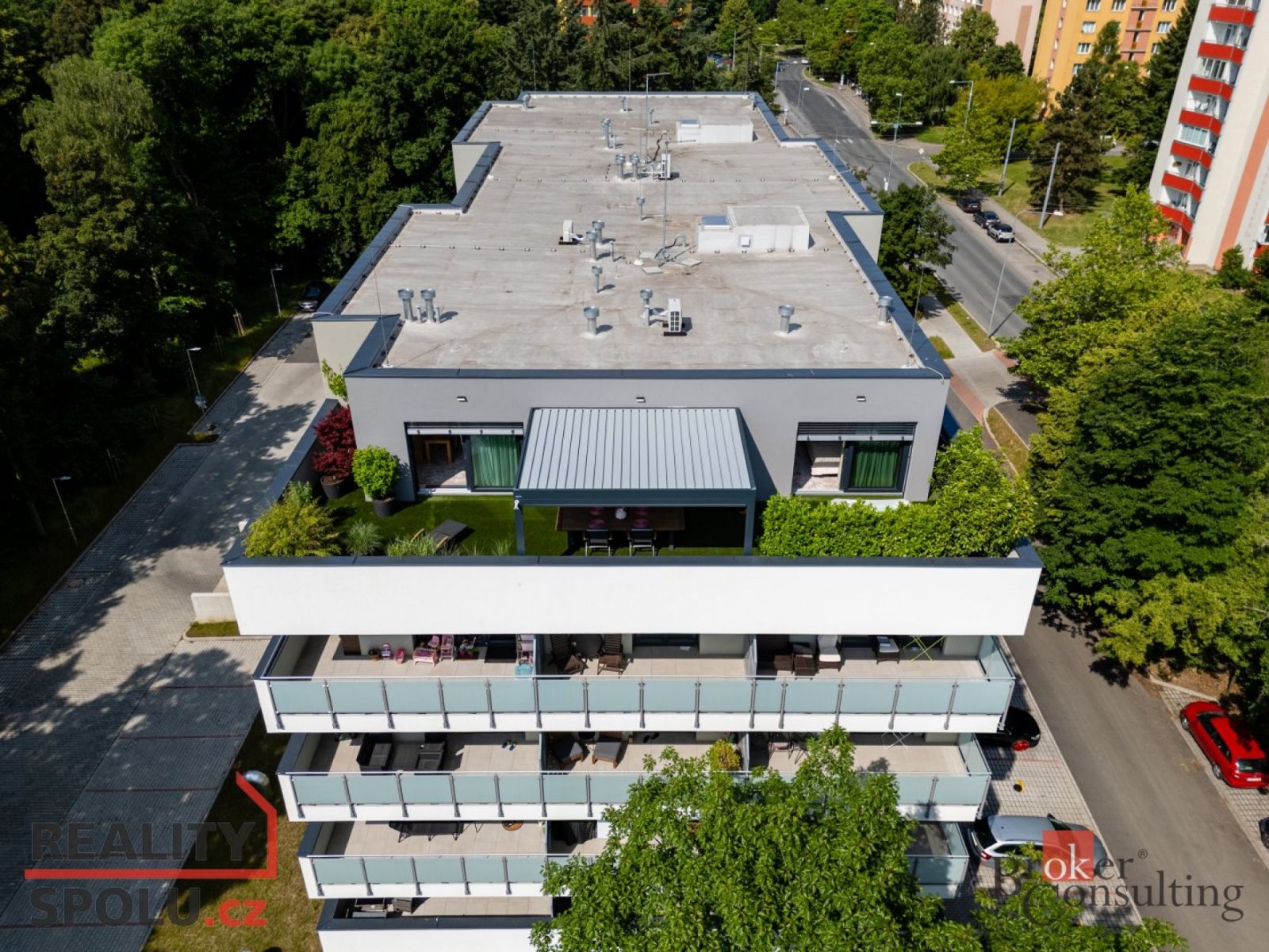 Dámy a pánové, dovolte nám představit jeden z nejluxusnějších a nejstylovějších bytů, které město Plzeň aktuálně nabízí. Tato výjimečná nemovitost se nachází v novém rezidenčním komplexu v ulici Heyrovského, v přímém sousedství Borského parku. Jednotka o dispozici 3+kk ( 78 m ) s prostornou šatnou je situována v posledním, pátém patře moderního domu a nabízí absolutní klid, soukromí a výjimečný standard bydlení. Největší dominantou je terasa o rozloze úchvatných 80 m, která obepíná celý byt a byla navržena jako soukromá relaxační zóna. Naleznete zde bioklimatickou pergolu, vířivku a vzrostlé stromy se samozavlažovacím systémem, které zajišťují maximální soukromí a navozují atmosféru luxusního apartmánu v přírodě. Každý vstup na terasu je tak malým únikem z města do zeleně a ticha přilehlého parku. Byt je nabízen kompletně vybavený stačí přijít s osobními věcmi a můžete začít nový život. Vybavení zahrnuje nábytek na míru z dubového masivu a špičkové spotřebiče značky Miele. O příjemné klima a zároveň záložní vytápění se stará klimatizační systém Siemens. Všechny použité materiály i řešení interiéru byly vybírány s důrazem na estetiku, funkčnost, nadčasovost a především kvalitu. Obklady a dlažby pocházejí od italského výrobce Mirage (série Royal), kuchyňské baterie s dřezem a filtrem na vodu dodala renomovaná značka Hansgrohe, osvětlení je z Itálie Axolight Muse, pracovní kamenná deska Tachmahad a drobné spotřebiče značky Smeg. Zde opravdu není co vytknout. Samozřejmostí jsou tři garážová parkovací stání přímo pod domem, která jsou součástí prodeje a výrazně zvyšují komfort bydlení. Tento byt je ideální volbou pro ty, kteří hledají naprosté soukromí, špičkový standard a výjimečné prostředí s přímým kontaktem s přírodou a to vše v rámci města. Pokud hledáte prémiovou nemovitost, neváhejte nás kontaktovat pro více informací či sjednání osobní prohlídky. Těšíme se na vás. Poznámka k ceně: V ceně bytu nejsou zahrnuty zmíněné tři parkovací garážové stání.
