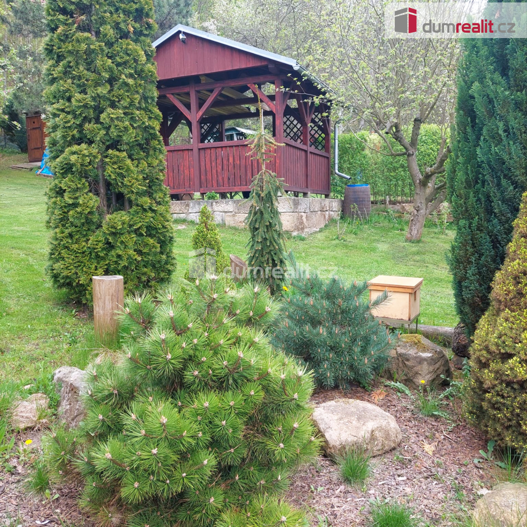 Dumrealit.cz Vám zprostředkuje prodej zahrady v osobním vlastnictví. Samotný pozemek sestává z několika parcel, které tvoří velký celek, jehož součástí jsou dvě stavby s pevnými základy stojící vedle sebe, vedené pod číslem evidenčním. Podle tohoto aktuálního stavu lze vycházet i při určitých přestavbách těchto objektů. Dále na pozemku najdete krásnou dřevěnou pergolu, pěkně vyvedený krb s grilem a udírnou. Taktéž zde nechybí precisně postavená ozdobná zahradní toaleta z tvrdého dřeva. Údržba toalety je jednoduchá a šetrná k přírodě. Na pozemek je přivedena elektřina a zároveň i pitná voda, která ústí do kohoutu vyvedeného vedle pergoly (pitnou vodu dodává společnost Severočeské vodovody a kanalizace, a.s. (SčVK) z vodovodu pro veřejnou potřebu a její užívání je tedy celoroční nezávisle na sezóně). Samozřejmě lze napojit tedy i do objektu. Všechny stavby na pozemku jsou legální a jejich stavbu lze doložit. Zahradu využít dle uvážení - částečně k relaxaci v okrasné části porostu, nebo jako pěstební. Velikost pozemku je zcela dostačující. Majitel má spoluvlastnický podíl na příjezdové cestě a autem lze v pohodě dojet až na pozemek, a zde i parkovat. Zahrada je potěšením pro každého milovníka zahrádkaření. Zde najdete vše. Nicméně nejdůležitější je mít potěšení ze soukromí a příjemného odpočinku. Nemovitostí Vás ráda provedu. Stačí si sjednat prohlídku. Navíc došlo k výraznému snížení ceny, tak vážně neváhejte. Ev. číslo: 651771. Energetický štítek: G