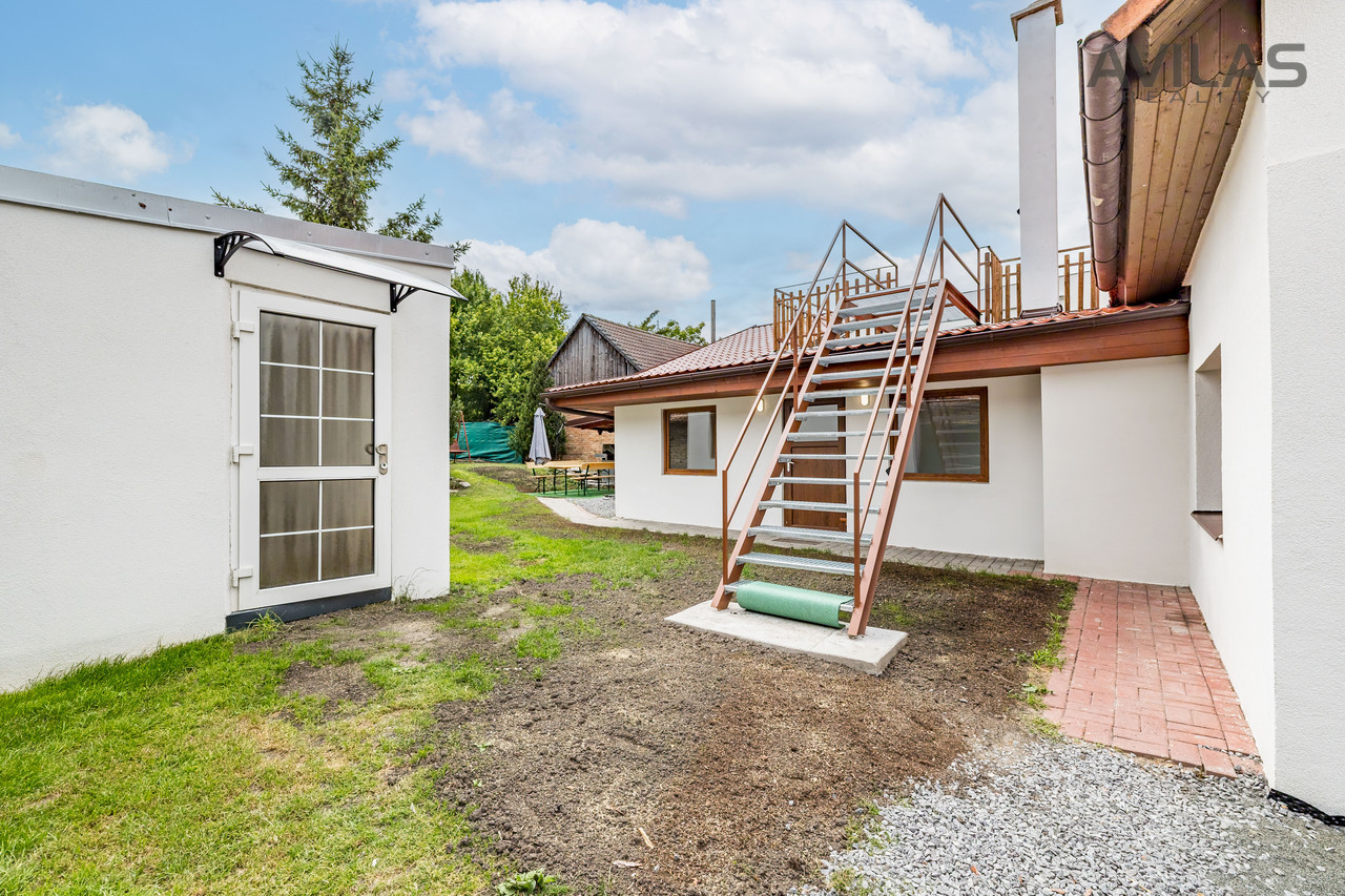 Nabízíme k prodeji zrekonstruovaný rodinný dům o dispozici 6+1 a celkové ploše 175 m2. Dům se nachází na pozemku o rozloze 549 m2 a nabízí dvě samostatné bytové jednotky, což z něj činí ideální investiční příležitost (možnost pronájmu dvou jednotek). Dispozice domu: 1. NP (105 m2) - byt 4+1: Pokoj 14 m2 Pokoj 14 m2 Kuchyň 16 m2 Koupelna s wc 6 m2 Chodba 27 m2 Technická místnost 7 m2 Dílna 7 m2 Pokoj 14 m2 Podkroví (70 m2) - byt 2+kk s terasou: Obývací pokoj 40 m2 Pokoj 15 m2 Koupelna s WC 3 m2 Chodba 12 m2 Terasa 30 m2 Vytápění: Dům je vytápěn tepelným čerpadlem. Alternativně je možné využít krb nebo elektrokotel. Zahrada: Samostatně stojící zahradní domek (dílna) - zastavěná plocha 19 m2 Pergola se zastřešením Venkovní gril Letní kuchyň Dům je ihned k nastěhování, bez nutnosti dalších investic. Klidná lokalita, ideální jak pro rodinné bydlení, tak jako dvougenerační dům či investiční nemovitost k pronájmu. Pro více informací a prohlídku nás neváhejte kontaktovat!