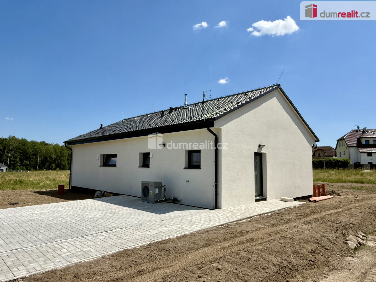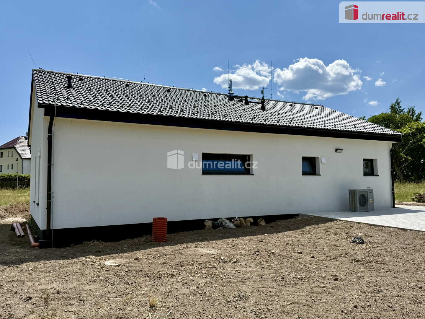 Dumrealit.cz Vám zprostředkuje prodej zbrusu nové novostavby nízkoenergetického rodinného domu v obci Andělská Hora u Karlových Varů. Objekt je před kompletním dokončením. V rámci prodeje budou dokončeny terénní úpravy a oplocení. Dům je řešen jako jednopodlažní objekt (tzv. bungalov). Z konstrukčního hlediska se jedná o dřevostavbu se sedlovou střechou. Z hlediska klasifikační třídy energetické náročnosti budovy (PENB) se jedná o pasivní dům, tj. třída “A“. Dispozičně je dům řešen jako 4+kk. K dispozici je dále technická místnost a šatna. K dispozici je koupelna s vanou a sprchovým koutem. K dispozici je dále pochozí půdní prostor. Zastavěná plocha činí 126 m2, užitná plocha činí 120 m2. Celková plocha pozemku činí 701 m2. Dům byl dostavěn a zkolaudován v říjnu roce 2025 Na objektu je FVE (fotovoltaická elektrárna). Otop je řešen tepelným čerpadlem (systém: voda-vzduch). V obývacím pokoji se dále nacházejí stylová krbová kamna. Objekt lze označit za tzv. ,,chytrou domácnost“. Okna jsou plastová s venkovními roletami. Objekt dále nabízí plně funkční rekuperaci vzduchu a přípravu pro instalaci kamerového systému. Dům je napojen na obecní kanalizační a vodovodní řad. Na vlastním pozemku je nádrž pro zadržování dešťové vody o objemu 7 m3. Splachování WC je řešeno dešťovou vodou. V případě, že hledáte bydlení v mimořádně atraktivní a klidné lokalitě s dostupnou občanskou vybaveností, mohu Vám tuto nemovitost jen doporučit. Andělská Hora je malebná obec v okrese Karlovy Vary v Karlovarském kraji. Leží cca 8,5 kilometrů východně od Karlových Varů při silnici I/6 (E48) v nadmořské výšce 665 metrů. Z terasy objektu je nádherný výhled na gotickou zříceninu hradu na Andělské Hoře. Zprostředkování hypotečního úvěru je pochopitelně samozřejmostí. Doporučujeme. Ev. číslo: 651847. Energetický štítek: A (58 kWh/m2/rok).