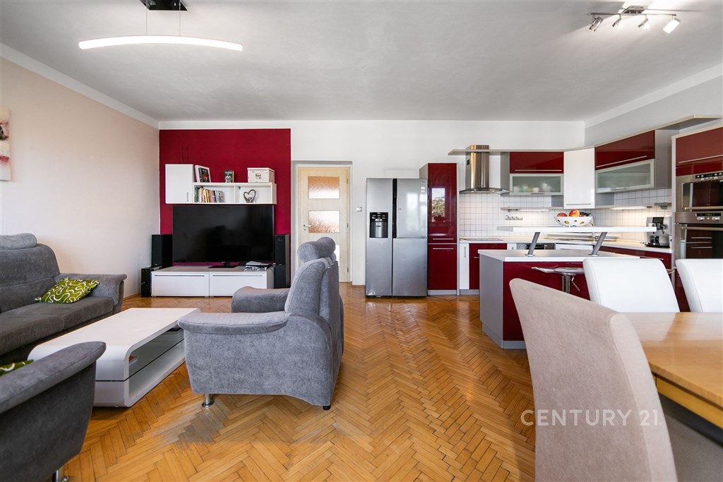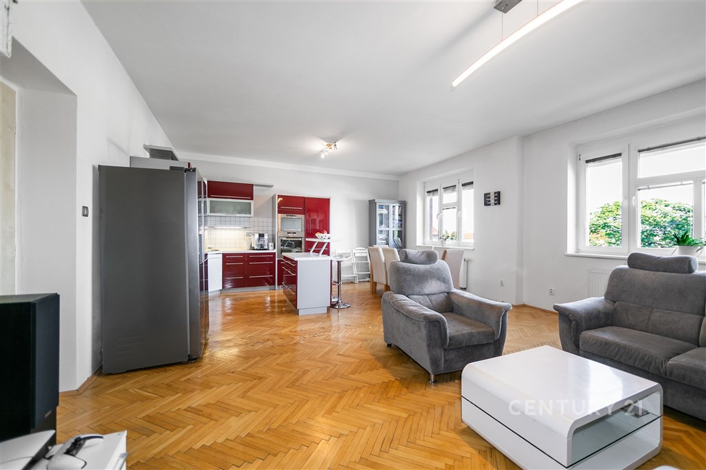 Nabízíme k prodeji prostorný byt o užitné ploše 121 m2, který se nachází ve třetím patře cihlového domu v Plzni, v ulici Na Belánce. Byt je dispozičně řešen jako 3+kk a poskytuje pohodlné bydlení i pro větší rodinu. Dispozice zahrnuje dva neprůchozí pokoje - ložnici a dětský pokoj, dále samostatnou toaletu a koupelnu, která potěší vanou i prostorným sprchovým koutem. V předsíni najdete vestavěnou skříň, jež poskytuje dostatek úložného prostoru. Dominantou bytu je velkorysý obývací pokoj o rozloze přes 40 m2. Je zde plně vybavený kuchyňský kout s ostrůvkem a barem, jídelní stůl, sedací souprava a stále zůstává dostatek místa například pro domácí posilovnu. Z obývací části je navíc krásný výhled na město Plzeň. Byt prošel kompletní rekonstrukcí před 15 lety - včetně rozvodů elektřiny, vody i plynu. O vytápění a ohřev vody se stará plynový kotel. V letních měsících zcela jistě oceníte také venkovní stahovací rolety K bytu náleží sklep o ploše 8 m2 a podíl na zahradě ve vnitrobloku, která poskytuje klidné místo k odpočinku. Parkování je možné v okolí domu, nebo si můžete pronajmout vyhrazené parkovací stání na soukromém parkovišti přímo před vchodem. Plzeň - Jižní Předměstí je velmi vyhledávaná lokalita, která nabízí veškerý komfort městského života. V docházkové vzdálenosti najdete školy, školky, obchody, restaurace, kavárny, zdravotnická zařízení i fitness centra. Výborné je také spojení MHD - tramvajová a autobusová zastávka je vzdálena jen 3 minuty chůze. Centrum Plzně je dostupné během pár minut, ať už pěšky, autem nebo tramvají. V blízkosti nechybí parky ani městská zeleň - ideální pro procházky, sport i odpočinek. Pro více informací neváhejte kontaktovat makléře, který má pro vážné zájemce k dispozici také virtuální prohlídku nemovitosti.