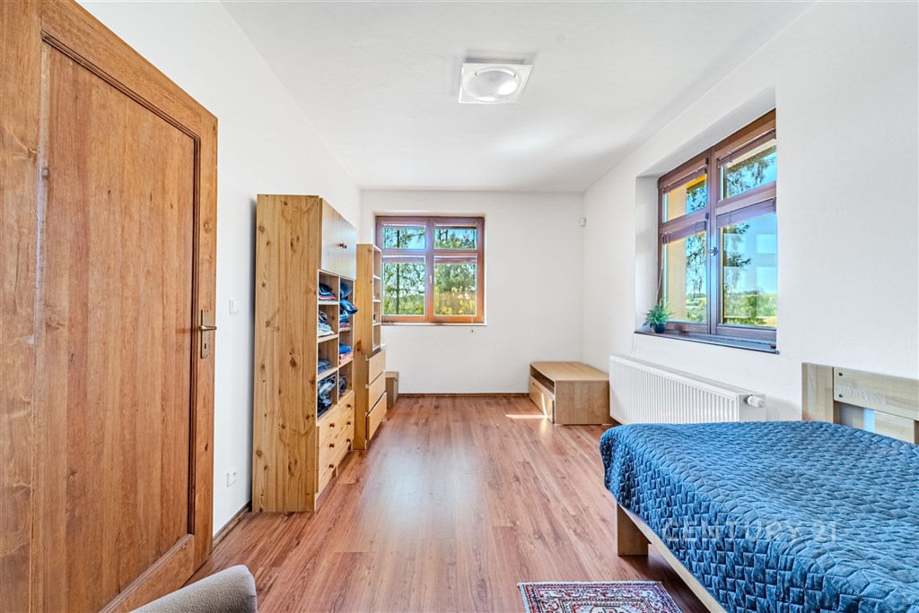 Nabízíme k prodeji atraktivní nemovitost zkolaudovanou v roce 2005, která je ideální pro komerční využití. Objekt o užitné ploše 327 m2 a dispozici 7+1 je situován na rozsáhlém a udržovaném pozemku 5 036 m2 v klidné části obce Čeřenice u Sázavy (okres Benešov). Díky své poloze a charakteru nabízí nemovitost široké možnosti využití pro podnikatelské záměry - může sloužit jako sídlo firmy, penzion, senior house, školka, školící středisko, sanatorium či rekreační centrum. Budova je řešena tak, aby poskytovala optimální komfortní zázemí - disponuje několika samostatnými pokoji vhodnými k ubytování hostů nebo zřízení kanceláří, plně vybavenou kuchyní, společenskými prostory využitelnými pro školení, prezentace, firemní akce nebo relaxaci, a čtyřmi koupelnami. V exteriéru je k dispozici krytý bazén (12 × 6 m), dvojgaráž (42,5 m2) a také zahradní domek s možností dalšího využití (sklad, dílna, apod.). Technické vybavení objektu zahrnuje tepelné čerpadlo země-voda, vlastní vrtanou studnu (50 m), obecní vodovod, elektřinu a čističku odpadních vod. Zabezpečovací systém napojený na pult centrální ochrany. Energetická třída C. Čeřenice se nachází v srdci žádané rekreační oblasti Posázaví. Nemovitost nabízí nejen klidné prostředí obklopené přírodou, ale i výbornou dopravní dostupnost (Sázava 6 km, Benešov 20 km, Praha 50 km s rychlým napojením na dálnici D1). Okolí vyniká nespočtem možností k volnočasovým aktivitám, výletům, sportu i odpočinku - v blízkosti se nachází lesy, řeka Sázava a také cyklostezky. Tento objekt představuje výjimečnou příležitost k podnikání. Pro více informací nás neváhejte kontaktovat.