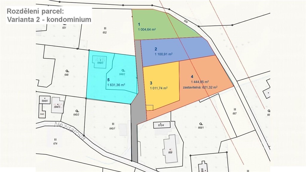Exkluzivně nabízíme k prodeji rodinný dům s užitnou plochou 182 m2, který se nachází v klidné lokalitě Liberce v Nezdarově ulici. Nemovitost je umístěna na rozlehlém pozemku o výměře 6850 m2 a představuje jedinečnou kombinaci pohodového rodinného bydlení a zajímavé investiční příležitosti. Přízemí domu dominuje prostorný obývací pokoj s krbem propojený s moderně zařízenou kuchyní. Obývací pokoj je díky francouzskému oknu spojen s terasou. V přízemí se dále nachází pracovna, jedna ze dvou koupelen, šatna a technická místnost. V patře se z prostorné haly vchází samostatnými vstupy do čtyř pokojů, druhé koupelny, samostatného WC a také na balkon s výhledem do zeleně. K domu náleží také samostatná vinotéka a prostorná garáž s dílnou. Objekt nabízí dostatek prostoru i pro větší rodinu a je vhodný také pro vícegenerační bydlení. Dům i pozemek je obklopen přírodou, v klidné slepé ulici přímo u lesa, a přitom jen deset minut od centra města. V okolí je kompletní občanská vybavenost - školy, školky, obchody, zdravotnická zařízení i zastávky MHD. Lokalita tak spojuje komfortní bydlení v soukromí s výbornou dostupností městské infrastruktury. Nemovitost poskytuje velmi zajímavou příležitost případným oddělením části rozlehlého pozemku a jeho dalším rozdělením na 4 samostatné stavební parcely takto: Varianta 1 autonomní parcely: Čtyři stavební pozemky o výměrách 1058 m2, 1086 m2, 1134 m2 a 1113 m2 se společnou oddělenou příjezdovou cestou a hlavní parcela o výměře 2493 m2 s domem. Varianta 2 kondominium: Čtyři samostatné stavební pozemky o výměrách 1000 m2, 1100 m2, 1011 m2 a 1444 m2 (se zastavitelnou plochou 621 m2) sdílející příjezdovou cestu s pozemkem o výměře 1361 m2 s domem. Obě varianty otevírají zajímavé možnosti jak pro rodiny a jednotlivce, tak pro investory či developery, kteří hledají větší stavební plochu v atraktivní lokalitě poblíž Liberce.