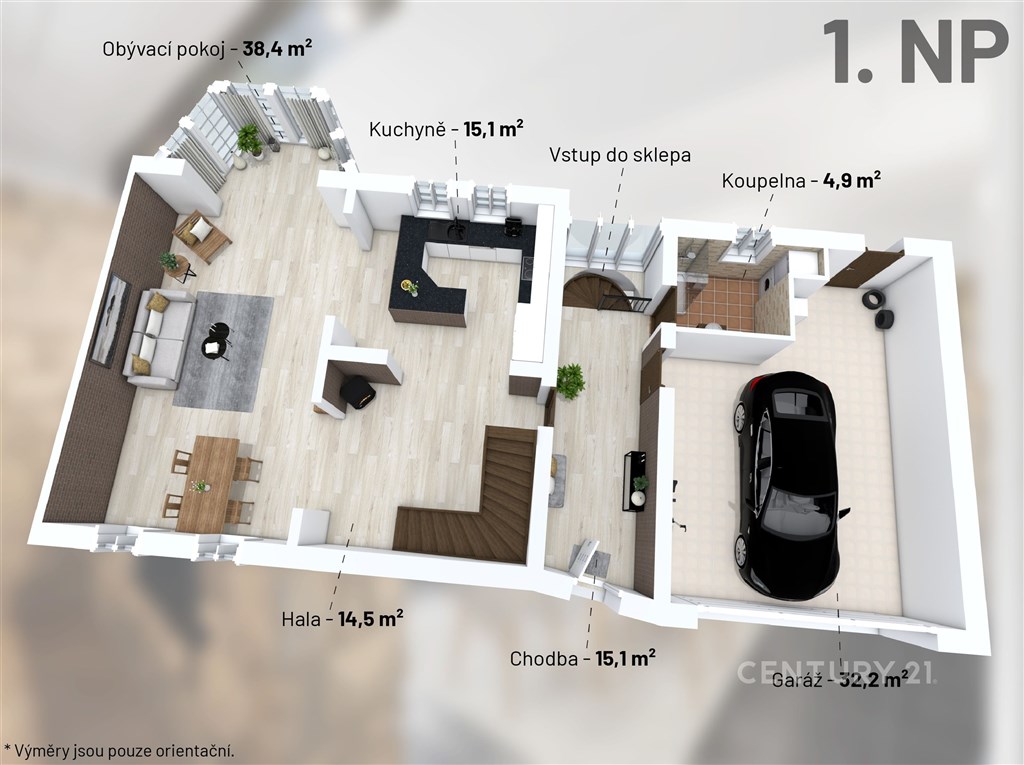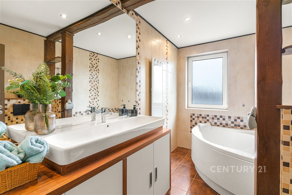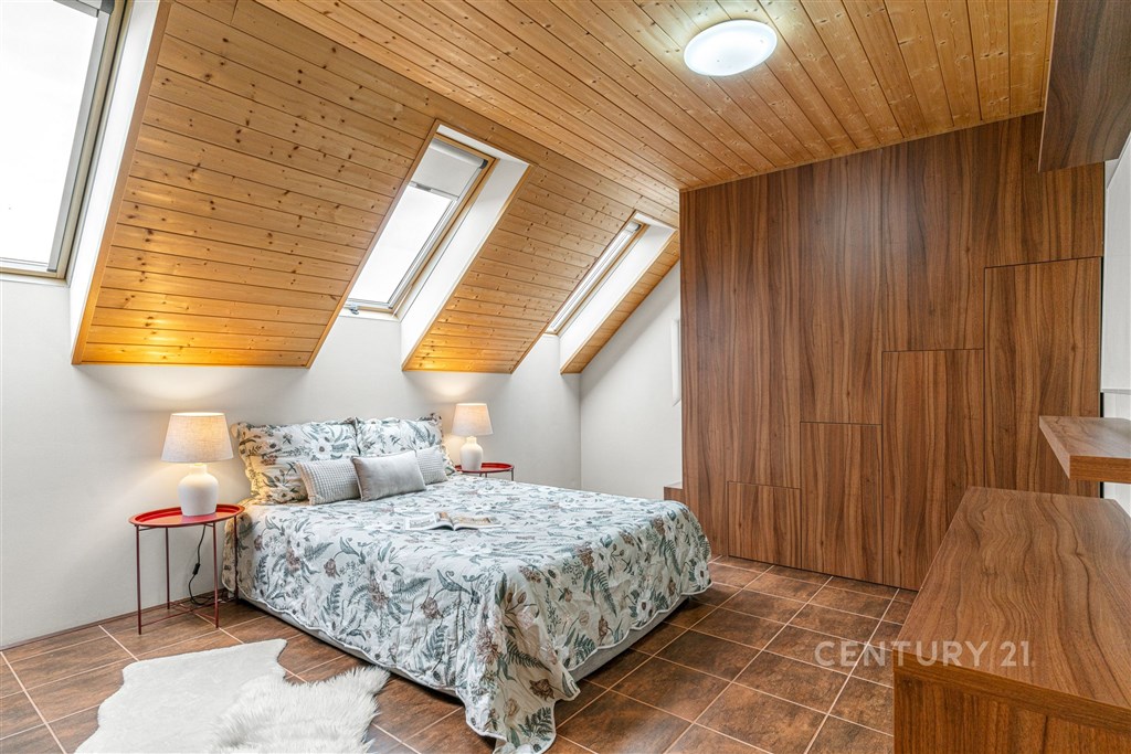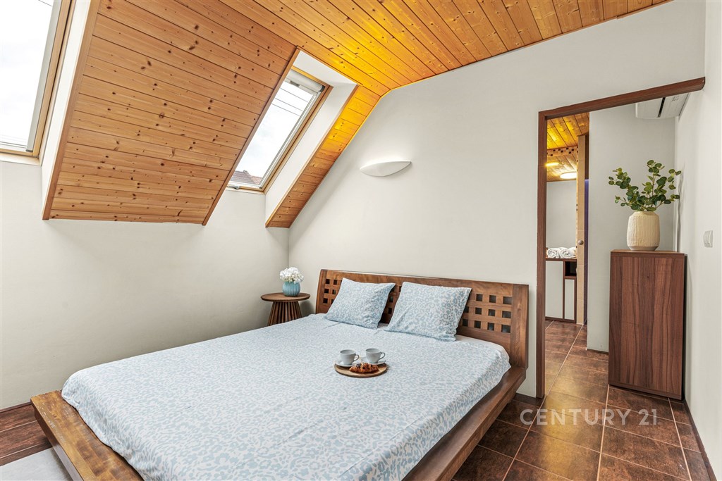 Jsou adresy, kde se ráno spěchá, a pak jsou adresy, kde se můžete nadechnout a nechat den plynout vlastním tempem. Tento dům v nejžádanější čtvrti Slaného patří právě k těm druhým. Na první pohled zaujme svým anglickým stylem, promyšlenou dispozicí 6+kk a téměř 250 m2 užitné plochy. Poskytuje dostatek prostoru, který drží rodinu pohromadě, a přitom nabízí každému členovi vlastní soukromí a klid. Po vstupu vás přivítá prostorná chodba, která vás zavede do srdce domu - velkorysé kuchyně pod cihlovým obloukem. Ta je propojená s obývacím pokojem, kde si můžete užívat rodinné večery u plápolajícího krbu. V přízemí nechybí koupelna ani vstup do garáže pro dva vozy. Pokud rádi odpočíváte, jistě oceníte domácí saunu. Skvěle se hodí k tomu, abyste si po dlouhém dni vychutnali sklenku vína z vlastní sklepní vinotéky. V patře na vás čeká pět pokojů, dvě koupelny a útulný půdní koutek. Díky této dispozici je dům ideální nejen pro velkou rodinu, ale i pro ty, kdo potřebují prostornou a plně oddělenou domácí kancelář. Vše doplňují vestavěné skříně a praktické úložné prostory šikovně ukryté v každém rohu. Vzrostlá zahrada orientovaná na jih zaručí dostatek slunce po celý den. Najdete zde místo pro pergolu, zahradní domek a případně i budoucí bazén. Čelakovského ulice leží v nejvyhledávanější klidné čtvrti Slaného, která nabízí kompletní občanskou vybavenost. V docházkové vzdálenosti najdete les, cyklostezky, sportoviště, dětská hřiště, supermarket i restaurace. Do Prahy se dostanete autem za dvacet minut nebo pohodlně pravidelnými autobusovými spoji. Pokud vás tato nabídka oslovila, neváhejte nás kontaktovat. Rádi vám dům ukážeme osobně.