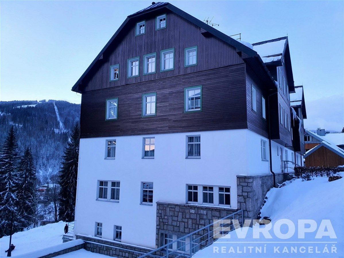Nabízíme Vám k pronájmu mezonetový byt 3+kk o celkové podlahové ploše 105 m2 v klidné, atraktivní lokalitě Špindlerova Mlýna na ulici Okružní. Byt se nachází ve čtvrtém nadzemním podlaží apartmánového domu Primátor s krásným výhledem na sjezdovky lyžařského areálu Medvědín. Dispozice bytu: z předsíně s WC a komorou vcházíte do prostorného obývacího pokoje s krbem, vybaveným kuchyňským koutem a vlastním barem, odkud se po dřevěných schodech dostáváte do dvou podkrovních ložnic a koupelny s WC. Vhodné až pro 6osob. K bytu náleží 2 garážové parkovací stání. Dům, kde se apartmán nachází je 10 min docházkové vzdálenosti od centra města Špindlerův Mlýn, 5 min chůze od dolní stanice lanové dráhy na Medvědín a 3 min do Aquaparku. Pronájem této bytové jednotky činí na zimní sezonu 45.000, Kč/ měsíc + 10.000, Kč/měsíc energie, jaropodzim 32.000, Kč/ měsíc + 8.000, Kč/ měsíc energie. Kauce: 50.000, Kč. Byt je možné pronajmout krátkodobě na 13 měsíce.. Od 15.12.2025 31.3.2026 byt obsazen. Při podpisu smlouvy se hradí kauce, nájem a provize RK.
