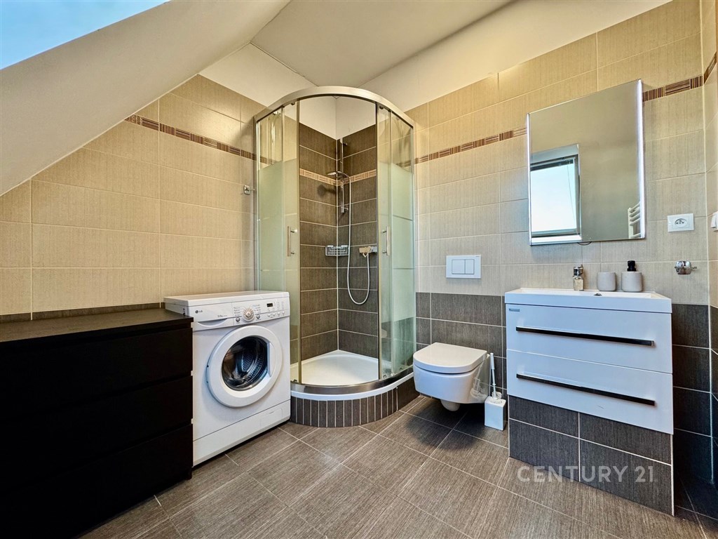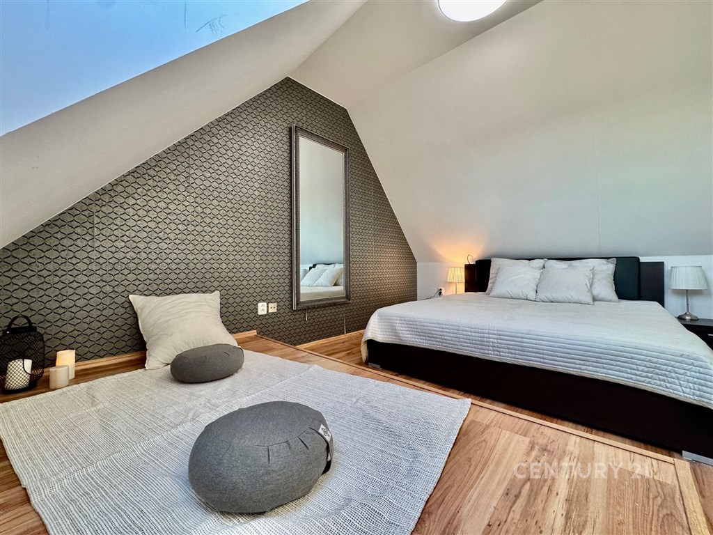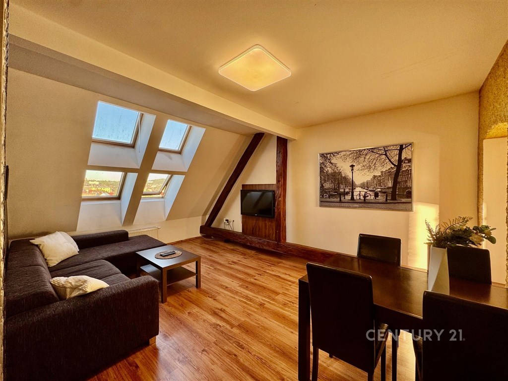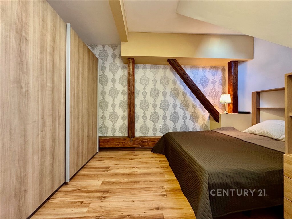 Nabízíme k prodeji moderně zrekonstruovaný byt s klimatizací o dispozici 3+kk na ulici Tržní 6 v Brně Černovicích. Tento byt se nachází v 6. patře cihlového domu bez výtahu původně z roku 1918. Dům prošel kompletní rekonstrukcí v roce 2015. Renovace střechy pak v roce 2023. Dům je zateplený s dřevěnými střešními okny. Svojí neobvyklou dispozicí a rozložením ve dvou patrech nabízí neotřelý prostor v blízkosti řeky Svitavy a dochozího Centra Brna. Interiér bytu má prvky přiznaných krovů a dominuje mu centrální stěna s prostorovou povrchovou úpravou a schodištěm do patra. Byt má přistřešenou terasu s orientací na J. Terasa směřuje do klidného vnitrobloku kam má majitel přístup. Ložnice a obývací pokoj v prvním podlaží bytu jsou orientovány na S s krásným výhledem na Židenice, Vinohrady a Líšeň. Na tomto patře je i kuchyně s terasou a toaleta s umyvadlem. Druhé patro je přístupné po dřevěném otevřeném schodišti z kuchyně. Zde je v zádveří ukrytý plynový kondenzační kotel s úložným prostorem na chodbě. Z chodby je vstup do ložnice a koupelny se sprchovým koutem, pračkou a dostatkem prostoru. Náklady měsíčně za rok 2O24 celkem 5.012 Kč: SVJ 802 Kč Elektřina 1.820 Kč Plyn 2.390 Kč Parkování je možné v modré zóně C na ul. Klíčové nebo Zvěřinové. Přímo před domem se dá bezpečně zastavit a vyložit nákup. Pro více informací a prohlídku kontaktujte makléře Petra Vyskočila.