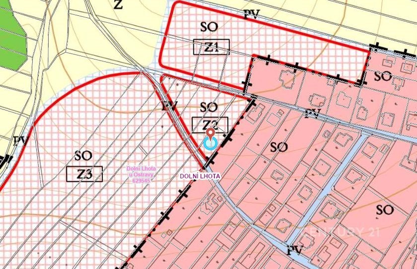 Nabízíme k prodeji atraktivní stavební pozemek o výměře 643 m2, vedený v katastru jako orná půda. Pozemek se nachází v obci Dolní Lhota u Ostravy a je v územním plánu zařazen do ploch změn - SO (smíšené obytné), které jsou určeny především pro bydlení v rodinných domech či menších bytových domech. Pozemek má přístup po obecní komunikaci, která je v současnosti vysypaná štěrkem. Inženýrské sítě se nacházejí ve vzdálenosti cca 25 metrů, což usnadňuje budoucí napojení. Územní plán umožňuje také polyfunkční využití pozemku - kromě bydlení je možné zde umístit menší občanské vybavení, služby či drobnou výrobu, která nebude narušovat kvalitu okolního prostředí. Maximální výška budoucí zástavby je dvě nadzemní podlaží a podkroví a koeficient zastavění nesmí přesáhnout 40 %, což zaručuje zachování nízkopodlažního a vzdušného charakteru celé lokality. Nepřípustné jsou naopak průmyslové stavby, rozsáhlé obchodní plochy, čerpací stanice, autoservisy či zahrádkářské osady. Díky těmto regulacím se jedná o perspektivní a klidnou obytnou zónu, vhodnou zejména pro rodinné bydlení. Pokud hledáte stavební místo v atraktivní a dobře dostupné lokalitě, které je v územním plánu jasně definováno jako plocha změn pro obytné využití, s dostupným přístupem a sítěmi v dosahu, pak je tato nabídka ideální příležitostí.