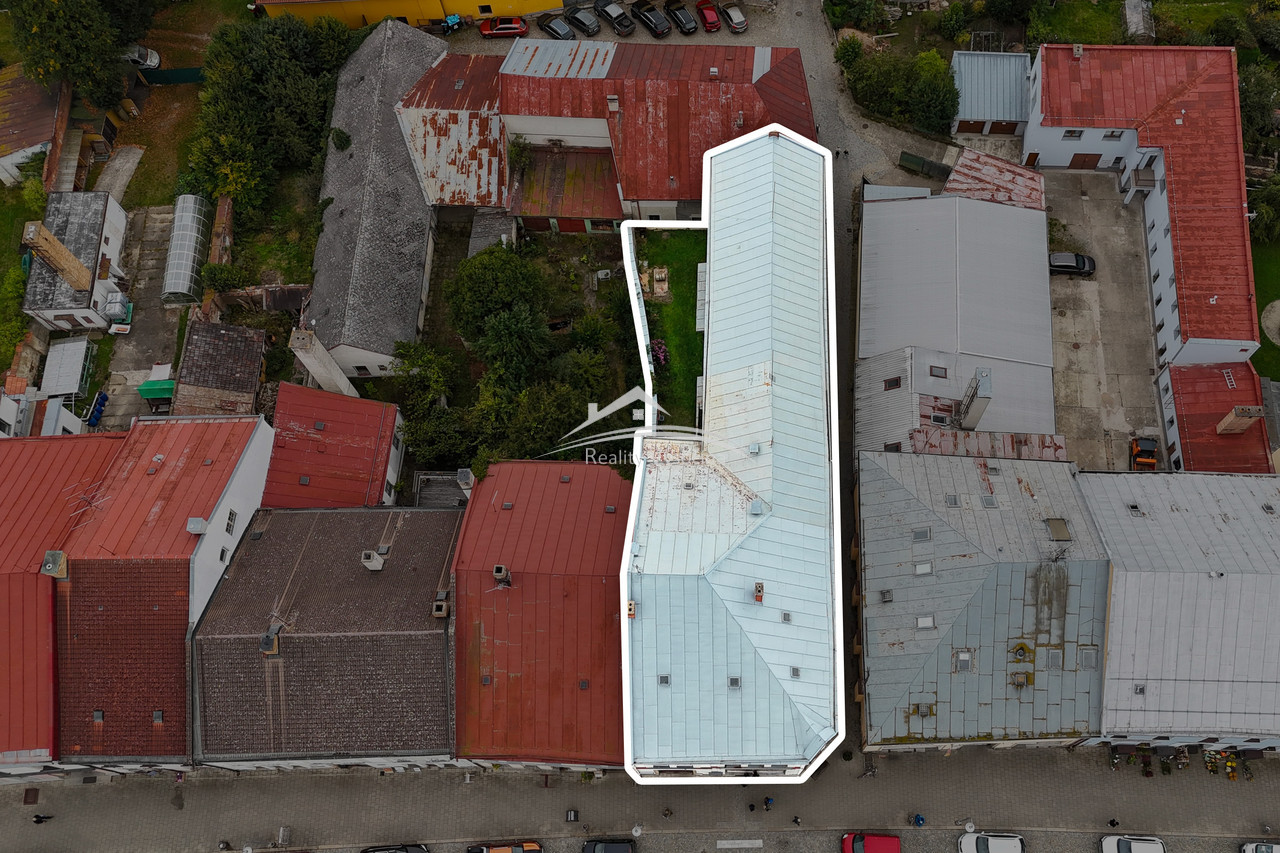 Nabízíme v exkluzivním zastoupení k prodeji rozlehlý dům s obrovským investičním potenciálem, který se nachází přímo na historickém náměstí v Polné. Největší předností této nemovitosti je stabilní výnos z dlouhodobého nájmu v přízemí, kde na ploše přibližně 227 m2 působí již 30 let obchod s potravinami. Nájemce zajišťuje pravidelný příjem od prvního dne a výši měsíčního nájmu Vám na požádání sdělíme. Dům disponuje 2 plnohodnotnými nadzemními podlažími, která jsou ihned využitelná jak pro bydlení, tak pro podnikání. V současnosti jsou zapsány tři samostatné bytové jednotky - jedna z nich je celá zrekonstruovaná, další prostory je možné stavebně upravit podle potřeb nového majitele buď na byty nebo kanceláře. Rozsáhlá půda nabízí možnost vestavby několika dalších bytů a částečné podsklepení poskytuje praktické prostory pro skladování a technické zázemí, které v současné době využívají potraviny. Na dům navazuje jižní trakt směrem od náměstí dolů k restauraci Měšťanského pivovaru, ve kterém se v druhém patře nacházejí dva samostatné nebytové prostory o velikosti 58 m2 a 36 m2. Každý z nich je vybaven umývárnou a splachovacím WC, což zajišťuje jejich plnohodnotné využití pro kanceláře či služby. Dům je minimálně 140 let starý a je zde potřeba počítat s celkovou rekonstrukcí. V uplynulých letech proběhly pouze dílčí rekonstrukce - v roce 2010 byla na západní straně vyměněna okna za plastová, v roce 2015 dostal západní trakt domu novou fasádu bez zateplení a v roce 2018 byla provedena obnova nátěru pozinkované střechy. Ostatní rozvody a stavební části domu jsou v původním, průběžně udržovaném stavu. Celková plocha pozemku činí 685 m2, z toho zastavěná plocha domu je 512 m2. Součástí je i uzavřený dvůr s průjezdem přímo z náměstí. Nemovitost je napojena na obecní vodovod, kanalizaci, plynovod a elektřinu 220/380 V, která je již částečně rozdělena na samostatná měření pro jednotlivé části domu. Tento dům představuje jedinečnou kombinaci okamžitého nájemního výnosu, rozsáhlých prostor s okamžitým využitím a mimořádného potenciálu pro rozšíření o nové bytové jednotky. Jde o skvělou příležitost pro investory i pro ty, kteří hledají vlastní projekt v samotném srdci Polné. Pro více informací a domluvení prohlídky nás neváhejte kontaktovat.