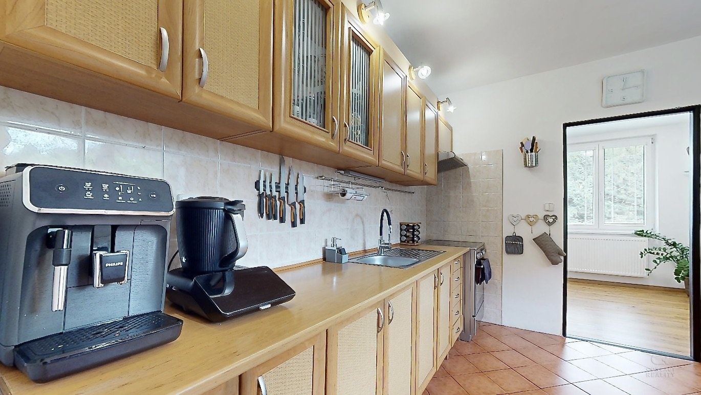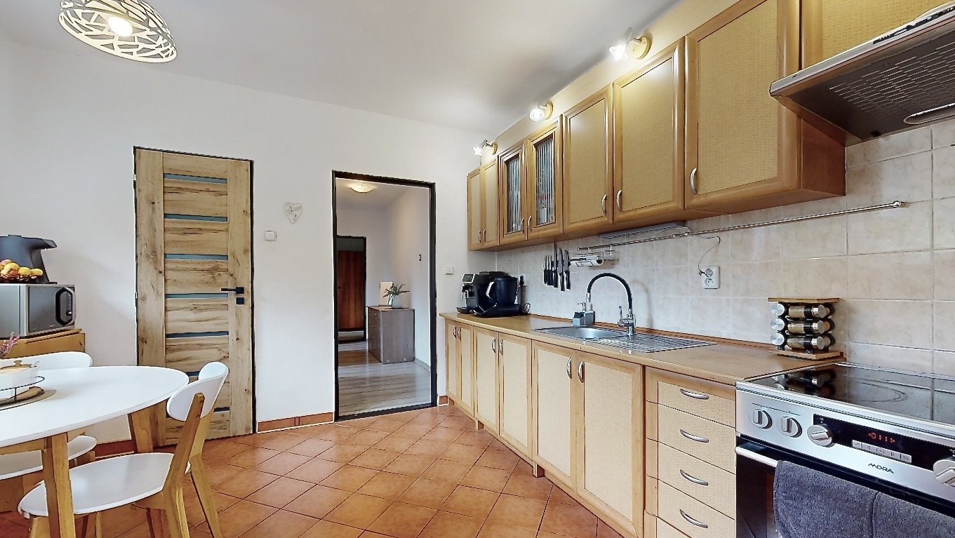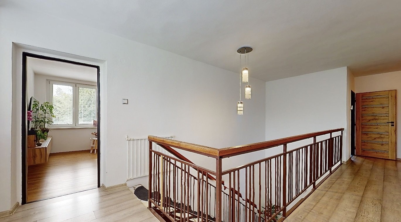 Nabídnu vám krásný a prostorný dům s velkou zahradou v obci Stará Červená Voda. Dům má dispozici 4+1 s užitnou plochou 215m2 ve dvou podlažích, kdy v přízemí se nachází vstupní veranda, ze které se vchází do velké haly. Hala rozděluje vstupy do pokoje pro hosty, dále dvou místností s technickým zázemím a další vstup je do kotelny, která je propojená s garáží. V patře domu je dispozice 3+1 - prostorný obývací pokoj, na který navazuje menší místnost, dále kuchyně, ložnice, dětský pokoj, koupelna, samostatná toaleta, šatna a spižírna v kuchyni. Pokud někdo bude chtít udělat větší dispozici, tak je tato varianta také možná. Nabízí se také možnost přikoupit sousedské parcely o výměře 1393 m2. Tím, že dům je typem Šumperák, tak je v něm hodně světla díky velké ploše umístění oken. Dokonce ložnicí a dětský pokoj v patře propojuje uzavřená lodžie a nejen, že dává spoustu světa do místnosti, ale tvoří tak další místo na uskladnění věcí. Zahrada má výměru 3193m2, je velmi hezky udržovaná a tím, že se jedná o rovnou plochu, tak část zahrady udržuje robotická sekačka, což velmi usnadní čas a práci. K domu patří další dvě stavby: 1) bývalý obchod, ten nyní slouží na uskladnění věcí a 2) v zadní části zahrady je zděná kůlna, která je podsklepena a nyní slouží také na uskladnění věcí. Obec Stará Červená Voda sousedí s městem Vidnava a obcí Velká Kraš, do pár minut jste v Černé Vodě a také v Žulové. Klidnou jízdou jste v Jeseníku do 25 min. V prezentaci je 3D virtuální prohlídka, která vám dům ještě přesněji vystihuje a v případě dalších dotazů jsem na telefonu i o víkendu. Co se týče financování, tak s tímto vám rád poradím a můžu zajistit hypotéku přesně na míru vašim potřebám.