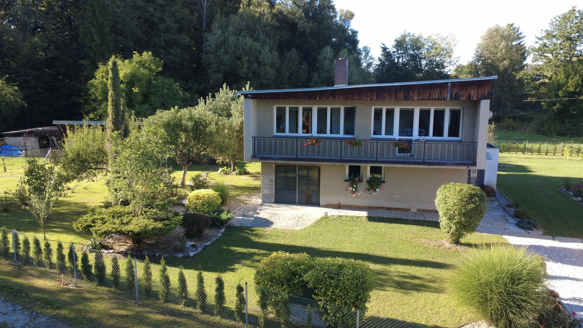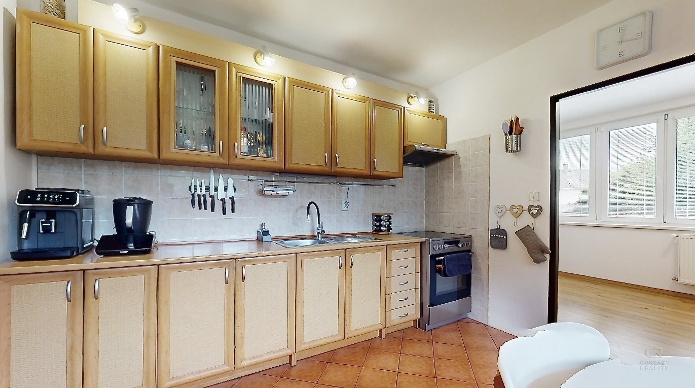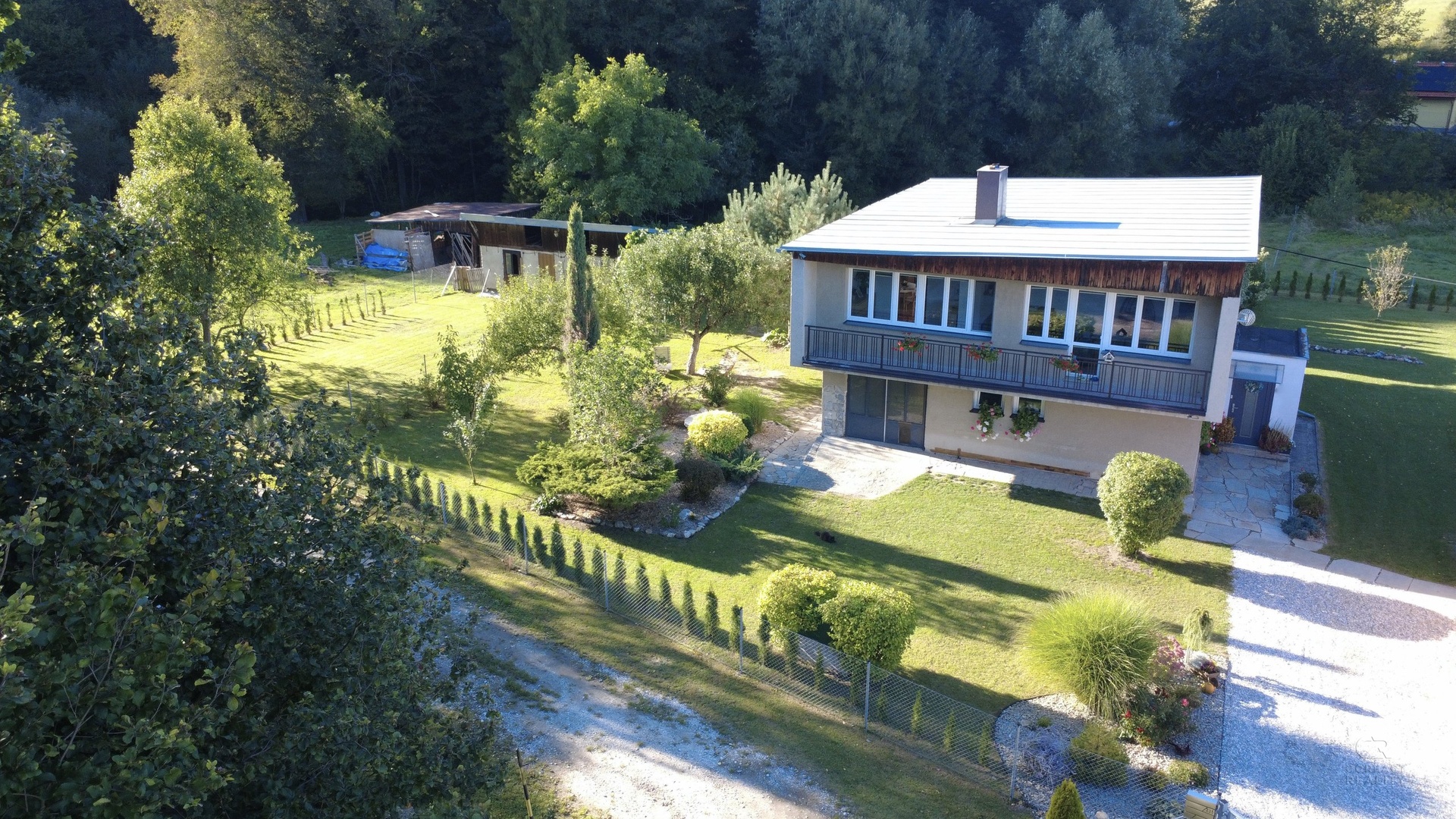 Nabídnu vám krásný a prostorný dům s velkou zahradou v obci Stará Červená Voda. Dům má dispozici 4+1 s užitnou plochou 215m2 ve dvou podlažích, kdy v přízemí se nachází vstupní veranda, ze které se vchází do velké haly. Hala rozděluje vstupy do pokoje pro hosty, dále dvou místností s technickým zázemím a další vstup je do kotelny, která je propojená s garáží. V patře domu je dispozice 3+1 - prostorný obývací pokoj, na který navazuje menší místnost, dále kuchyně, ložnice, dětský pokoj, koupelna, samostatná toaleta, šatna a spižírna v kuchyni. Pokud někdo bude chtít udělat větší dispozici, tak je tato varianta také možná. Nabízí se také možnost přikoupit sousedské parcely o výměře 1393 m2. Tím, že dům je typem Šumperák, tak je v něm hodně světla díky velké ploše umístění oken. Dokonce ložnicí a dětský pokoj v patře propojuje uzavřená lodžie a nejen, že dává spoustu světa do místnosti, ale tvoří tak další místo na uskladnění věcí. Zahrada má výměru 3193m2, je velmi hezky udržovaná a tím, že se jedná o rovnou plochu, tak část zahrady udržuje robotická sekačka, což velmi usnadní čas a práci. K domu patří další dvě stavby: 1) bývalý obchod, ten nyní slouží na uskladnění věcí a 2) v zadní části zahrady je zděná kůlna, která je podsklepena a nyní slouží také na uskladnění věcí. Obec Stará Červená Voda sousedí s městem Vidnava a obcí Velká Kraš, do pár minut jste v Černé Vodě a také v Žulové. Klidnou jízdou jste v Jeseníku do 25 min. V prezentaci je 3D virtuální prohlídka, která vám dům ještě přesněji vystihuje a v případě dalších dotazů jsem na telefonu i o víkendu. Co se týče financování, tak s tímto vám rád poradím a můžu zajistit hypotéku přesně na míru vašim potřebám.