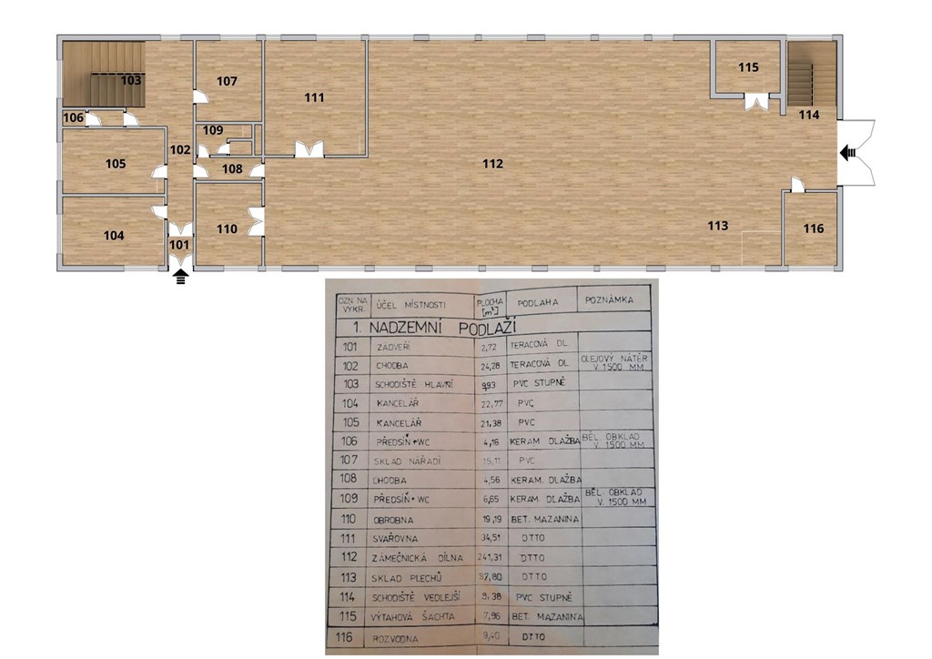 Nabízíme k prodeji variabilní třípodlažní objekt o celkové užitné ploše cca 1 400 m2. Díky robustní konstrukci a strategické poloze je budova ideální pro kombinaci výroby, logistiky a rezidenčního bydlení. Strategická poloha a doprava Dostupnost: Objekt se nachází jen pár minut od nájezdu na dálnici D1. Logistika: Ideální poloha pro rychlou distribuci zboží a zásobování. Pozemek: Součástí prodeje je plocha o rozloze 1 652 m2, která umožňuje pohodlnou manipulaci a parkování přímo u objektu. Dispozice objektu 1. NP (471 m2): Výrobní prostory, kancelář, zázemí a sklady. 2. NP (468 m2): Výrobní a skladovací plochy se sociálním zázemím (sprchy, toalety, kuchyňka). 3. NP (461 m2): Aktuálně rozděleno na dvě bytové jednotky. Jedna je ihned obyvatelná, druhá připravena k realizaci. Patro lze dále dělit na více bytů. Technické parametry Konstrukce: Železobetonový skelet (sloupy). Vnitřní příčky nejsou nosné, což umožňuje libovolnou změnu dispozic. Nosnost podlah: 500 kg/m2. Vybavení: Funkční nákladní výtah s nosností 900 kg. Sítě: Kompletní napojení na elektřinu, vodu, kanalizaci a plyn. Proč investovat právě zde? Územní plán: Objekt se nachází v obytné zóně. Je tedy ideální pro přestavbu na bytový dům. Všestrannost: Robustní stavba vhodná pro těžké stroje, skladování i administrativu. Flexibilita: Možnost spojit podnikání s vlastním bydlením na jedné adrese. Objekt nabízí obrovský potenciál pro zhodnocení. Budu se na vás těšit na prohlídce!
