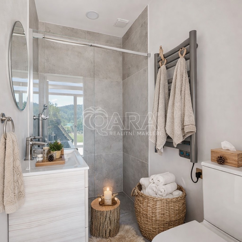 Designová chata s panoramatickým prosklením v Hutisku Solanci Hledáte chatu, která se vymyká běžnému standardu? Máte vysoké nároky na design a slabost pro originální architektonická řešení? Představujeme vám luxusní objekt, který svou jedinečnou lokalitou i vzhledem uspokojí i ty nejnáročnější klienty. Jedná se o čerstvě zkolaudovanou chatu o dispozici 2+kk s panoramatickým prosklením, která se nachází v malebném Hutisku Solanci. Už při vstupu vás díky dostatku světla a minimalistickému stylu této netradiční stavby pohltí příjemný pocit. Přízemí chaty je navrženo s důrazem na funkčnost a otevřenost. Po levé straně se nachází útulná ložnice, dále pak úchvatná koupelna s moderním sprchovým koutem. Veškerý design a barvy jsou sladěny do moderních a nadčasových odstínů. Kuchyňský kout čeká na vaše kreativní nápady, abyste si jej zařídili přesně podle svých představ a sladili s osobitým stylem. Nad ložnicí a koupelnou se ukrývá praktická galerie. Tento útulný prostor je ideální jako místo pro relaxaci, čtenářský koutek, nebo jako další ložnice pro hosty. Dominantou je velkoformátové prosklení, které se táhne od podlahy až ke stropu a otevírá fascinující výhledy do okolní krajiny. Tento jedinečný architektonický prvek nejenže zaplaví interiér přirozeným světlem, ale zároveň vám poskytne přímý vstup na terasu, která se stane dokonalým místem pro odpočinek a pozorování přírody. Celkový design dokonale vybízí k vybavení v skandinávském stylu, který pracuje se světlými barvami a přírodními materiály. Objekt je osazen kvalitními hliníkovými okny s trojskly a speciální barevnou úpravou. Tato okna zajišťují vynikající tepelné i zvukové izolační vlastnosti a úsporu energií. Prostory podtrhují moderní podlahové krytiny - vinylová podlaha a dlažba, které jsou nejen elegantní, ale také velmi praktické a snadné na údržbu. O stálé a příjemné teplo se postará chytré podlahové vytápění, které si pohodlně nastavíte pomocí termostatu. Odpadní vody jsou řešeny vlastní jímkou, a k dlouhé životnosti a efektivitě přispívá i plechová střecha se stříkanou izolací. Pokud hledáte něco, co vás skutečně okouzlí a kde se budete cítit jako doma, neváhejte mě kontaktovat. Ráda vám tento architektonický skvost představím na osobní prohlídce.
