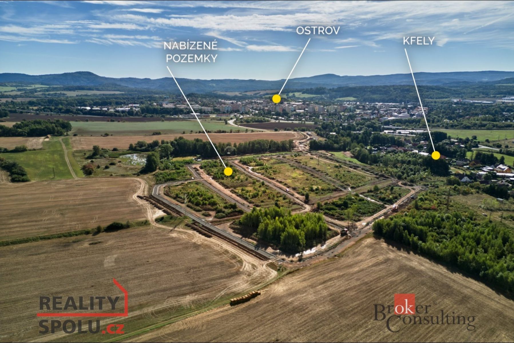 Nabízíme Vám stavební pozemky v obci Kfely u Ostrova, které leží v nádherné přírodě na úpatí Krušných hor. Zde vzniká nový projekt zahrnující celkem 48 stavebních pozemků, které spojují klid venkova s výbornou dostupností do města. Projekt je rozdělen do dvou etap první fáze nabízí 43 pozemků v katastru obce Kfely, které jsou k dispozici již nyní, a druhá fáze zahrnuje 5 pozemků v katastru města Ostrov, jejichž nabídka bude aktuální v průběhu roku 2026. Pozemky budou kompletně zasíťované, na jejich hranici bude přivedena elektřina, voda, plyn i tlaková kanalizace. Územní plán umožňuje výstavbu rodinných domů v kategorii čistého bydlení se dvěma nadzemními podlažími a obytným podkrovím. Velkou výhodou je, že zastavitelnost není limitována konkrétním procentem, což přináší vysokou flexibilitu při plánování a návrhu domu přesně podle vašich představ. Samotné pozemky jsou rovinaté, dobře orientované a umístěné v klidné části mezi městem a přírodou, což zajišťuje maximální pohodlí i kvalitu života. V tomto projektu máte možnost využít dotaci od města Ostrov ve výši 150.000 Kč na koupi pozemku a 150.000 Kč na výstavbu rodinného domu. Jedinečnou přidanou hodnotou je blízkost Krušných hor. V dojezdové vzdálenosti několika minut se nachází oblíbené lyžařské areály Klínovec, Plešivec či Boží Dar, desítky kilometrů běžkařských tras včetně Krušnohorské magistrály vedoucí až do Německa, a také množství cyklostezek a turistických cest. Samotná lokalita má výbornou dostupnost město Ostrov je vzdálené pouhých 3-5 minut, krajské město Karlovy Vary 15 minut a lázeňský Jáchymov 10 minut jízdy. Díky dálnici R6, která se postupně dokončuje, se navíc výrazně zkracuje dojezdová doba směrem na Prahu. V blízkosti nechybí kompletní občanská vybavenost, školy, školky, zdravotní péče, obchody, sportovní a kulturní zařízení. Samotná obec je obklopena zdravým prostředím, čistým vzduchem a nabízí působivé výhledy na panorama Krušných hor. Tato kombinace přírody, pohodlného zázemí a skvělé dopravní dostupnosti činí z projektu jedinečnou příležitost jak pro trvalé bydlení, tak i pro stavbu rekreačního domu. Pro bližší informace o dostupných parcelách a možnostech prodeje nás neváhejte kontaktovat. S financováním Vám rádi pomůžeme.