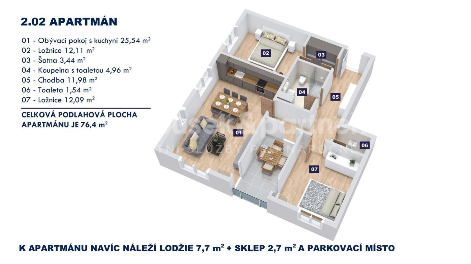 Kompletní nabídku apartmánů naleznete na našich webových stránkách hanousekapartneri Nazout lyžáky, natáhnout palčáky, nadechnout se čerstvého horského vzduchu a za 6 minut už se vézt lanovkou ze Špindlerova Mlýna vstříc parádním zážitkům. Přesně takhle můžou vypadat vaše víkendy, dovolené a prázdniny když si pořídíte vlastní horský apartmán v nově postaveném resortu Mlýn Herlíkovice přímo na spojnici Vrchlabí a Špindlerova Mlýna. Nabízím vám apartmán s dispozicí 3+kk o velikosti 76,4 m2. V apartmánu je obývací pokoj s kuchyňským koutem, 2 ložnice, koupelna se sprchou a toaletou. Nachází se ve 2. patře a patří k němu lodžie s výměrou 7,7 m2, sklepní kóje i parkovací místo před budovou. Apartmán se prodává kompletně vybavený a všechno je tu zbrusu nové. Nemusíte si tak dělat starosti se zařizováním interiéru stačí sbalit kufr, naložit lyže, běžky nebo kolo a vyrazit za zábavou. Pořádnou snídani i něco na zub k večerní skleničce si nachystáte u moderní kuchyňské linky, s knížkou si posedíte na gauči v obývací části a dorůžova se vyspíte v pohodlné posteli. Radši byste se zařídili podle sebe? Podívejte se na byty 1+kk a 4+kk, které se prodávají nevybavené. Po náročném dni na sjezdovce nebo horské túře vám nic nebodne víc, než odpočinek ve vyhřáté sauně nebo vířivce. V resortu je wellness centrum s relax zónou, které si můžete zarezervovat kdykoli budete chtít. Klidně jen sami pro sebe. V letní sezóně vypustíte děti na hřiště, opečete špekáček na venkovním ohništi nebo se osvěžíte v řece, která teče přímo za domem. A pokud zatoužíte po společnosti, je tu společenská místnost jako stvořená pro herní večery. Moderní novostavba se vším všudy Luxusní, designová a energeticky úsporná. Přesně taková je novostavba resortu Mlýn Herlíkovice, kde už čeká 30 nových horských apartmánů na svou první dovolenkovou sezónu. Stavba byla dokončena v roce 2023, vše je jako ze škatulky a vy budete prvním majitelem. Společné prostory i jednotlivé apartmány jsou zařízeny ve vysokém standardu a pro vaše maximální pohodlí odsud se vám nebudete chtít nikdy odjet. Zábava pro celou rodinu od jara do zimy Milujete čerstvý horský vzduch a nejlépe si odpočinete uprostřed ryzí přírody? Pak jsou pro vás Herlíkovice tím pravým místem. Stačí naložit kolo, lyže, běžky a vyrazit za zábavou. V létě budete obdivovat rozkvetlé louky a výhledy z hřebenů, v zimě prozkoumáte zasněžené hory na běžkách nebo skialpech. Na nejbližší sjezdovku budete mít 2 minuty a za 6 minut už můžete mířit k vrcholům lanovkou ze Špindlerova Mlýna. Soukromé wellness a zahrada pro relax Kde si nejlépe odpočinout po náročné túře nebo dni na svahu? Přece ve vyhřáté sauně nebo vířivce. Resort má vlastní wellness centrum. Po sauně nebo v parném létě se osvěžíte v řece, která teče jen pár metrů od domu. Děti vypustíte na hřiště a večer si zpříjemníte u otevřeného ohně. Tomuhle resortu zkrátka nechybí k dokonalosti vůbec nic a každou dovolenou si tu užijete naplno.