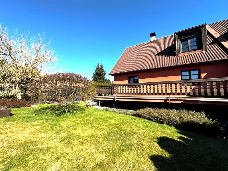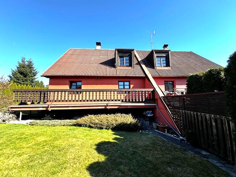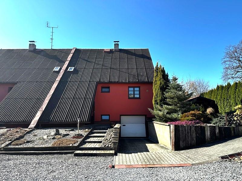 Exkluzívně nabízíme k prodeji dvoupodlažní zděný rodinný dům 4+1 s garáži, který se nachází v klidné části obce Jeseník nad Odrou. Jedná se o jednu část dvojdomu s vlastním číslem popisným a s vlastním pozemkem o celkové výměře 585 m2. Rodinný dům o zastavěné ploše 90 m2 je celopodsklepený, vystavěný z pěnosilikátových tvárnic zateplený polystyrénem s novou fasádou. Okna jsou dřevěná. Střecha je sedlová, pokrytá bitumenovými vlnitými deskami. Stáři domu je cca 35 let. Dům je udržovaný a je ve velmi dobrém technickém stavu. Dispozice domu: 1.NP: vstupní hala, chodba, schodiště, prostorný obývací pokoj s jídelnou a s výstupem na terasu a zahradu, kuchyně, koupelna se sprchovým koutem a toaletou, komora. 2.NP: 3 pokoje, koupelna s vanou, samostatné WC. 1.PP: prádelna, technická místnost, skladovací prostory, garáž, výstup na zahradu. Dům je napojený na elektřinu, plyn, obecní vodovod, kanalizaci. Vytápění domu je řešeno plynovým kotlem napojeným na ÚT. Ohřev TUV je řešen plynovým zásobníkovým ohřívačem. Okolo domu je oplocená zahrada se zastřešeným posezením, ve kterém je zavedená elektřina. Zahrada je prosluněná, rovinatá, osazená okrasnými dřevinami, které zajišťují klid a soukromí. Příjezd k domu je z obecní asfaltové komunikace. Parkování je možné v garáži nebo před domem. V obci Jeseník nad Odrou je základní a mateřská škola, prodejna s potravinami, knihovna, praktický a zubní lékař. Energetická třída G je uvedena dočasně, vzhledem k novele zákona č.406/2000Sb. o hospodaření s energií. Po dodání energetického štítku bude uvedena skutečná energetická třída této nemovitosti. Lze financovat hypotékou, kterou pro Vás rádi a rychle zařídíme.