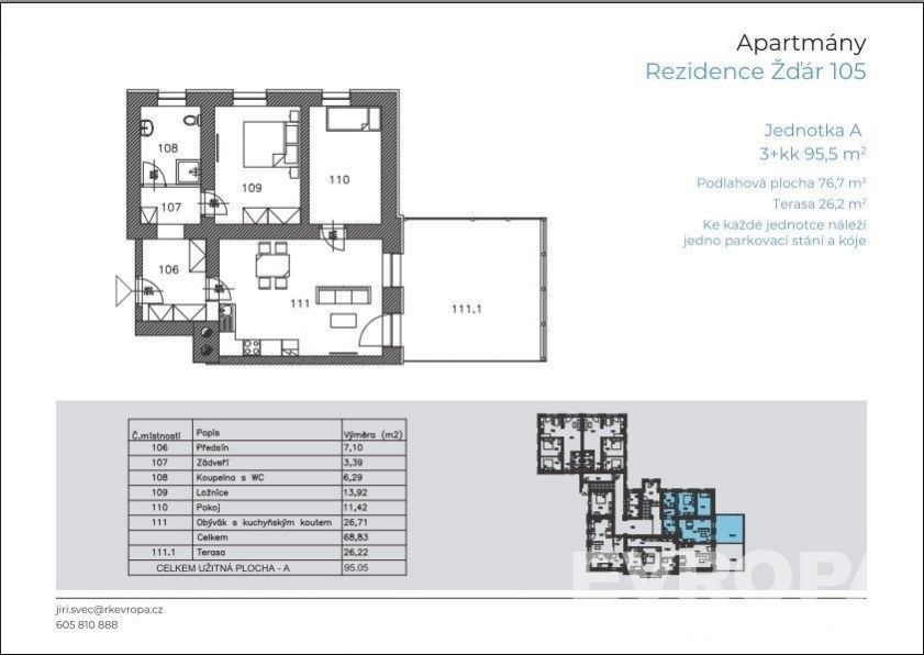 Život v srdci Jizerských hor REZIDENCE ŽĎÁR právě v předprodeji, Albrechtice v jizerských horách V klidném údolí obklopeném lesy a zelenými loukami, 2 minut od Tanvaldského Špičáku, vzniká nový projekt REZIDENCE ŽĎÁR. Místo, kde každé ráno začíná výhledem do přírody, čistým horským vzduchem a pocitem, že jste přesně tam, kde chcete být. Nová rezidence nabízí 16 moderních apartmánů s výbornou dostupností například z Prahy za 80 minut zasazených do malebné přírody Jizerských hor. Jsou ideální pro celoroční pobyt i víkendový únik z města, kde si děti mohou bez starotí hrát venku a vy dýcháte čistý vzduch. V okolí vás čekají kilometry cyklostezek, trailových tras, běžkařské stopy doslova za rohem a sjezdovky Tanvaldského Špičáku vzdálené jen 3 minuty autem. Harrachov a Rokytnice nad Jizerou do 30 minut. Skiareály Bedřichov, Severák, Paseky snadno dostupné. Ať už hledáte místo pro aktivní život, rodinné zázemí nebo investici, Žďár 105 vás nadchne. Byt na investiřní pronájem lze kompletně předat mistnímu facility managementu. Zavolejte společně vybereme v předprodeji ten pravý apartmán pro vás. Jedním z nejatraktivnějších bytů je Jednotka "A" 3+kk 95m s velkorysou terasou 26,22 m orientovanou do zahrady. Vzdušný obývací prostor s kuchyní navazuje na venkovní část, dvě neprůchozí ložnice a koupelna se zádveřím vytvářejí pohodlí pro rodinu, pár i náročnější klienty. Byt je umístěn v přízemí, má vlastní parkovací stání i sklepní kóji. Ve standardu jsou italská velkoformátová dlažba, dřevěné podlahy, sanita Laufen, bezpečnostní vchodové dveře. Dům je vybaven moderními technologiemi vytápění i ohřev vody zajišťuje tepelné čerpadlo vzduch/voda StiebelEltron, spotřeba je měřena kalorimetry pro každý byt. Nechybí sauna s odpočívárnou, společenská místnost, lyžárna, kolárna na zahradě a připraveno je i místo pro venkovní bazén (rozhodnutí SVJ). Parkování je standardem včetně přípravy na elektromobil. A když počasí nepřeje? V okolí máte aquapark v Jablonci, liberecký Babylon, restaurace, kavárny i galerie. Liberec i Jablonec jsou v dojezdové vzdálenosti 1530 minut. Golfová hřiště Ypsilonka i Liberec také do 30 minut. Nový horský projet, byt, apartmán 3kk 95 m2, z toho terasa 26,2m2, vlastní parkovací stání, sklepní koje, wellnes, velká zahrada, lyžárna, vlek i běžecké stopy, cyklostesky i turistické trasy. REZIDENCE ŽĎÁR horský domov, který vám dá víc než jen prostor. Dá vám nový životní rytmus.
