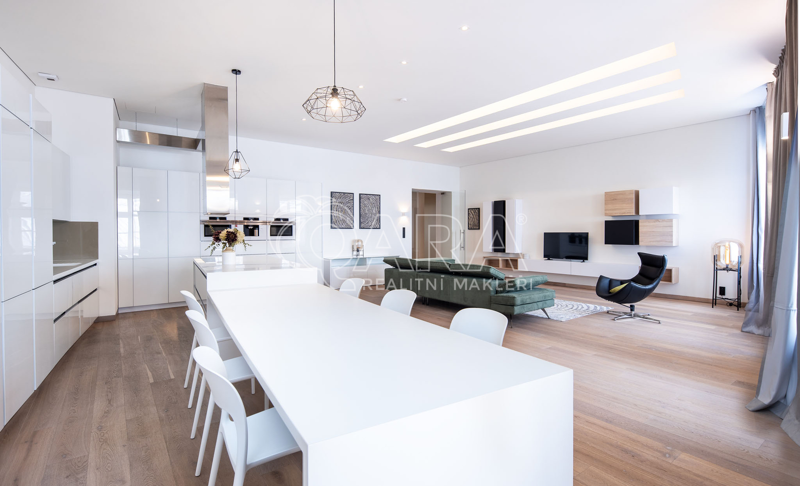 Pronájem designového, špičkově vybaveného luxusního bytu, 3kk, 186m2 v 1. patře nákladně rekonstruované residence. Lokalita v srdci metropole je perfektně dostupná MHD, autem i na kole a nabízí překvapivě klidné a příjemné městské bydlení se všemi službami v bezprostřední blízkosti. Bytu dominuje otevřený prostor obývacího pokoje s kuchyní, dvě prostorné ložnice, jedna ložnice s vlastní koupelnou s vanou a sprchovým koutem, druhá koupelna opět s vanou a sprchovým koutem. Byt je pronajímán s nadstandardním vybavením. Plně vybavená kuchyňská linka (indukční varná deska, el. trouba, lednice, mrazák, myčka, mikrovlnná trouba), jídelní stůl s židlemi, stylová sedací souprava, TV, pohodlný sedací nábytek, v ložnici luxusní manželská postel, druhá ložnice bez nábytku. Koupelna je vybavena produkty značky Preciosa, vyhřívanou podlahou. V bytě jsou dřevěné podlahy, velké množství úložného prostoru, vysoké stropy zajišťující dostatek světla. Sálavá vytápění a chlazení je umístěné ve stropech. Inteligentní systém ovládání domácnosti, systém nucené výměny vzduchu. K dispozici wifi. O vzhled interiéru se s důrazem na funkčnost a design postaralo vyhlášené architektonické studio de.fakto. Parkování je možné zajistit v OC Palladium. Nábytek na fotografiích se může mírně lišit - zejména sedací souprava a vybavení ložnice. Skvělé bydlení v centru metropole a zároveň velmi klidná a tichá lokalita s výbornou dopravní dostupností, s plnou občanskou vybaveností. V bezprostřední blízkosti supermarket, obchody, restaurace a kavárny, divadla, blízkost řeky Vltavy. Dostupnost: Tram/Metro Náměstí Republiky (3 min) Poplatky: 14.500 Kč měsíčně (připojení k internetu prostřednictvím vysokorychlostní optické sítě, aplikace pro chytré domácnosti Loxone, vodné, stočné, el. energie, TUV, topení, chlazení, úklid společných prostor domu, jejich osvětlení, odvoz komunálního odpadu) K dispozici ihned. Energetická náročnost budovy: C - Úsporná