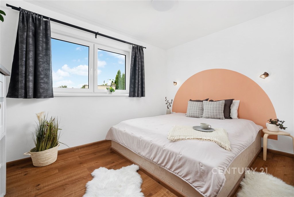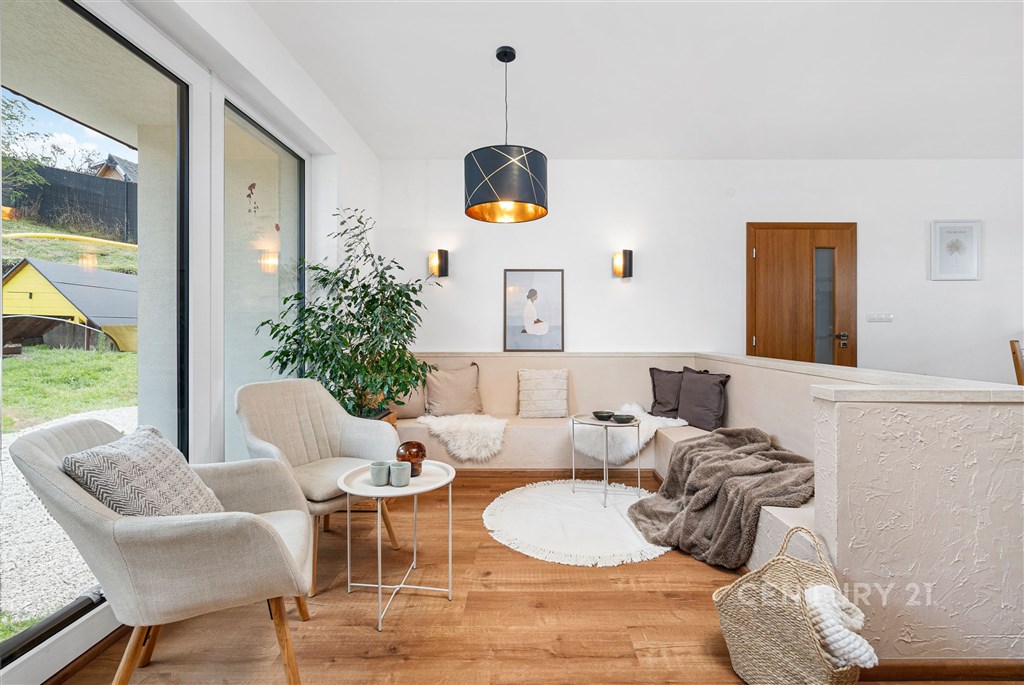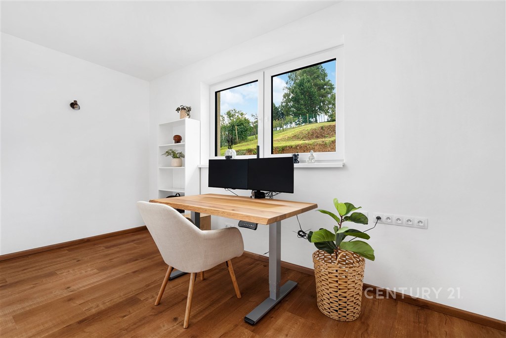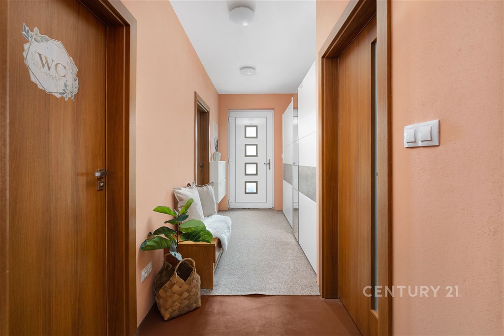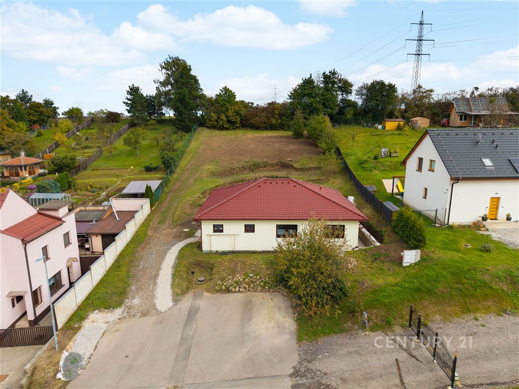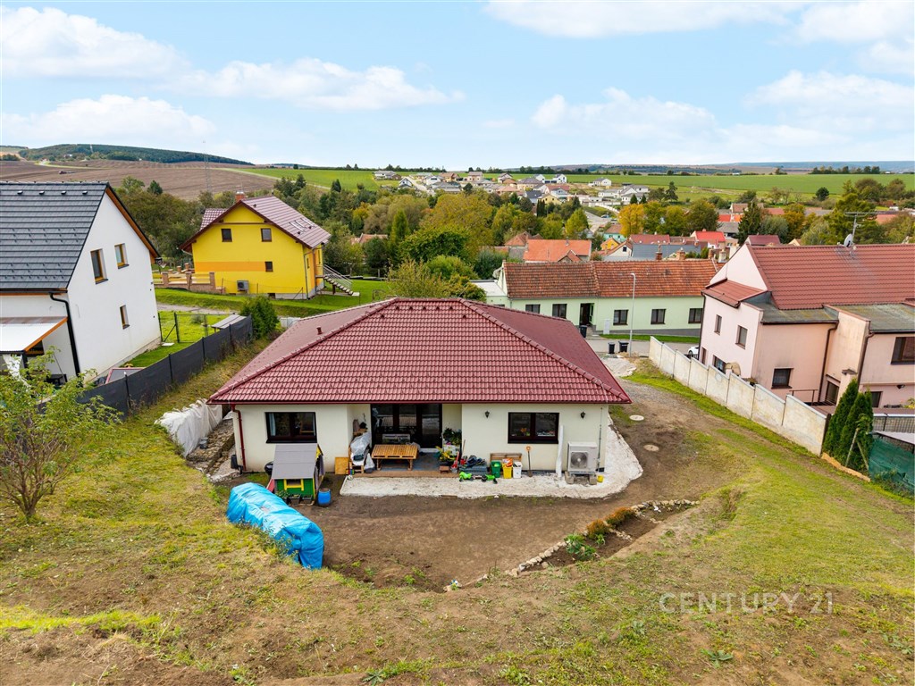 V zastoupení majitele nabízíme k prodeji novostavbu zděného přízemního rodinného domu o velikosti 5kk se zahradou. Kolaudace domu byla provedena v roce 2023, součástí prodeje je vypracovaná architektonická studie zahrady, která čeká na realizaci, včetně zbudování terasy a okolí domu. Dispozice bydlení je důmyslně promyšlená tak, aby členové rodiny měli dostatečné soukromí a pohodlí. K dispozici jsou dvě koupelny s toaletou, technická místnost a šatna. Okolí domu není dokončené, za domem jsou započaty terénní úpravy, rozšířený prostor na zbudování terasy a kaskádovité záhony, na které navazuje rovinatý terén. Dům je vytápěný tepelným čerpadlem s ohřevem TUV (vzduch, voda) podlahovým vytápěním, Součástí systému je také zásobník na vodu o objemu cca 230 l. Do domu je zavedena obecní voda a odpady jsou svedeny do jímky. Zbudování obecní kanalizace je plánováno v roce 2028. Podlahy v provedení: vinyl, betonová stěrka, dlažba. Podlahové plochy: zádveří 8,38m2 toaleta 4,61m2 technická místnost 4,3m2 ložnice 12m2 pracovna 10,11m2 obývací pokoj 30,48m2 kuchyňský kout 12,34 pokoj 12,25m2 koupelna 5,62m2 chodba 3,43m2 pokoj 13,69m2 šatna 7,36m2 Obec Medlovice je velmi přátelská ke svým občanům. V poslední době proběhla rekonstrukce komunikací, přeložení elektřiny do země, plánuje se zbudování obecní kanalizace. V obci funguje MŠ, hasičské a myslivecké sdružení pořádající veřejné akce, obecní sad, který využívají místní ke sklizni jablek a švestek, zahradnictví, dětské a fotbalové hřiště, v kulturním domě je možnost lekcí jumpingu a kruhového tréninku. Dopravu do okolních obcí zajišťují pravidelné autobusové linky do Vyškova (10 minut), Kroměříže, Ivanovic na Hané. Blízký sjezd na dálnici D1 (3 min) vám umožní rychlou dopravu také do Brna (40 minut), Olomouce (30 minut), nebo Kroměříže (16 minut). Pokud vás nabídka zaujala a hledáte rodinný dům k nastěhování s možností využití zahrady dle svých představ, neváhejte se na mě obrátit. Budu se na vás těšit.