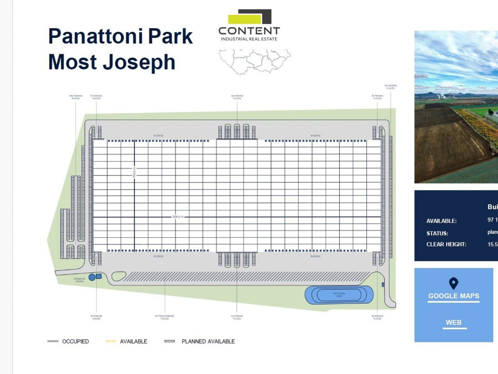 Pronájem skladu, výrobních prostor 48500 m Most. V zastoupení majitele a bez provize nabízíme atraktivní novostavbu skladu nebo výrobních prostor v nově vznikajícím logistickém parku. - budova k dodání do 12 měsíců, - samostatné prostory až 97186 m v jedné budově, - lze dělit na menší jednotky, informujte se - světlá výška až 15,5 m, - bezprašné podlahy s nosností minimálně 5 t/m, - vstupy z hydraulických ramp i v úrovni vozovky, - sprinklery, EZS, EPS, - příjezd a manipulace TIR bezproblémová, parkování zdarma, - kancelářské prostory, vzorkovna na míru budoucího nájemce, - možnost výstavby celé budovy na míru, přesně dle požadavku zájemce (BTS) Cena bude stanovena dle dalších požadavků individuálně. Fotografie hotových budov jsou ilustrační, z již proběhlé výstavby. Pro více informací nás kontaktujte.
