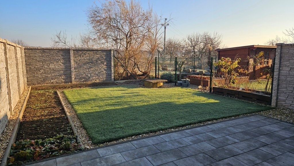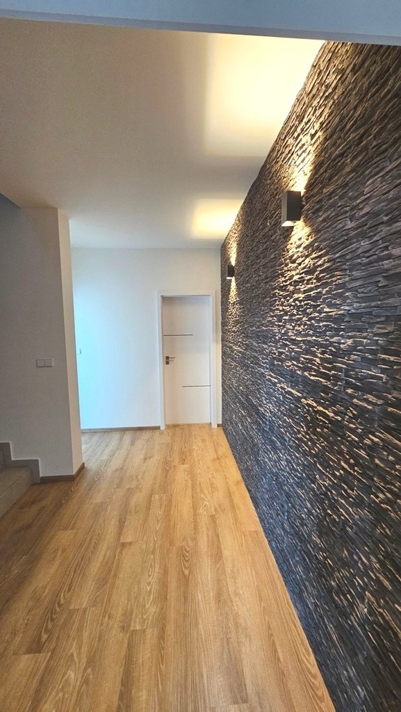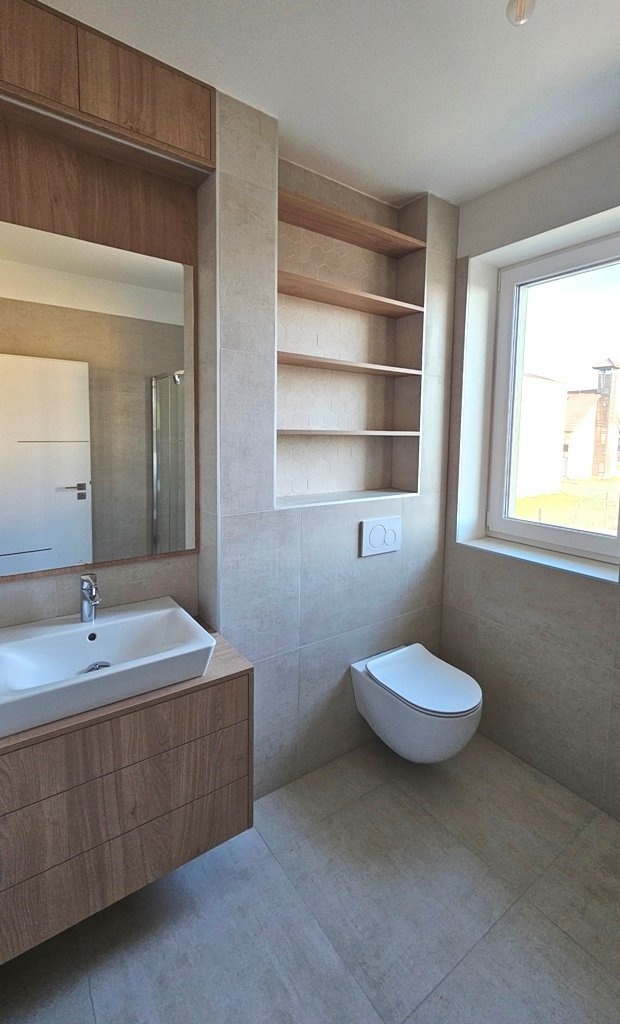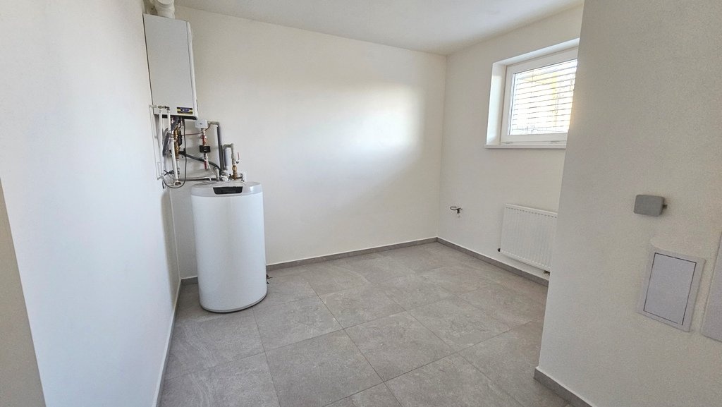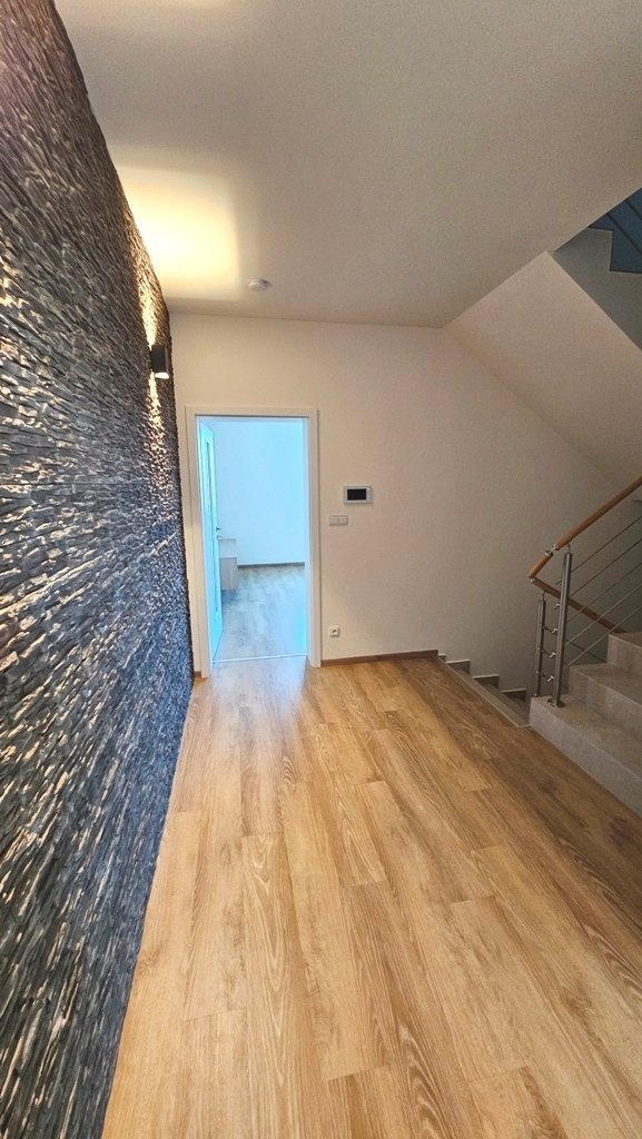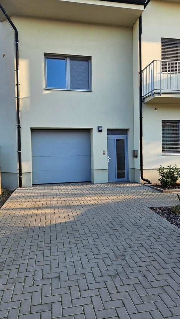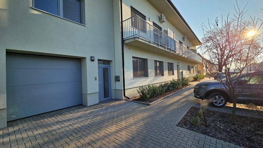 Prodej bytu 4+kk + technická místnost, s garáží a zahradou, na velmi pěkném, klidném místě obce Přísnotice, okres Brno - venkov. Nabízený byt je stavebně řešený jako rodinný dům, přiléhající k sousednímu bytovému domu, v katastru nemovitostí je však vedená jako bytová jednotka. Jako samostatná nebytová jednotka je pak vedená i garáž. Obě jednotky jsou po právní stránce součástí přiléhajícího bytového domu, ve kterém se nachází celkem 7 bytových jednotek o velikostech 3+kk až 4+kk. K zahradě za domem má vlastník nabízeného bytu výlučné právo užívání. Nemovitost se nachází poblíž obecní návsi, s výhledem do okolní krajiny, na les a kopec Výhon. Obec Přísnotice je z centra Brna vzdálená přibližně 25 km, zhruba 30 minut jízdy autem, 40 minut jízdy IDS (autobusy + vlaky). Vlaková stanice je v sousední obci Žabčice, vzdálená 2 km od bytového domu. Do dalšího okresního města - Břeclavi - je dostupnost podobná, jen o zhruba 10 minut delší. V obci Přísnotice je evidováno přibližně 900 obyvatel, v obci se nachází mateřská i základní škola, knihovna, kulturní dům, kostel, dětské hřiště, atletický oddíl pro děti a mládež a další sdružení a organizace. Nemovitost byla kolaudovaná v roce 2023, krátce obývaná, vše je ve vynikajícím, zánovním stavu. Ostatní jednotky v přiléhajícím bytovém domě jsou už trvale obydlené. Vše je připravené k okamžitému nastěhování. Celková užitná plocha bytu je 130 m2, garáže 21m2. Celková plocha pozemku je 157 m2, z tohoto zastavěná plocha domu 73 m2 (6 x 12,22 m), zahrada 84 m2 (7,11 x 11,8 m). Dispozice domu: 1.NP (51,8 m2): garáž, 20,6 m2, vstupní chodba 14 m2 technická místnost (kotelna, prádelna, sušárna) 11,3 m2, samostatné WC, schodiště. 2.NP (45,7 m2): schodišťový prostor s chodbou 8 m2,obývací pokoj s kuchyňským koutem 23,2 m2, pokoj 9,6 m2, koupelna se sprchovým koutem a WC 4,9 m2. 3.NP (53,6 m2): schodišťový prostor s chodbou 15,6 m2, pokoj 23,2 m2, pokoj 9,3 (s připravenými vývody IS pro kuchyňskou linku), koupelna s vanou a WC 5,5 m2. 4:.NP: půdní prostor, prozatím jako úložný (není pochůzný) Byt je vybavený kuchyňskou linkou, zhotovenou na zakázku, obsahuje veškeré kuchyňské spotřebiče - indukční varnou desku, digestoř, el. troubu, mikrovlnnou troubu, myčku, lednici s mrazákem - vše je necelé 2 roky nové. Ostatní vybavení pokojů, zobrazené na fotografiích, je pouze vizualizace případného zařízení. Měsíční náklady na bydlení, včetně fondu oprav, činí přibližně 5.100,-Kč. Technické údaje/vybavení nemovitosti: Budova je napojena na veškeré inženýrské sítě, k využití pro tento byt je také vlastní studna, ze které je alternativně možné čerpat vodu v celém bytě nebo ponechat připojení na obecní vodovodní řad. Vytápění je zajištěné vlastním, plynovým, kondenzačním kotlem zn. Baxi Duo-Tec s průtokovým ohřevem vody se zásobníkem na 160l. V obytných pokojích , orientovaných na jihozápad - obývacím pokoji s kuchyňským koutem a v místnosti o patro výš - jsou připravené vývody na instalaci klimatizace. Nemovitost je postavená z keramických tvárnic POROTHERM 30 PROFI DRXFIX, zateplena v tloušťce 200 mm. Okna se sedmikomorový profil s termoizolačním trojsklem, střešní okna VELUX s termoizolačním trojsklem. Předokenní žaluzie s elektrickým ovládáním Garážová vrata jsou elektricky ovládaná. Podlahy: dlažba keramická, lepený vinyl zn. VEPO, sanitární keramika Concept. Interiérové dveře s obložkovými zárubněmi. Nemovitost je připravená k okamžitému nastěhování.