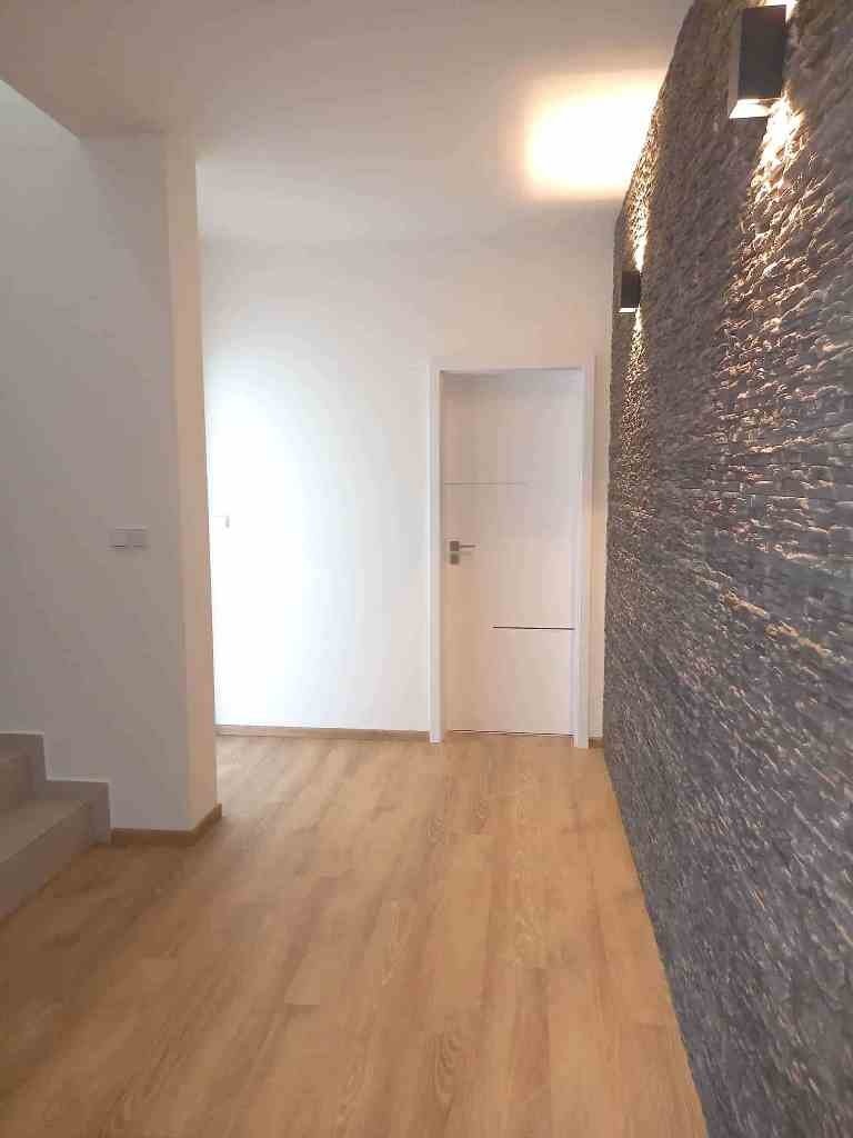 Prodej stavby RD 4+kk + technická místnost, s garáží a zahradou, na velmi pěkném, klidném místě obce Přísnotice, okres Brno - venkov. Nabízená nemovitost je stavebně řešena jako samostatný rodinný dům, přiléhající k sousednímu bytovému domu, v katastru nemovitostí je však vedená jako bytová jednotka. Jako samostatná nebytová jednotka je pak vedená i garáž. Obě jednotky jsou po právní stránce součástí přiléhajícího bytového domu, ve kterém se nachází celkem 7 bytových jednotek o velikostech 3+kk až 4+kk. K zahradě za domem má vlastník nabízeného domu výlučné právo užívání. Nemovitost se nachází poblíž obecní návsi, s výhledem do okolní krajiny, na les a kopec Výhon. Obec Přísnotice je z centra Brna vzdálená přibližně 25 km, zhruba 30 minut jízdy autem, 40 minut jízdy IDS (autobusy + vlaky). Vlaková stanice je v sousední obci Žabčice, vzdálená 2 km od bytového domu. Do dalšího okresního města - Břeclavi - je dostupnost podobná, jen o zhruba 10 minut delší. V obci Přísnotice je evidováno přibližně 900 obyvatel, v obci se nachází mateřská i základní škola, knihovna, kulturní dům, kostel, dětské hřiště, atletický oddíl pro děti a mládež a další sdružení a organizace. Nemovitost byla kolaudovaná v roce 2023, krátce obývaná, vše je ve vynikajícím, zánovním stavu. Ostatní jednotky v přiléhajícím bytovém domě jsou už trvale obydlené. Vše je připravené k okamžitému nastěhování. Celková plocha pozemku je 157 m2, z tohoto zastavěná plocha domu 73 m2 (6 x 12,22 m), zahrada 84 m2 (7,11 x 11,8 m). Celková užitná plocha domu je 151 m2, včetně garáže. Dispozice domu: 1.NP (51,8 m2): garáž, 20,6 m2, vstupní chodba 14 m2 technická místnost (kotelna, prádelna, sušárna) 11,3 m2, samostatné WC, schodiště. 2.NP (45,7 m2): schodišťový prostor s chodbou 8 m2,obývací pokoj s kuchyňským koutem 23,2 m2, pokoj 9,6 m2, koupelna se sprchovým koutem a WC 4,9 m2. 3.NP (53,6 m2): schodišťový prostor s chodbou 15,6 m2, pokoj 23,2 m2, pokoj 9,3 (s připravenými vývody IS pro kuchyňskou linku), koupelna s vanou a WC 5,5 m2. 4:.NP: půdní prostor, prozatím jako úložný (není pochůzný) Nemovitost je vybavená kuchyňskou linkou, zhotovenou na zakázku, obsahuje veškeré kuchyňské spotřebiče - indukční varnou desku, digestoř, el. troubu, mikrovlnnou troubu, myčku, lednici s mrazákem - vše je necelé 2 roky nové. Oststní vybavení obytných pokojů na fotografiích jsou pouze vizualizace možného budoucího vzhledu. Technické údaje/vybavení nemovitosti: Budova je napojena na veškeré inženýrské sítě, k využití je také vlastní studna, ze které je alternativně možné čerpat vodu v celém domě nebo ponechat připojení na obecní vodovodní řad. Vytápění nemovitosti je zajištěné vlastním, plynovým, kondenzačním kotlem zn. Baxi Duo-Tec s průtokovým ohřevem vody se zásobníkem na 160l. V obytných pokojích, orientovaných na jihozápad - obývacím pokoji s kuchyňským koutem a v místnosti o patro výš - jsou připravené vývody na instalaci klimatizace. Nemovitost je postavená z keramických tvárnic POROTHERM 30 PROFI DRXFIX, zateplena v tloušťce 200 mm. Okna se sedmikomorový profil s termoizolačním trojsklem, střešní okna VELUX s termoizolačním trojsklem. Předokenní žaluzie s elektrickým ovládáním Garážová vrata jsou elektricky ovládaná. Podlahy: dlažba keramická, lepený vinyl zn. VEPO, sanitární keramika Concept. Interiérové dveře s obložkovými zárubněmi. Nemovitost je připravená k okamžitému nastěhování.