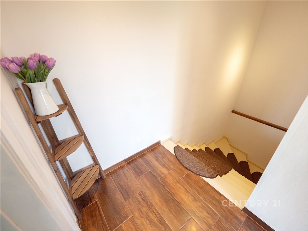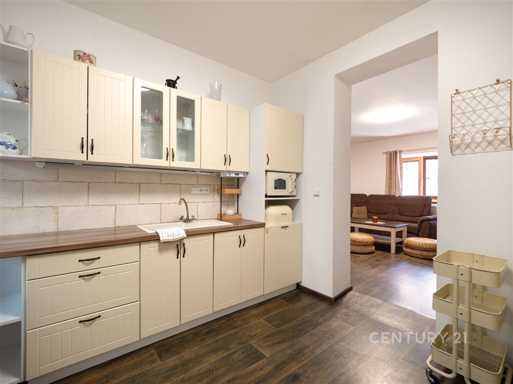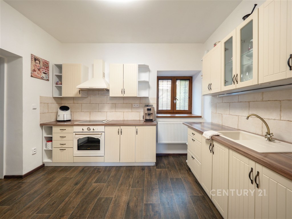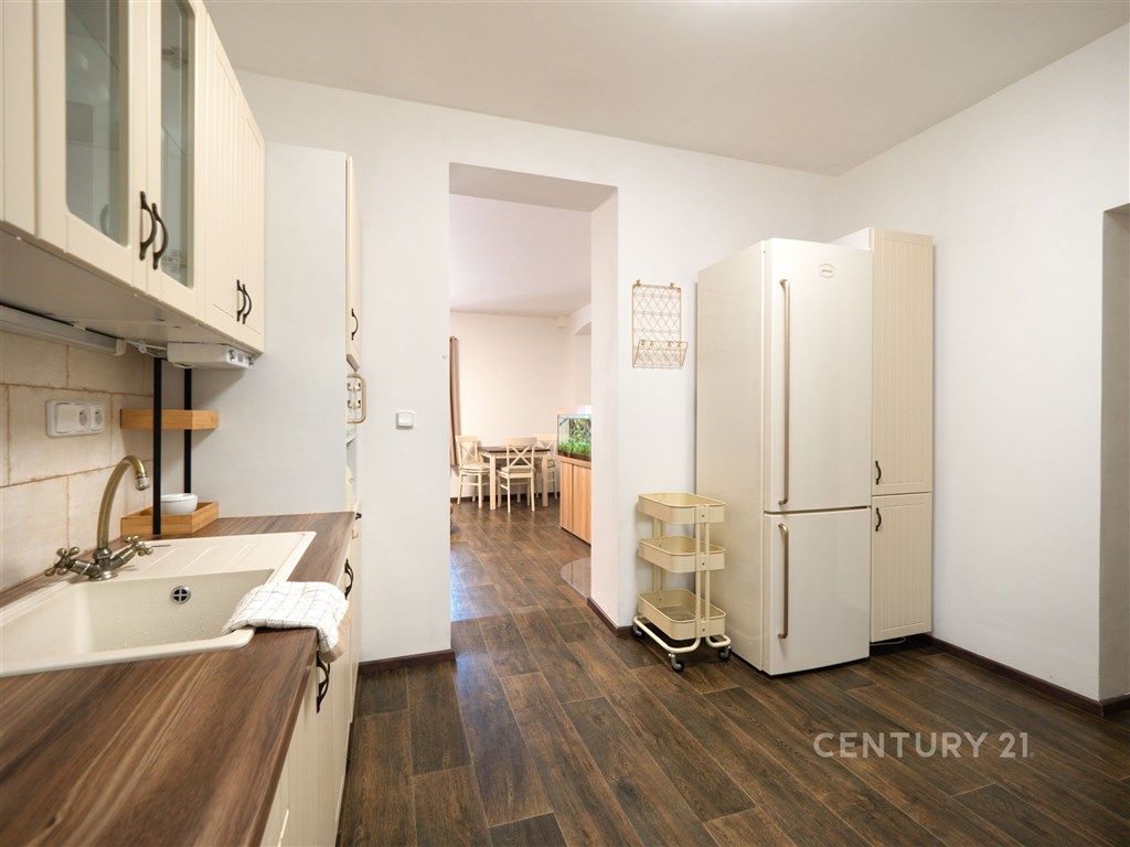 Samostatná bytová jednotka v centru Odolena Vody - ideální pro bydlení i podnikání. Nabízím k prodeji samostatnou bytovou jednotku (zcela nezávislou polovinu rodinného domu) s bohatou historií sahající až do roku 1867, nacházející se přímo na náměstí v Odoleně Vodě. Nemovitost kombinuje historické kouzlo s vysokým investičním potenciálem díky své lukrativní poloze a připravované revitalizaci náměstí. Základní údaje: Obytná plocha: 170 m2 Zastavěná plocha: 233 m2 Volný pozemek: 295 m2 Dílna: 74 m2 Sklep: podsklepeno Popis nemovitosti: Dům prošel rekonstrukcí a je připojen na elektřinu, plyn, vodu, studnu a má vlastní jímku, s připravenou přípojkou na kanalizaci. Disponuje samostatným elektroměrem, plynoměrem i vodoměrem. Okna jsou plastová s oboustranným dekorem, vytápění a ohřev vody zajišťuje plynový kotel. Součástí pozemku je vydlážděná plocha vhodná pro parkování, přístupná přes elektrická vjezdová vrata. Dispozice: Přízemí: prostorná předsíň, kuchyně, pokoj, obývací pokoj, ložnice, koupelna s WC, chodba se schodištěm. Je možné rozšířit o další pokoj nebo ložnici po stavební úpravě. 1. patro: chodba, dvě prostorné ložnice, samostatné WC Podkroví: možnost rozšíření o další obytné prostory Další prostory: výminek, dvě dílny, rozsáhlý sklep Využití: Dům se nachází v zóně SO 1, která umožňuje nejen bydlení, ale i komerční využití. Volný pozemek o rozloze 295 m2 nabízí široké možnosti dalšího rozvoje. Lokalita: Výborná dostupnost - zastávka MHD s přímým spojením do Prahy či Kralup nad Vltavou je v těsné blízkosti. V docházkové vzdálenosti naleznete obchody, školu, školku, lékaře, městský úřad, sportovní zařízení i restaurace. Odolena Voda nabízí kompletní občanskou vybavenost, bohatý kulturní život a množství aktivit pro děti i dospělé. Praha-Kobylisy je dostupná do cca 15 minut autem. Výhled: z domu je krásný panoramatický výhled na České středohoří, který ještě více podtrhuje potenciál této výjimečné nabídky k bydlení či komerci. Součástí fotografií je i vizualizace, jak by objekt mohl vypadat po rekonstrukci pro komerční využití.