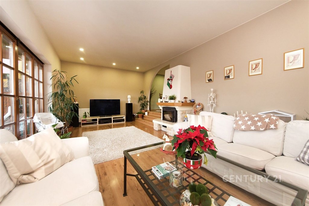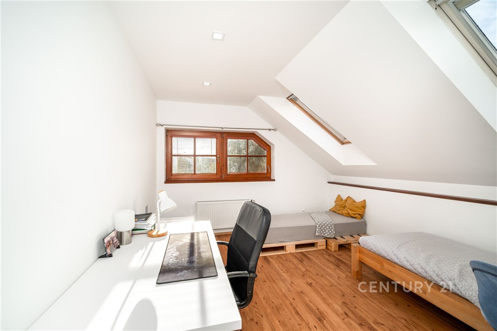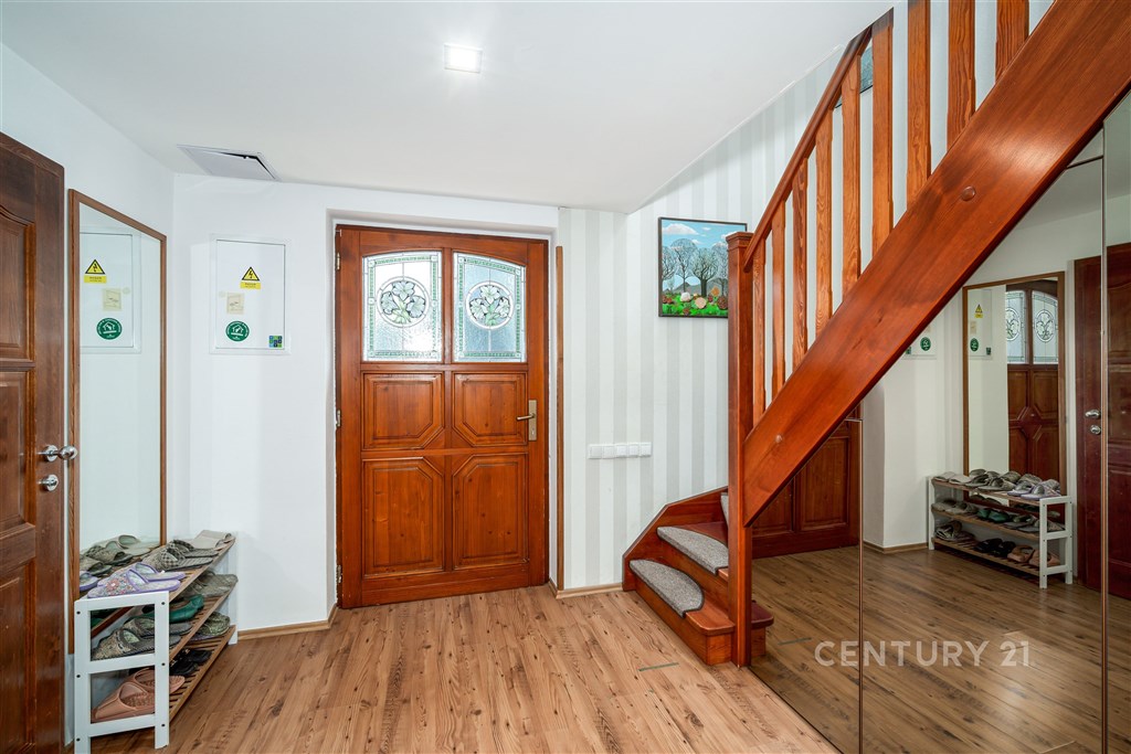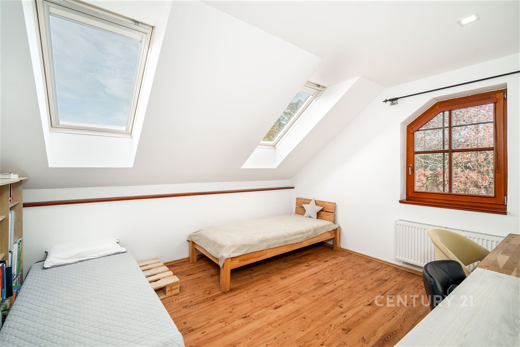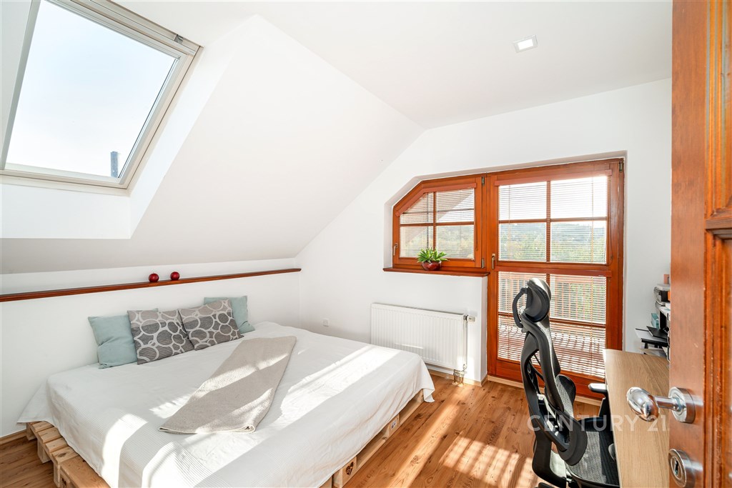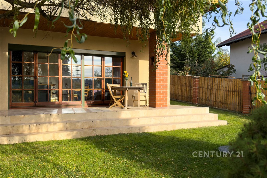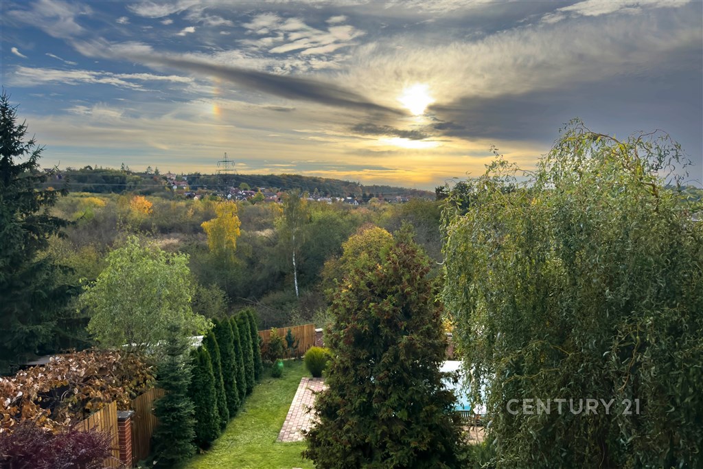 Prodej krásného rodinného domu ve Statenicích, s nádherným výhledem do údolí. V přízemí domu je zádveří s vestavěnou skříní, kompletně vybavená kuchyň a jídelna s jídelním stolem, která je propojená přes tři schody s obývacím pokojem s krbem. Odsud je vstup francouzskými dveřmi na zastřešenou terasu a dále do zahrady. Je zde i koupelna se sprchovým koutem a WC. V prvním patře jsou tři ložnice, šatna, velká koupelna s vanou a dvěma umývadly. K jedné ložnici přisedá balkón. Dům je celý podsklepený, ve sklepě je kompletní technické zázemí a dostatek úložného prostoru. Další úložný prostor nabízí půda přístupná z 2. NP, vestavěná skříň v ložnici, prostorná šatna mezi dvěma dalšími pokoji. V 2. NP je klimatizace pro zajištění komfortu i v letních měsících. Na zahradě je vyhřívaný bazén se slanou vodou, je velmi pěkně udržovaná. Vytápění je řešené elektrickým kotlem, zároveň je možné topit krbem v obývacím pokoji, ze kterého je teplo rozvedené do radiátorů v celém domě. Vytápění je tedy velmi úsporné a po instalaci solárních panelů a baterie může být dům kompletně soběstačný. Voda je z vlastní studny vedená přes čistící stanici, je v nejvyšší kvalitě. Odpad je nyní svedený do septiku, který je možné vyměnit za moderní biologický bez nutnosti vývozu. Součástí prodeje může být i vybrané zařízení pračka a sušička Miele, jídelní stůl a židle, posezení na terase. Tichá slepá ulice zaručuje klid, přitom veškerá občanská vybavenost je na dosah. Nedaleko je International School of Prague, pro menší děti KinderGarden. Na letiště se dostanete do 10 minut, na metro A Bořislavka taktéž. Autobusem cesta na metro trvá 13 minut. Orientační náklady na provoz jsou nyní 9 000 Kč/měsíc. Prodejní cena je konečná, zahrnuje provizi RK a právní servis.