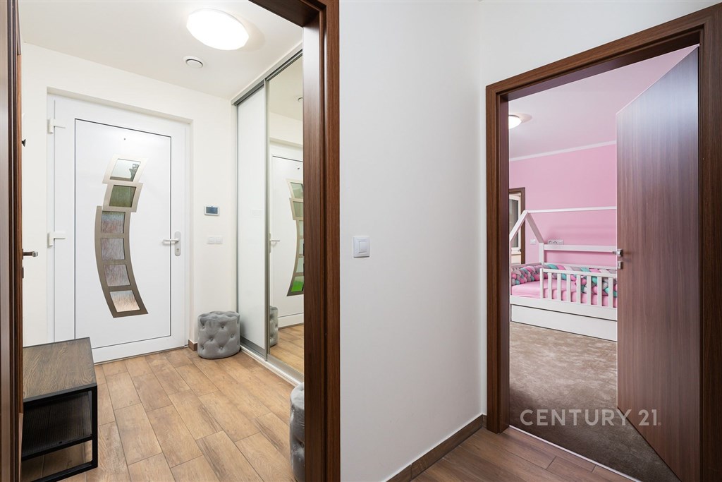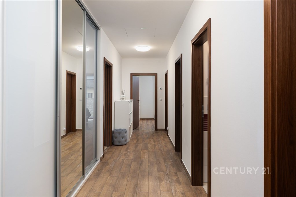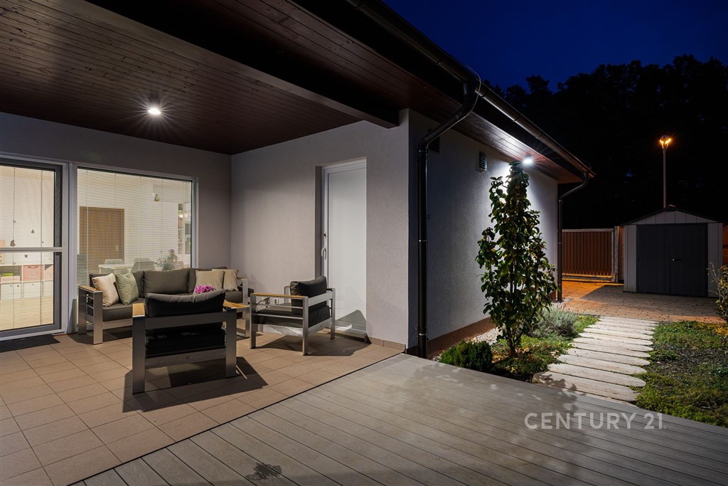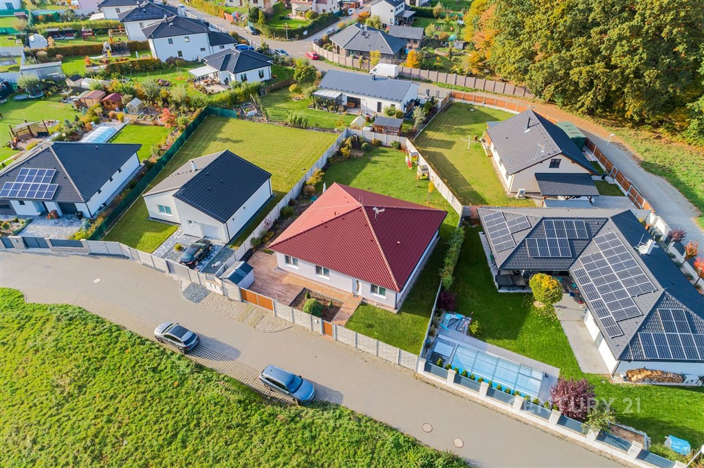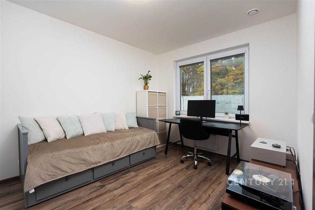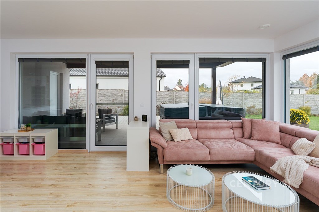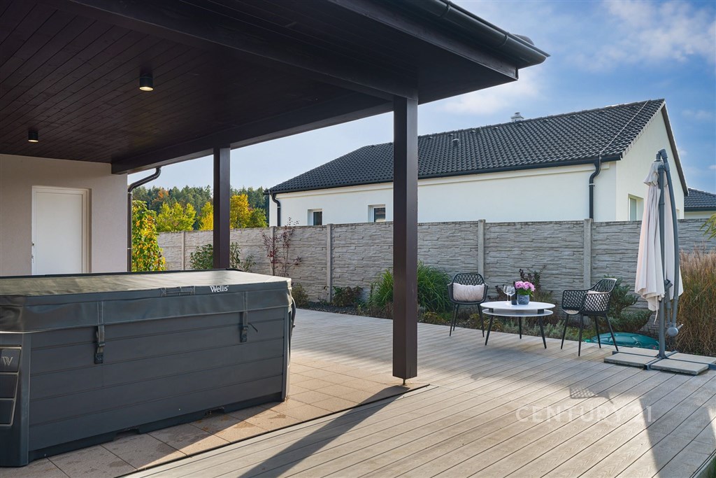 Na klidném místě obklopeném přírodou stojí dům, který vznikl bez kompromisů. Postavený v roce 2018 renomovanou firmou HP Domy jako dřevostavba, která krásně drží teplo a působí stále jako nový. Nabízí 136 m2 obytné plochy, promyšlenou dispozici 5+kk a pozemek 786 m2. Uvnitř domu vás přivítá světlý a vzdušný interiér, kde má všechno své místo. Každý z pokojů má vestavěnou skříň, v obývací části nechybí vestavná stěna a důmyslně řešený úložný prostor. O komfort se stará řízené větrání s rekuperací, podlahové vytápění a zabezpečovací systém. Kuchyň byla vyrobena na míru studiem Sykora, vybavena spotřebiči v kombinaci Miele a Electrolux, která je dokonale sladěna s obývacím prostorem. Na terasu se vychází přímo z obýváku i ložnice - část je zastřešená a je v kombinaci dřevoplast a dlažba, ideální pro posezení za každého počasí. A navíc: celoroční vířivka Wellis pro 6 osob luxusní místo pro relaxaci po náročném dni. Dům má prostornou koupelnu, samostatné WC, technickou místnost, dvě parkovací stání před domem a jedno na pozemku, prostorný sklad na cokoliv i zahradní domek na zahradní nářadí. Zahrada je soukromá, udržovaná, rovinná s prostorem i na bazén. Vyžlovka je místo, kde se žije v rytmu přírody. Les začíná hned za domem, na dosah jsou Voděradské bučiny, cyklostezky, ráj pro běžkaře, i vyhlášené Vyžlovské koupaliště. V létě se tu chodí na jahody, maliny nebo houby, v zimě se bruslí na zamrzlých rybnících. V obci je obchod, škola, hřiště, posilovna a oblíbená Pizzerie Vyžlovka. Do Prahy je to přibližně 30 minut, do Říčan pár minut autem (11 km) a přímý autobus vás doveze až na Háje. Dům, který má promyšlený každý detail. Místo, kde se dá dýchat, žít a odpočívat. Vyžlovka - domov, který stojí za to vidět.