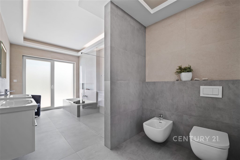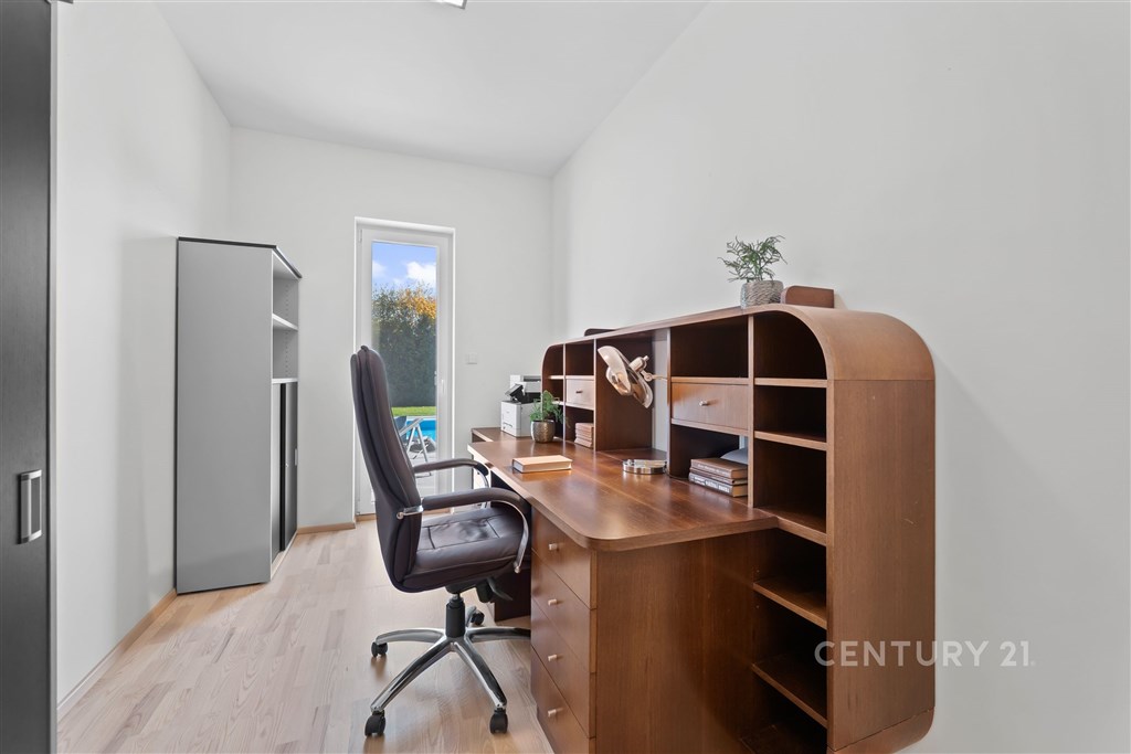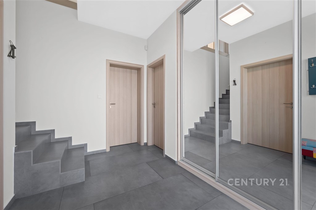 V obci Vysoký Újezd u Berouna, je na prodej nemovitost, která propojuje moderní technologie, promyšlenou architekturu a nadčasový komfort. Tento dům 6+kk s garáží, zahradou a přelivovým slaným bazénem nabízí harmonický životní styl, nikoli jen bydlení. Dispozice domu je promyšlená do posledního detailu - přízemí tvoří soukromé rodičovské křídlo s ložnicí, šatnou a koupelnou, zatímco v patře se nachází tři samostatné dětské pokoje s vlastní koupelnou. Dominantou přízemí je otevřený obytný prostor s kuchyní a přímým vstupem na terasu. Technologie zde pracují pro vás. O komfort se stará systém Loxone, který řídí osvětlení, žaluzie - připravený na rozšíření o plně inteligentní domácnost. Tepelné čerpadlo zajišťuje energetickou úsporu, podlahové vytápění a chlazení, Jablotron chrání dům a je napojený na pult centrální ochrany, kamerový systém Blink sleduje exteriér a optická síť O2 poskytuje vysokorychlostní internetové připojení. Na zahradě najdete přelivový slaný bazén Albixon (8×4 m) s tepelným čerpadlem, plně automatickou filtrací a možností koupání od dubna do října. Automatická závlaha napojená na retenční nádrž zajišťuje vždy dokonale zelený trávník. Součástí prodeje je i samostatný zahradní domek 3+kk (50 m2) - ideální pro hosty, rodiče nebo jako pracovní zázemí. Vysoký Újezd se pyšní výjimečnou občanskou vybaveností - novou školou, školkou, poštou, pizzerií Locale i obchodem. Milovníci gastronomie ocení Château Papillon Resort Hotel & Spa s restaurací Papilio oceněnou 2mi Michelinskými hvězdami, golfisté pak Albatross Golf Resort s restaurací KOGO. Z Prahy jste zde za 20 minut - a přitom v absolutním klidu a soukromí. Tady nekupujete jen dům. Kupujete prostor pro život, který má styl, rytmus a duši.
