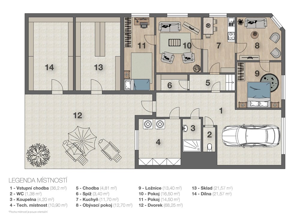 Samostatně stojicí RD s obytnou plochou 92 m2 a současné dispozici 4+1 Vám nabízíme ke koupi v malebné obci Slup v Jihomoravském kraji. Dispozice domu je nyní 4+1 a podrobně se můžete podívat na půdorys. Hlavní Vstup do domu je prostorem, kde se nachází garáž 23 m2. Nemovitost je určena k postupné rekonstrukci. Vytápění a ohřev vody je novým plynovým kotlem. V celém domě jsou radiátory. Rekonstrukce koupelny proběhla v roce 2008 je zde sprchový kout. V domě jsou plastová okna (rok 2006) a v průjezdu a v koupelně je nově izolace. V hospodářské místnosti na dvoře je kotel na tuhá paliva (ten se již nepoužívá). Dvorek má současnou výměru 68 m2 a projdete do hospodářské části a na půdu. Na zhradě je funkční studna. Měsíční náklady: 4 500,Kč/plyn 500,Kč/el. 100,Kč/voda Pozemek obklopuje zahrada o rozloze 347 m2, která je ideální pro rodinné aktivity i odpočinek. Pozemek má celkovou plochu 608 m2. Mezi částí zahrady je navíc parcela č. 189/73 s výměrou 155 m2 patřící Státnímu pozemkovému úřadu, na kterou existuje Nájemní smlouva za symbolickou roční úplatu. K domu přiléhá sklep o rozloze 4 m2. Všechny veřejné sítě jsou připojeny - veřejný vodovod, plynové rozvody a veřejná kanalizace zabezpečuje bezproblémové užívání domu. PENB se nyní zpracovává, proto uvádíme ukazatel energetické náročnosti G mimořádně nehospodárná. Údaje budou průběžně aktualizovány. Obec Slup se nachází 14 km jihovýchodně od Znojma. Je proslavená zejména díky technické památce vodního mlýna. V obci se nachází základní občanská vybavenost, avšak i možnosti sportovního a kulturního vyžití. Obcí např. prochází turistická Jižní stezka nebo Moravská vinná cyklostezka. Nalezneme zde mateřskou školu, školáci pak dojíždějí do sousedních Jaroslavic nebo do Znojma. Dům je k dispozici ihned - není potřeba čekat na uvolnění nemovitosti. Tato nemovitost je opravdovou příležitostí pro ty, kteří hledají klid a pohodu venkovského života, ale zároveň nechtějí rezignovat na dosah větších měst. Pokud vás nabídka zaujala, neváhejte mně kontaktovat. S financováním Vám rádi pomůžeme.
