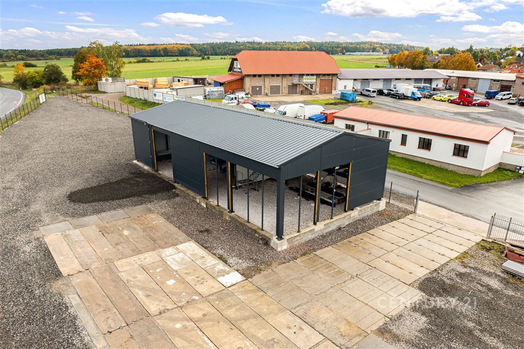 Pronájem oploceného pozemku s novou halou u dálnice D6 - Velká Dobrá, 7.051 m2