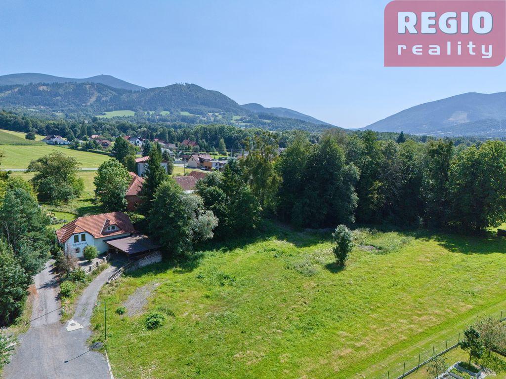 Nabízíme Vám ke koupi hospodářskou usedlost nacházející se v Nové Vsi u Frýdlantu nad Ostravicí, situovanou v klidné části obce s roztroušenou zástavbou a výhledem na Lysou horu, masiv Ondřejníku a další vrcholy Beskyd. Usedlost je tvořena obytnou částí rodinného domu spojenou s hospodářskou budovou o přibližné zastavěné ploše cca 395 m2 a samostatně stojící stodolou (cca 276 m2). Celková zastavěná plocha a nádvoří představuje 1 706 m2. Veškeré stavby jsou určeny ke kompletní rekonstrukci či demolici. Celková výměra pozemku činí 3 751 m2. Příjezd k usedlosti je zajištěn po vedlejším příjezdu jehož podíl je součástí prodeje. Veškeré inženýrské sítě a CETIN se nachází na hranici nebo v blízkosti pozemku. Nemovitost je vhodná jako investice pro vybudování menšího agroturistického objektu, rodinného sídla, farmy apod. Dle platného územního plánu je celá plocha tj. 3 751 m2 vedeno jako SV plochy smíšené obytné venkovské, určené k výstavbě rodinných domů (max. 2 NP + podkroví), minimální podíl zeleně 60 %. Stavební plocha je dělitelná na dva stavební pozemky (min. 1 500 m2), podmínkou je demolice stávajících budov.