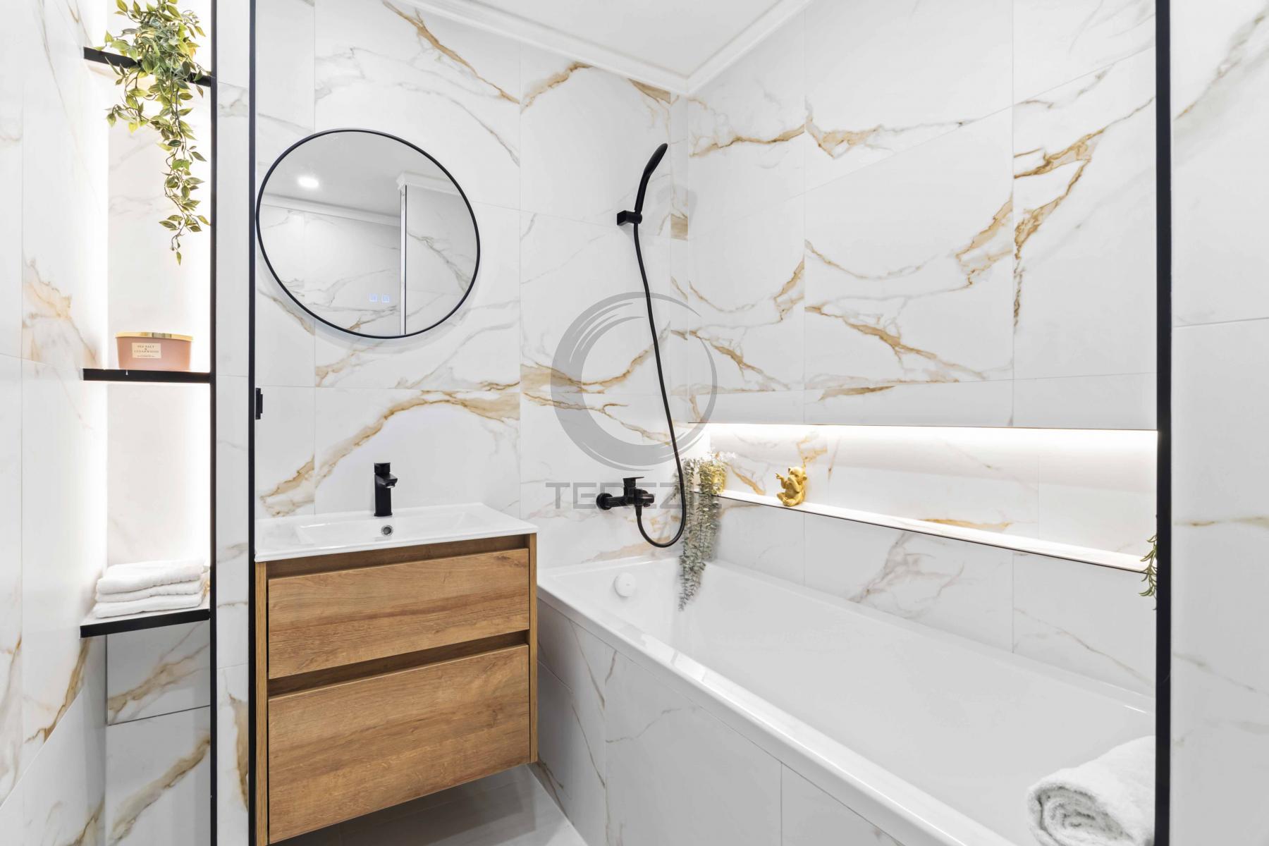 Nabízíme ke koupi prostorný a světlý byt 4+kk o ploše 105 m2, který prošel kompletní, velmi nákladnou rekonstrukcí s důrazem na kvalitu, moderní technologie a nadčasový design. Byt je zcela připraven k okamžitému nastěhování bez nutnosti jakýchkoli dalších investic. Dispozice a vybavení - 4+kk, 105 m2 - 2. NP (1.patro) cihlového domu - Prostorný obývací pokoj s kuchyňským koutem - Tři samostatné ložnice zajišťující dostatek soukromí - Koupelna s vanou - 2 samostatné toalety - balkon Kvalitní rekonstrukce zahrnovala: - kompletně novou elektroinstalaci - vinylové podlahy v dekoru dubového dřeva odolné, elegantní, snadno udržovatelné - moderní kuchyňskou linku s vestavěnými spotřebiči (myčka, lednice s mrazákem, indukční varná deska, horkovzdušná trouba) - úsporné LED osvětlení v celém bytě - úsporné podlahové vytápění v celém bytě (lze regulovat teplotu v každé místnosti zvlášť) Moderní technologie a stylové detaily: - Geberit systém šetřící až 50 % spotřeby vody - Černé koupelnové doplňky s PVD úpravou odolné proti poškrábání a korozi - Designové obklady inspirované japonským uměním Kintsugi originální prvek dodávající interiéru jedinečný charakter Dům a lokalita - Dům prochází postupnou revitalizací (fasáda a okna jsou již hotova). - Parkování je možné přímo před domem - brána na dálkové ovládání. - Součástí společných prostor je i zahrada s posezením. Ve fotogalerii naleznete půdorys a virtuální prohlídku. Byt si tak můžete prohlédnout z pohodlí Vašeho domova ještě před osobní návštěvou. Byt je v osobním vlastnictví, možnost financování hypotékou. K nastěhování ihned.