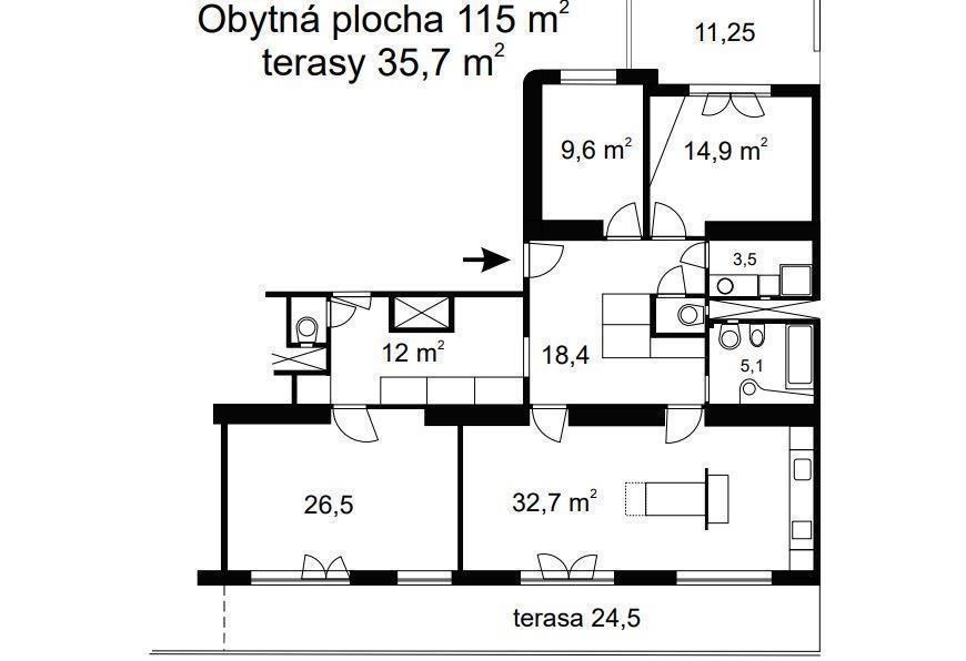 Částečně zařízený byt 4+kk se dvěma terasami, Praha 2 Vinohrady