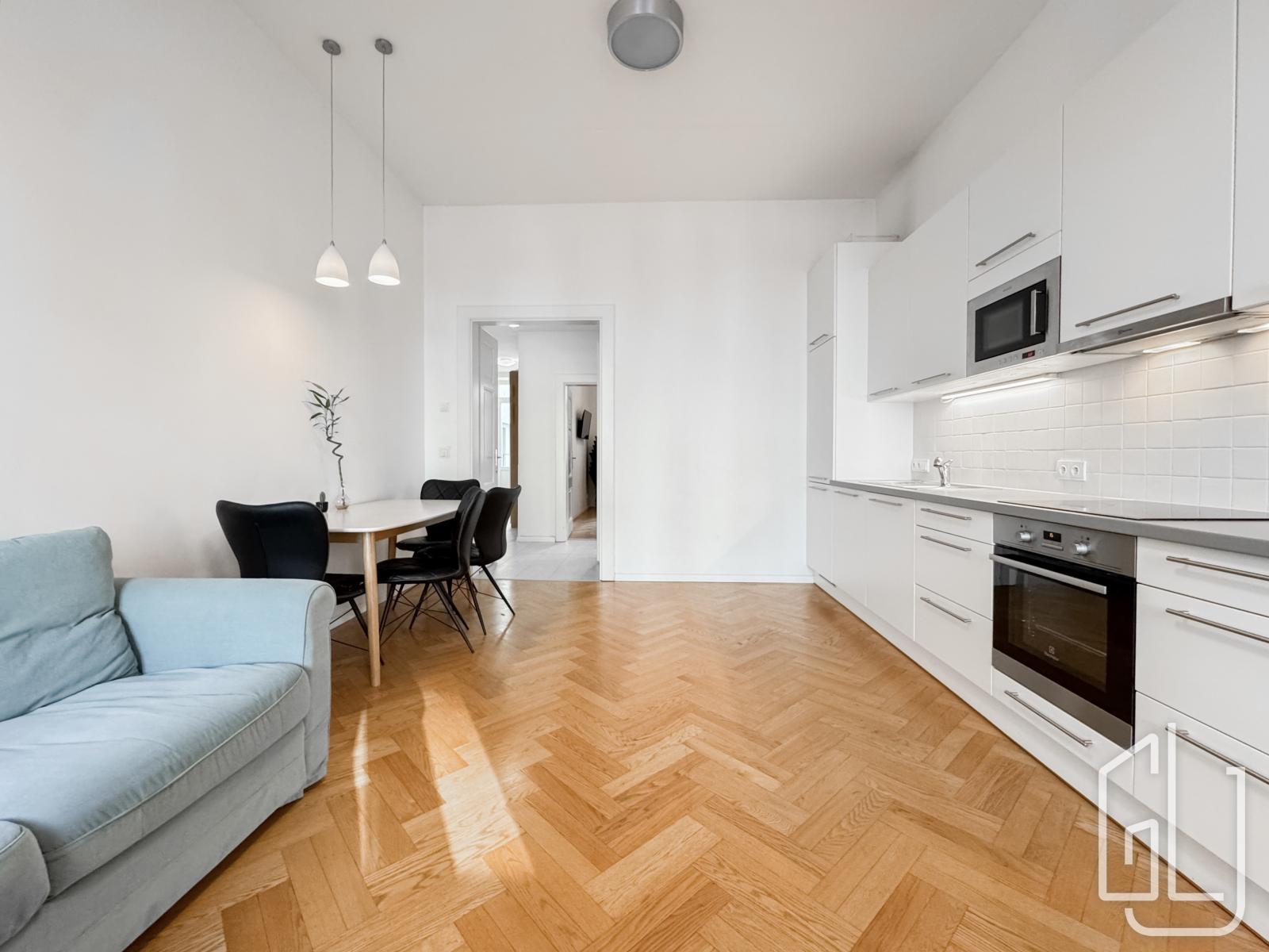 GLJ Partners nabízí k dlouhodobému pronájmu světlý byt 2+kk s balkonem, který se nachází ve 3. nadzemním podlaží udržovaného činžovního domu s výtahem přímo u parku Kaizlovy sady v oblíbené lokalitě Praha 8 Karlín. ID: G1179 Dispozice: 2+kk Plocha bytu: 48 m Balkon: 2 m Podlaží: 3. nadzemní podlaží Dům: cihlový dům s výtahem Sklep: ano, sklepní kóje 2 m Nájemné: 29.500 Kč / měsíc Poplatky: 4.500 Kč / měsíc Elektřina: převod na nájemce Kauce: 34.000 Kč Provize: 34.000 Kč Dostupnost: volné ihned Hlavní obytný prostor nabízí moderní kuchyňský kout s dostatkem úložných prostor, vestavnou troubou, varnou deskou, myčkou, mikrovlnnou troubou a dřezem s pracovní plochou. Na kuchyň plynule navazuje jídelní část se stolem a židlemi a obývací zóna s rohovou sedačkou, která vytváří příjemné centrum bytu pro každodenní život i posezení s přáteli. Samostatná ložnice je zařízena manželskou postelí, nočními stolky a TV, nabízí dostatek místa pro šatní skříň a působí klidným, nerušeným dojmem ideální prostor pro odpočinek.Z chodby je vstup na balkon orientovaný do vnitrobloku, který poskytuje příjemné místo na ranní kávu nebo večerní posezení. Součástí nájmu je také sklepní kóje v suterénu domu, vhodná pro uložení sezonních věcí, sportovního vybavení či kufrů. V chodbě bytu je praktická vestavná skříň a dostatek místa na botník či věšák. Koupelna je vybavena sprchovým koutem, umyvadlem se spodní skříňkou, zrcadlem s osvětlením, topným žebříkem a pračkou. Celkově působí moderně a prakticky, v neutrálních tónech, které se dobře kombinují s jakýmkoliv stylem doplňků. Byt se nachází v jedné z nejvyhledávanějších pražských čtvrtí. Karlín nabízí kompletní občanskou vybavenost kavárny, restaurace, bistra, obchody i služby v docházkové vzdálenosti. Přímo u domu je park Kaizlovy sady, který poskytuje příjemné místo na procházky a relax. Výborné je také dopravní spojení: několik minut chůze na metro B (Křižíkova) a tramvajové linky se spojením do centra během pár minut. Pro více informací a sjednání prohlídky kontaktujte prosím realitního makléře.