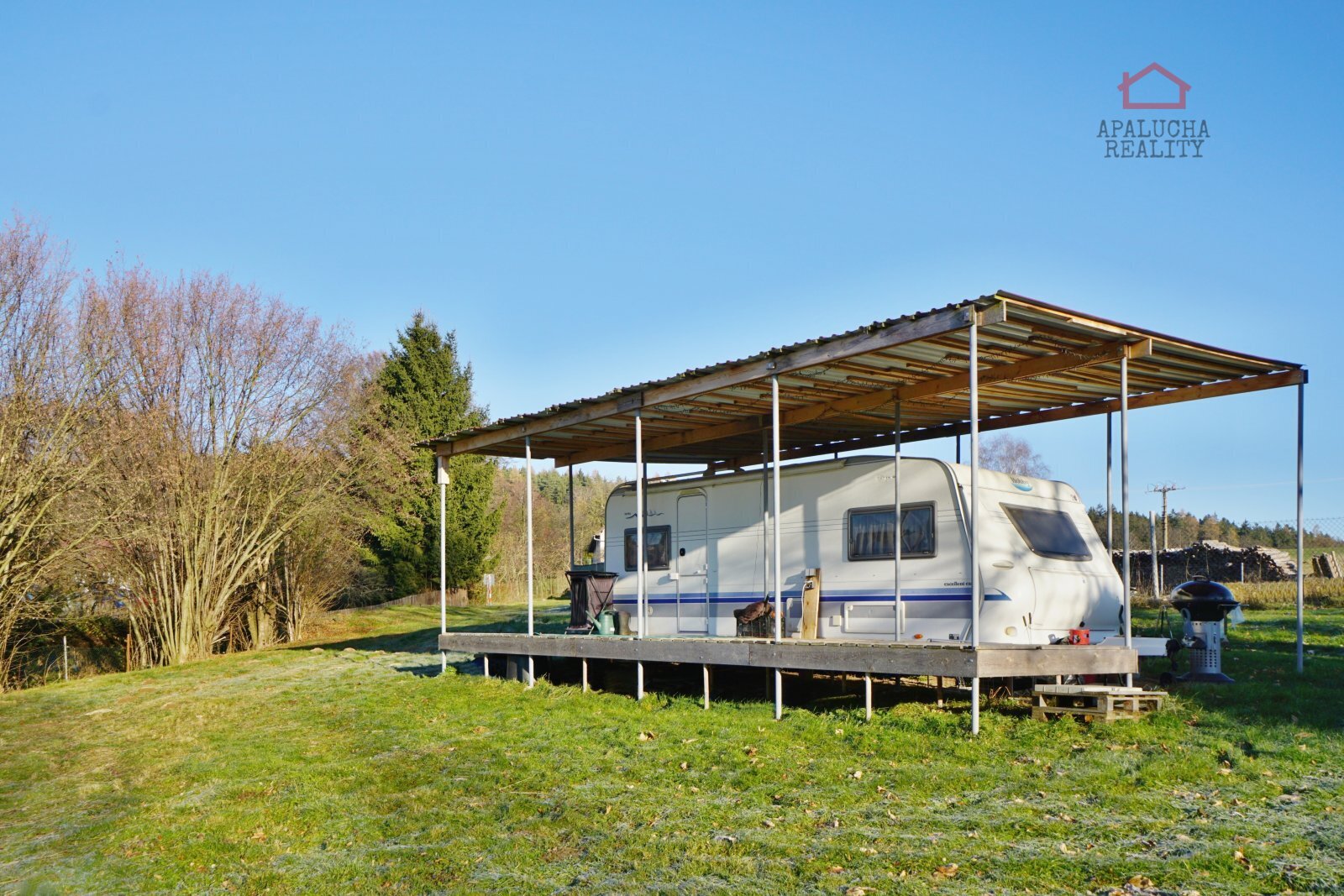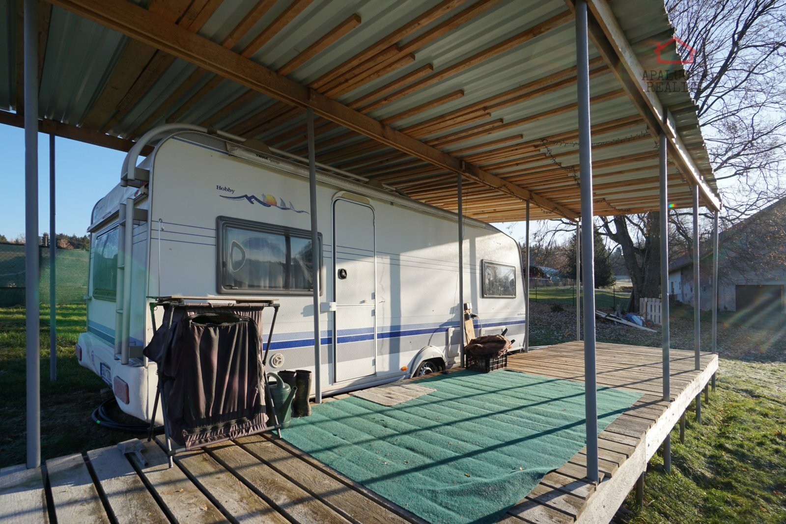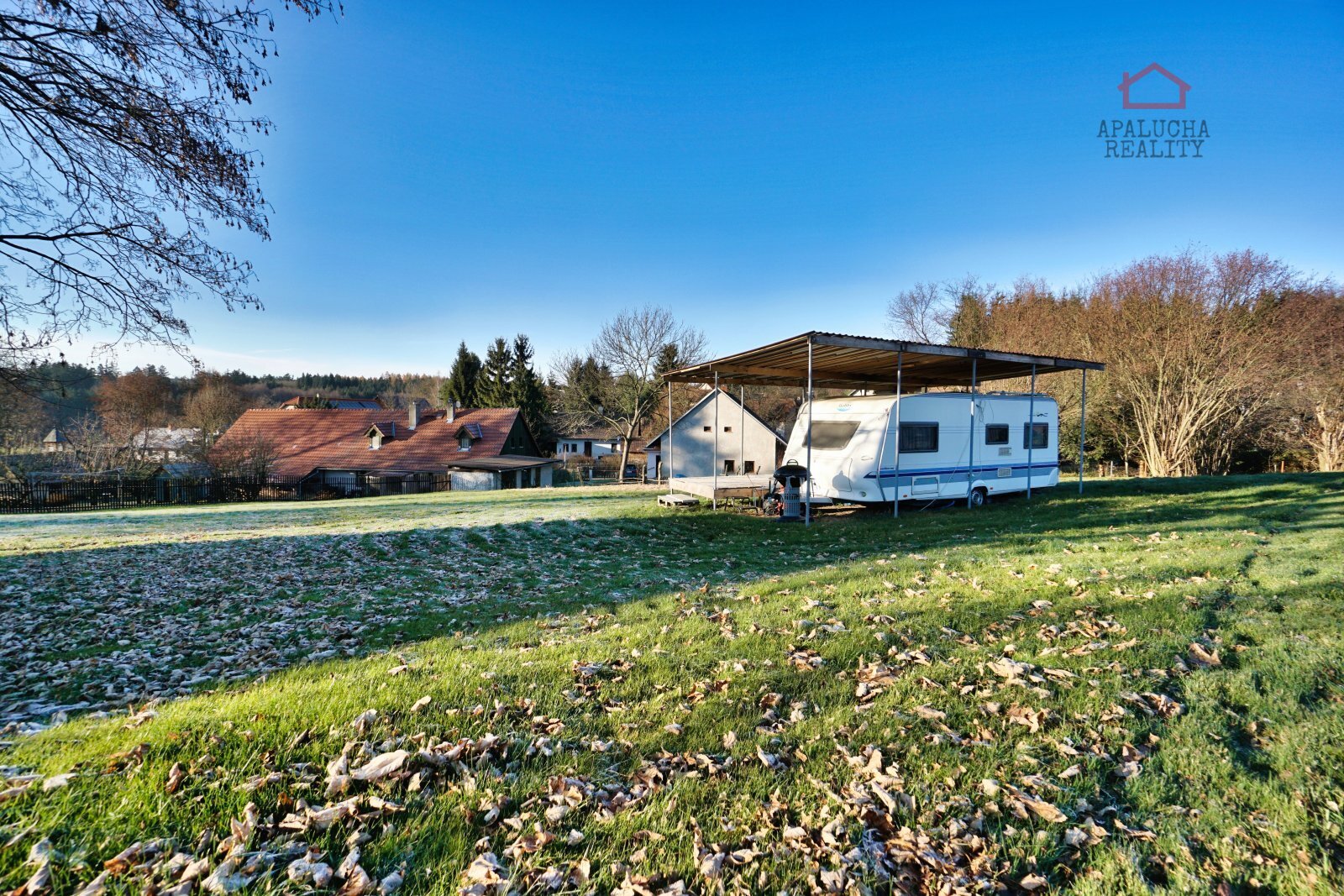 APALUCHA REALITY Vám nabízí ve výhradním zastoupení stavební pozemek s karavanem o výměře 1790 m2 se zastavitelností do 40%, který se nachází v klidné lokalitě obce Staré Nespeřice, Petrovice II. Mírně svažitý stavební pozemek se nachází na okraji obce. Na hranici pozemku je elektrická přípojka s jističem 3x25A. Elektřina je přivedena ke karavanu a studni. Obec v tuto chvíli nedisponuje vlastním územním plánem, využití lokality se posuzuje podle vymezeného zastavěného území. Zastavěnost pozemku je obecně maximálně 40 % z celkové výměry, stavba může mít dvě nadzemní podlaží a obyvatelné podkroví, ale vždy s ohledem na okolní zástavbu. Veškeré informace podá stavební úřad v Uhlířských Janovicích a informace k ČOV stavební úřad v Kutné Hoře. Zdrojem vody je vlastní vrtaná studna o hloubce 40m s vydatností 500l/hod. a pro odpadní vodu je počítáno s ČOV. Součástí nabídky je prostorný karavan HOBBY excellent easy s platnou TK, pro který je vybudován přístřešek. Karavan disponuje kuchyňkou s vařičem a lednicí na 12V/230V/plyn, obývací částí s posezením do tvaru podkovy, ložnicí, koupelnou s WC, plynovým topením Trumatic, bojlerem na 12V/230V a markýzou. Technické informace o karavanu: Rok výroby: 2003, délka: 7400 mm, výška: 2550 mm, šířka: 2500 mm, provozní hmotnost: 1275 kg, celková hmotnost: 1600 kg Občanská vybavenost se nachází v nedalekých Uhlířských Janovicích, dopravní obslužnost je zajišťována autobusovou dopravou. Dálnice D1 je vzdálena 18 km. Jedná se krajinu plnou lesů a okolní přírody. Lokalita je vyhledávaná především pro turistiku, cykloturistiku a houbaření. Nemovitost není zatížena žádným zástavním právem, tudíž garantujeme rychlý převod na nového majitele. Financování je možné z vlastních zdrojů nebo úvěrem, se kterým Vám rádi pomůžeme.