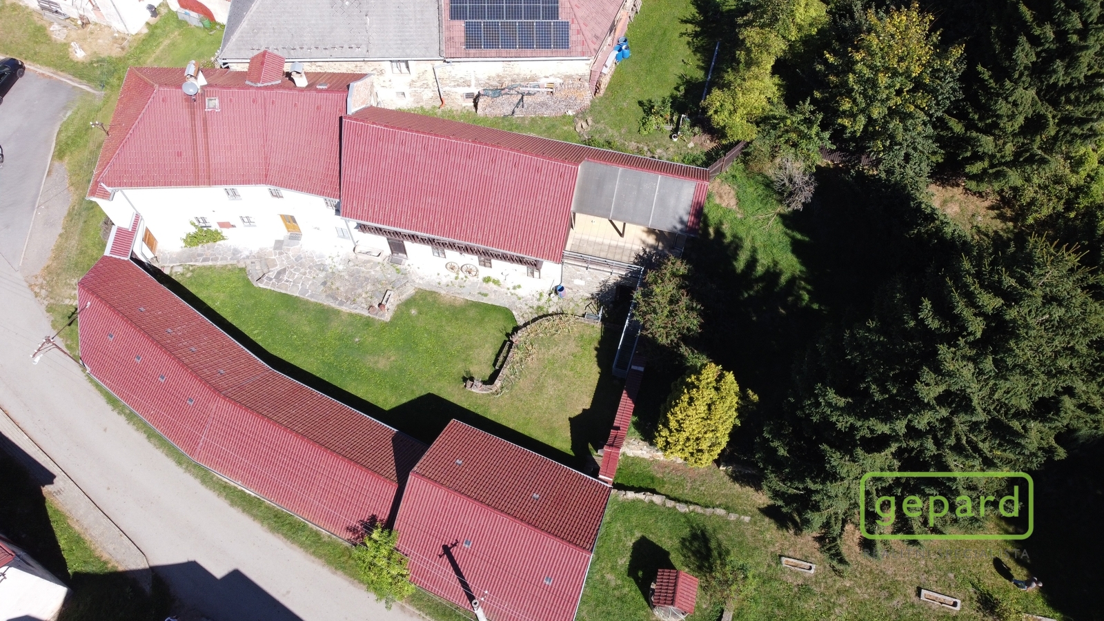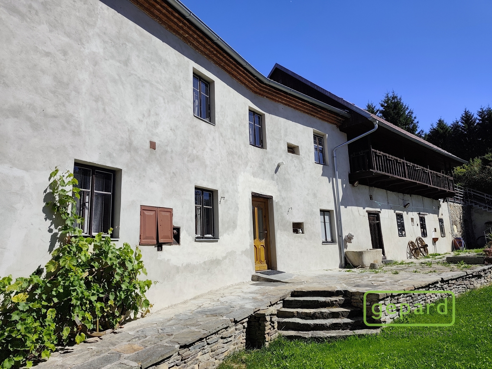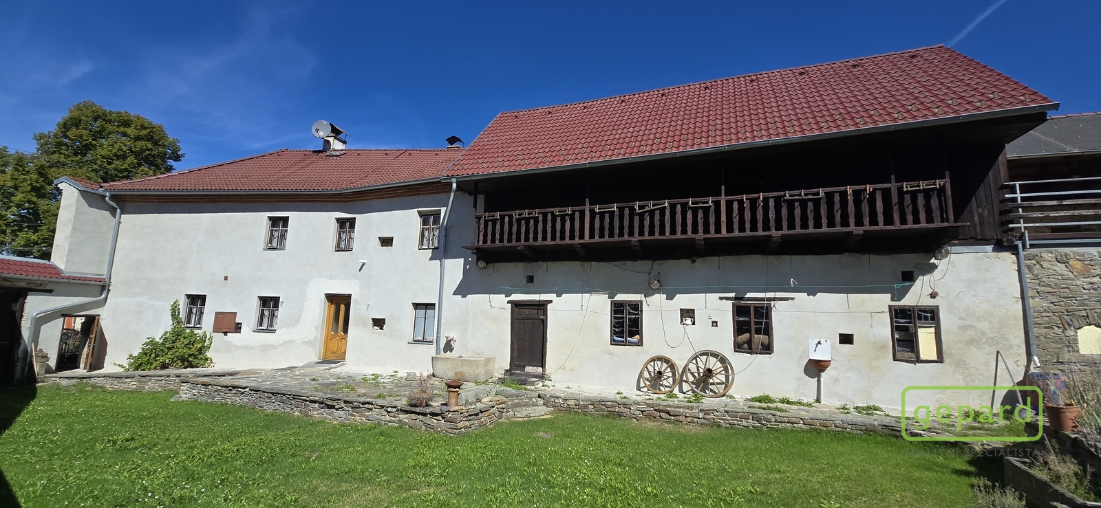 Prodej domu, vesnického stavení s velkou zahradou v obci Slavkov nedaleko Českého Krumlova. Celková plocha prodávaných pozemků má výměru 1.353m2 a skládá ze zastavěné plochy a nádvoří o 746m2 a přiléhající zahrady se vzrostlými stromy o 607m2. Hlavní část stavení obytná část na níž navazuje rozlehlá stáj a v dalším nadzemním podlaží i rozlehlé půdní prostory. Na protější straně uzavřeného dvora najdeme dílnu, sklad paliva a prostory pro venkovní posezení. Obytná část, vhodná jak k trvalému bydlení tak i rekreaci, se skládá v přízemí z velkého obývacího pokoje, kuchyně, sociálního zařízení a kotelny. Výstupem po schodišti se dostaneme do 2.NP se třemi pokoji, šatnou, samostatnou toaletou a výstupem do půdních prostor. Půdní prostory z levé části budovy mohou být použity k případné přestavbě či vestavbě se zachováním pavlače a samostatné terasy vedoucí na zahradu. Podívejte se prosím na naší fotogalerii. Nemovitost je v dobrém stavu a nachází se v obci Slavkov, mezi Bohdalovicemi a Kájovem na okraji velkých lesních celků šumavského podhůří. Vzdálenost do Českého Krumlova 13km, Větřní 6km a na Lipno, Černá v Pošumaví 12km. Energetická třída PENB „G“ je uvedena z formálních důvodů dle zákona č. 103/2015 Sb., po obdržení průkazu energetické náročnosti budovy bude uvedena skutečná hodnota. Více informací na níže uvedeném telefonním čísle, prohlídky z naší kanceláře v Českém Krumlově po předchozí domluvě - klíče máme k dispozici. Možnost zajištění financování koupě této nemovitosti prostřednictvím zvýhodněného hypotéčního úvěru.