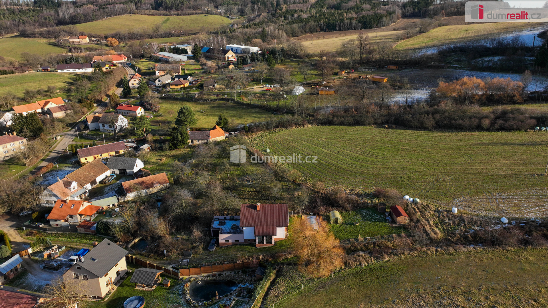 Prodej krásného rodinného domu 4+kk s okrasnou zahradou a jezírkem - Veleň, Praha-východ