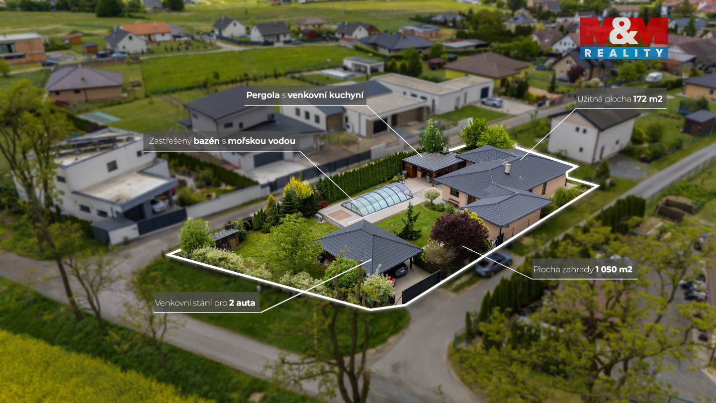 Moderní bungalov 5+KK v blízkosti přírody a jen kousek od Ostravy v obci Jistebník. Nabízíme k prodeji samostatně stojící cihlový bungalov o užitné ploše 172 m2 na pozemku 1050 m2 v klidné, lukrativní lokalitě obce Jistebník. Tento dům je ideální volbou pro náročné rodinné bydlení. Dispozice: prostorný obývací pokoj s novou kuchyní, 4 komfortní pokoje, koupelna s vanou, sprchovým koutem a WC, samostatné WC, technická místnost, vstup na venkovní terasu. Exteriér: nová fasáda kombinovaná se žulovými prvky, luxusní venkovní kuchyně z pískovce se sporákem, grilem, udírnou a pecí na pizzu, venkovní stání pro dvě auta, zastřešený bazén s mořskou vodou, elektrické venkovní žaluzie na domě. Technické vybavení: tepelné čerpadlo, krb, klimatizace, bazén 8×4 m. Energetická třída: B - velmi úsporná. Tento dům poskytuje pohodlné a moderní bydlení v prestižní lokalitě, ideální pro rodiny. Pro více informací nebo domluvení prohlídky nás prosím kontaktujte.